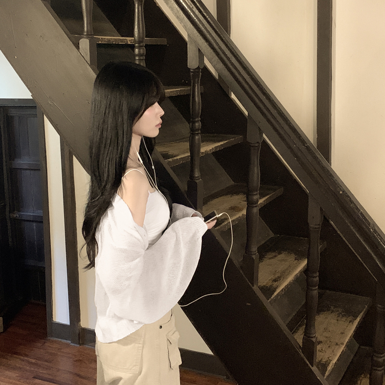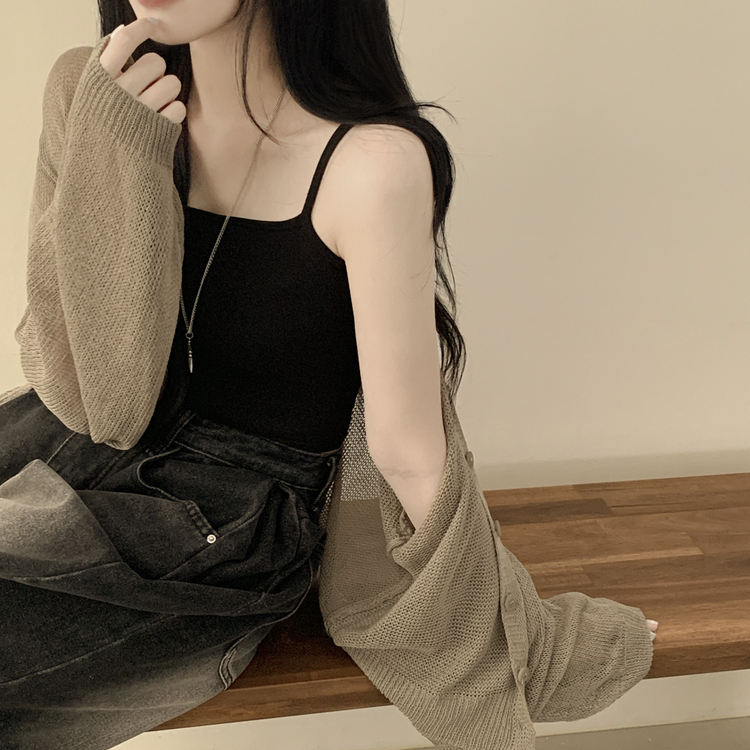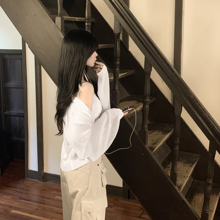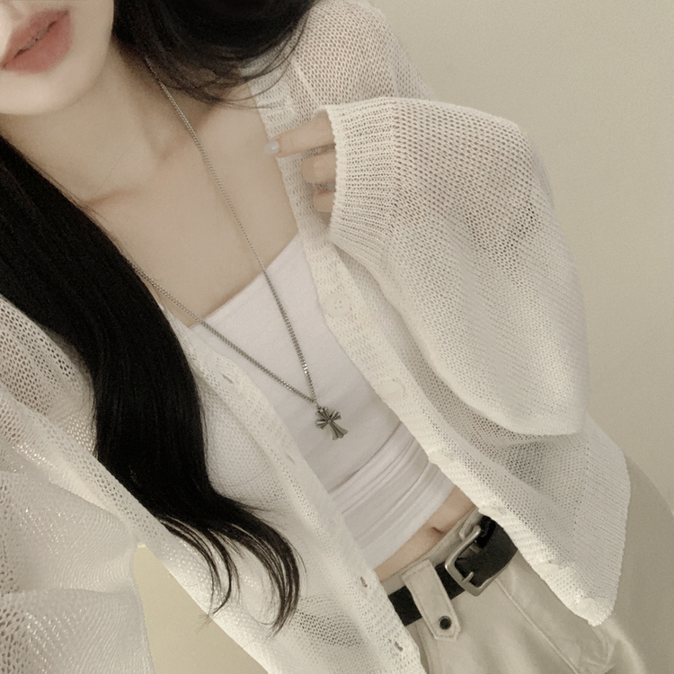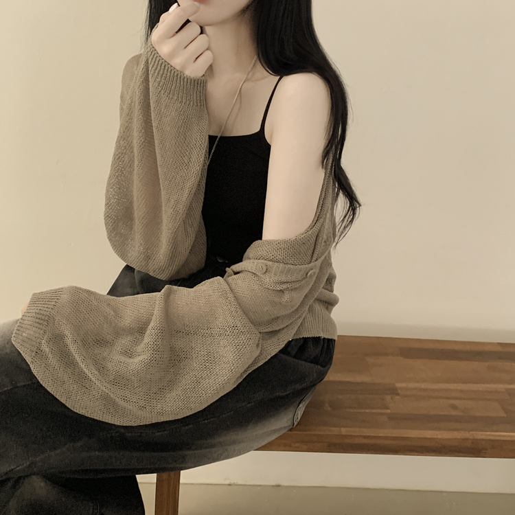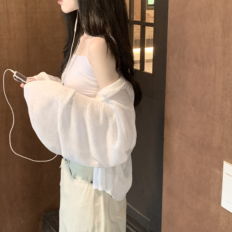 SGD28345 안입은듯 시원 아방핏 시스루 벌룬 크롭 박시 니트가디건 여름 간절기 가디건 빅사이즈