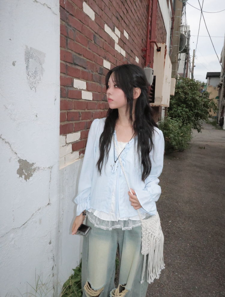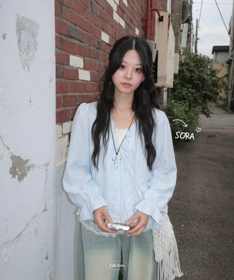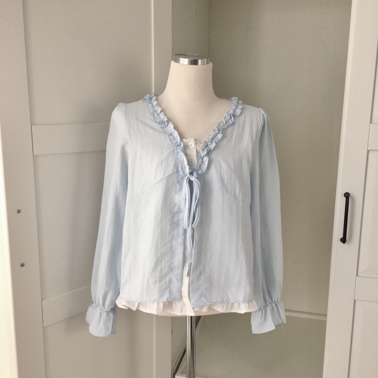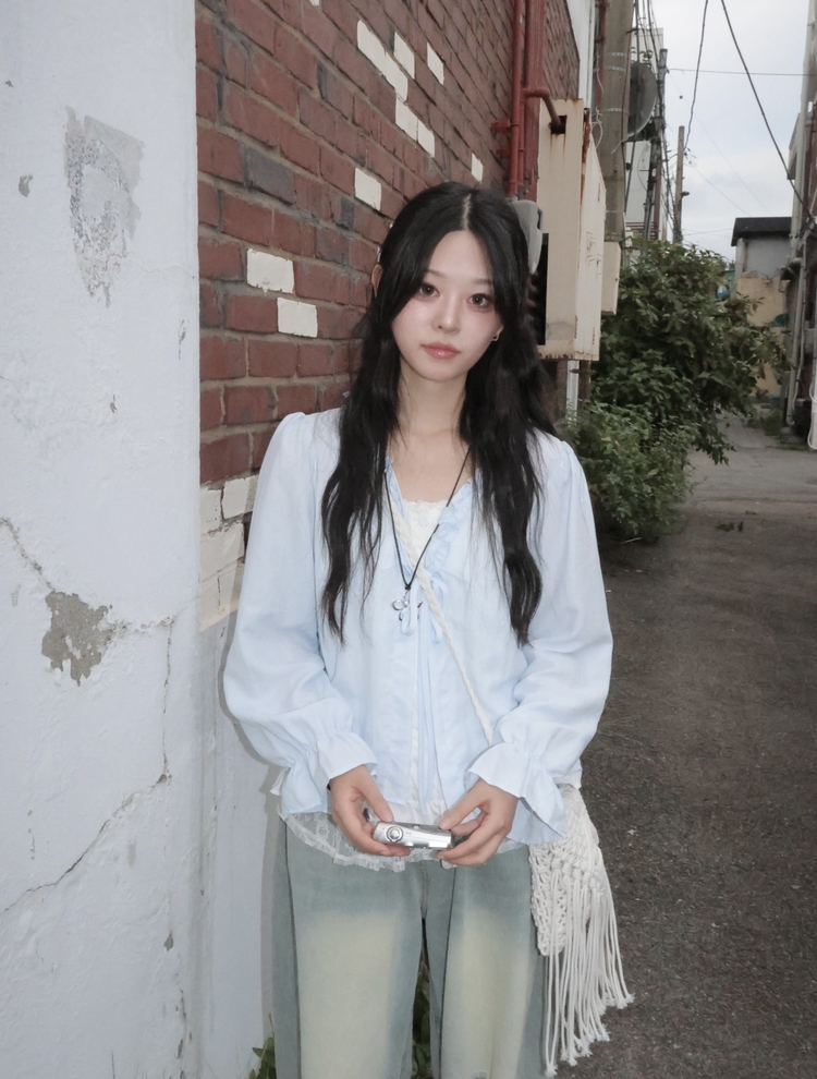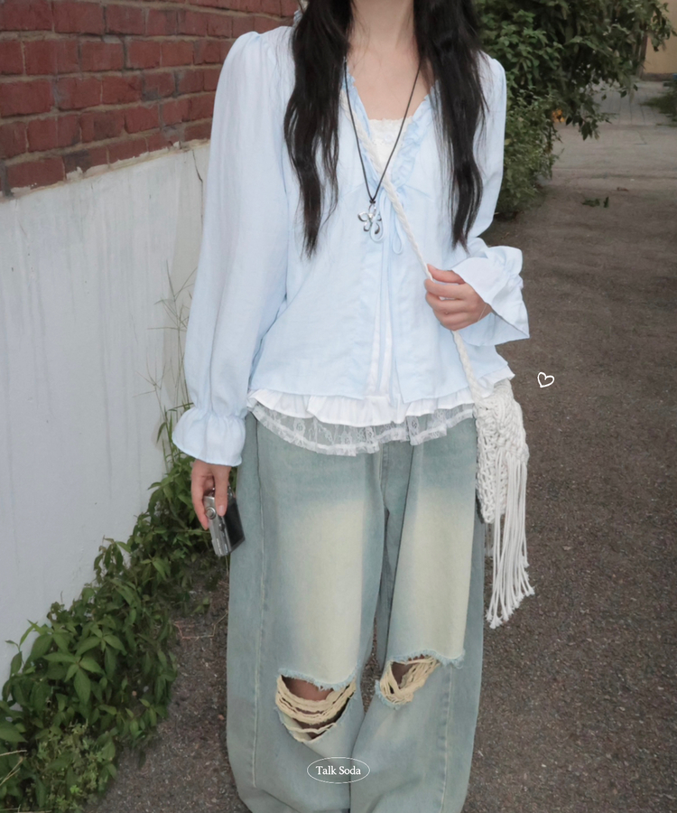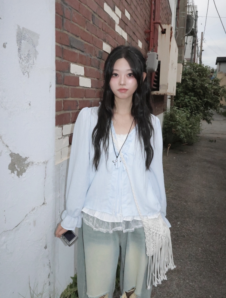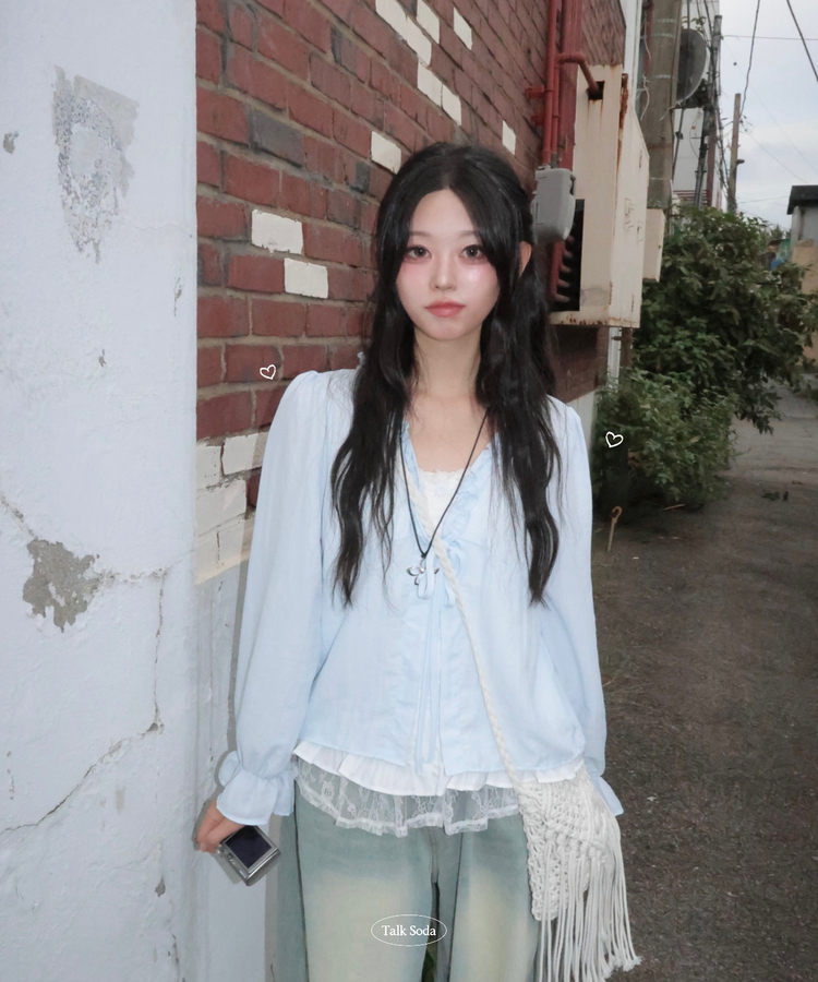 SBS29407 엔젤 프릴 리본 레이어드 발레코어 퍼프 레이스 셔링 긴팔 블라우스