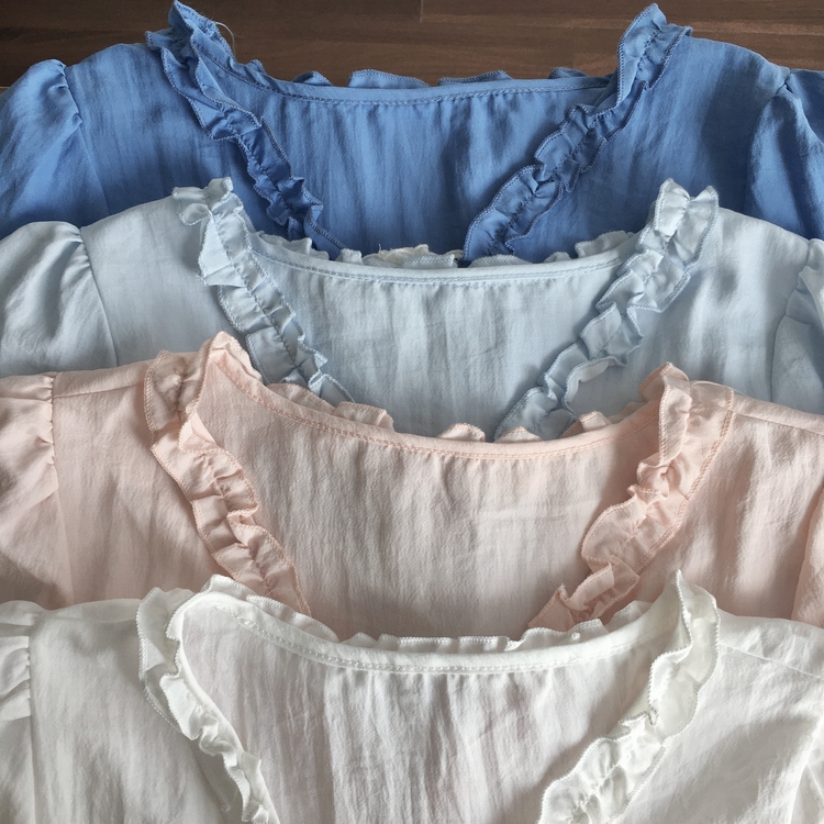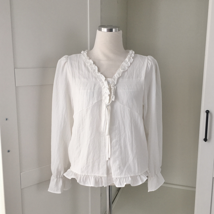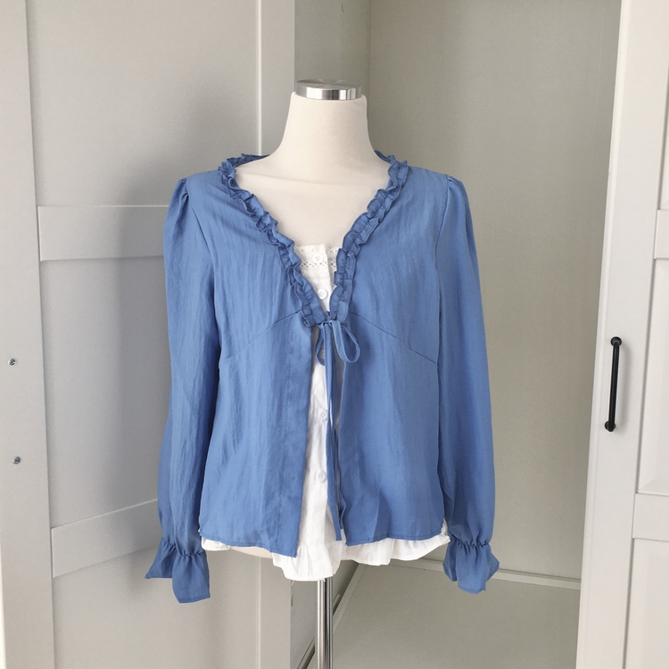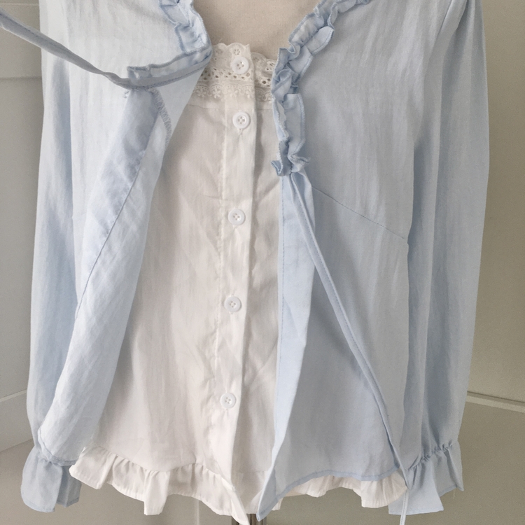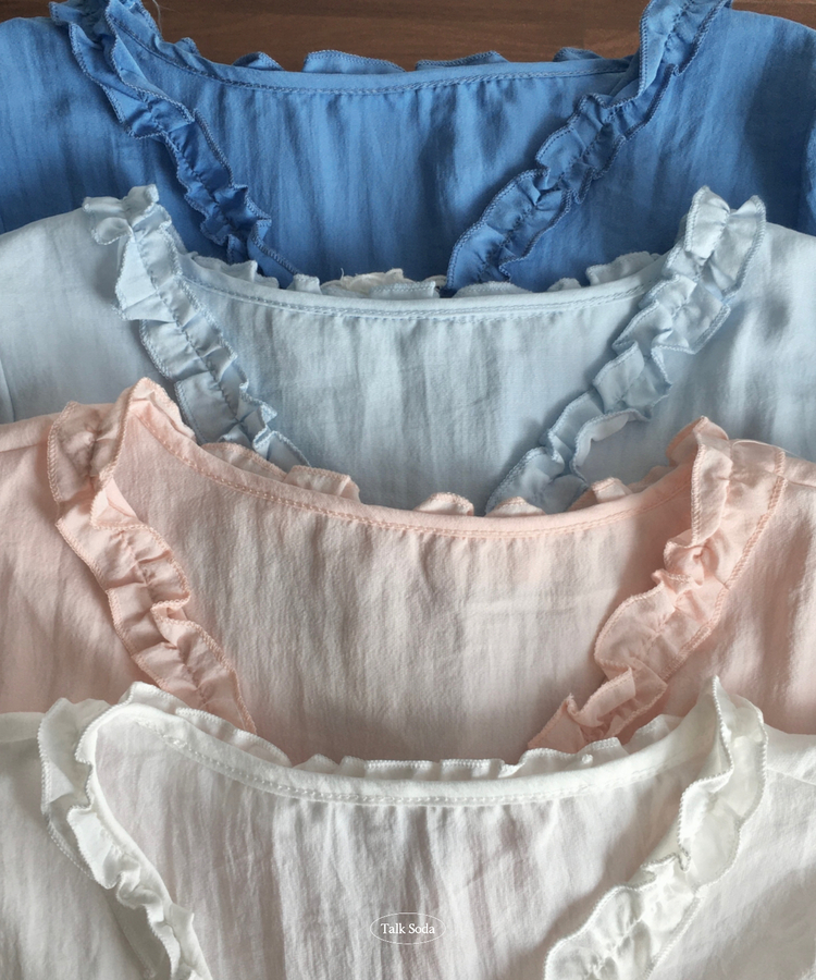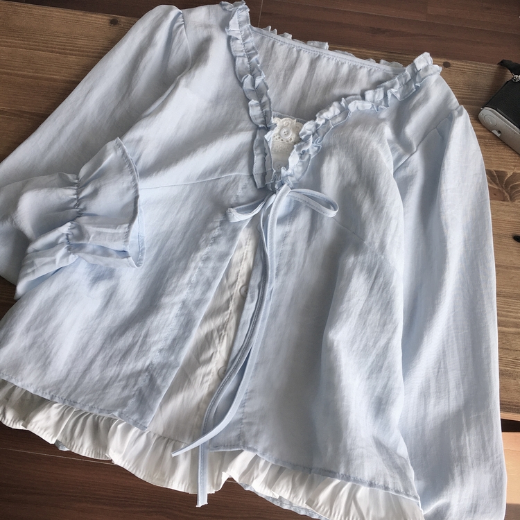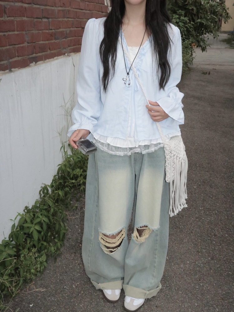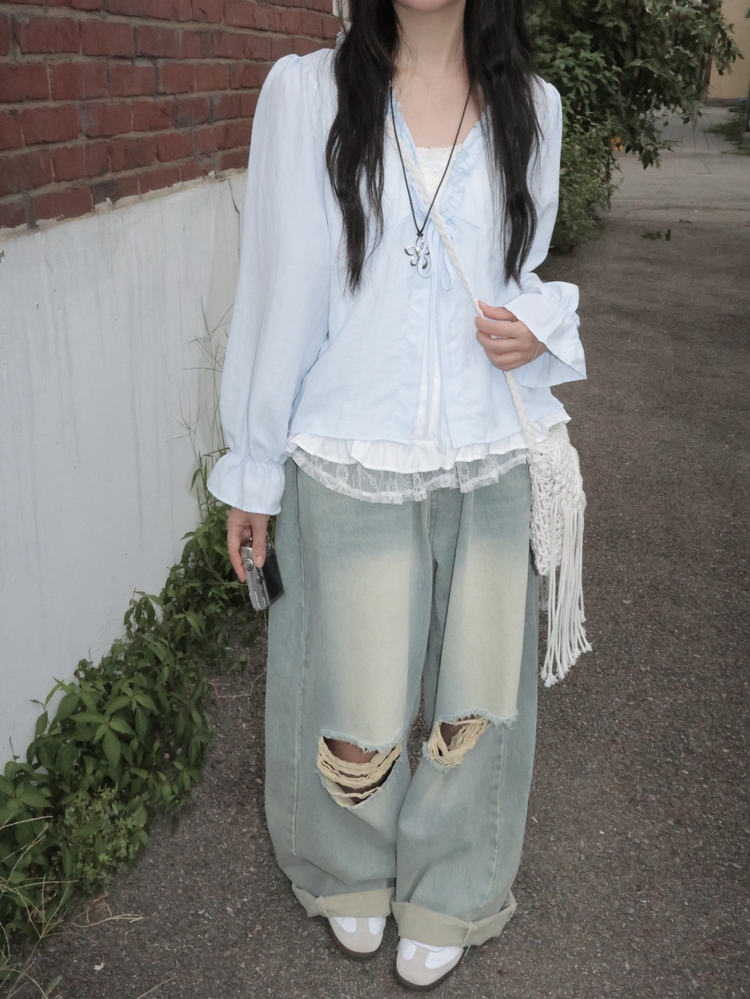 SBS29407 엔젤 프릴 리본 레이어드 발레코어 퍼프 레이스 셔링 긴팔 블라우스
