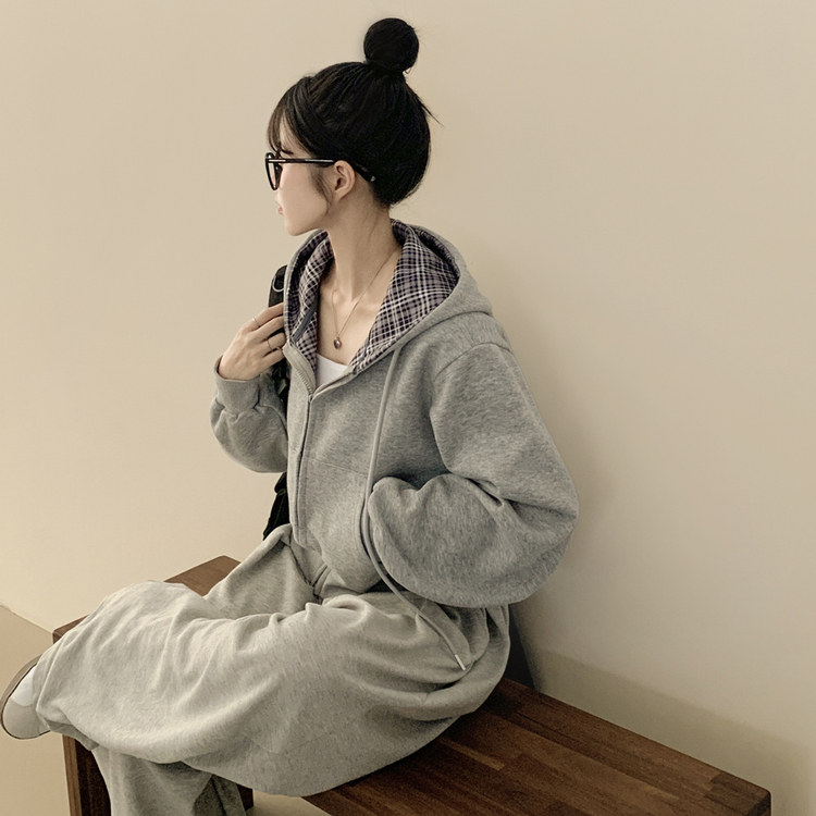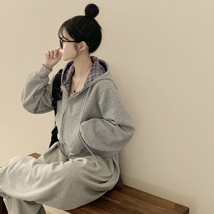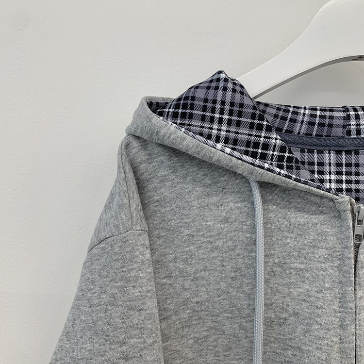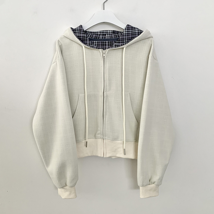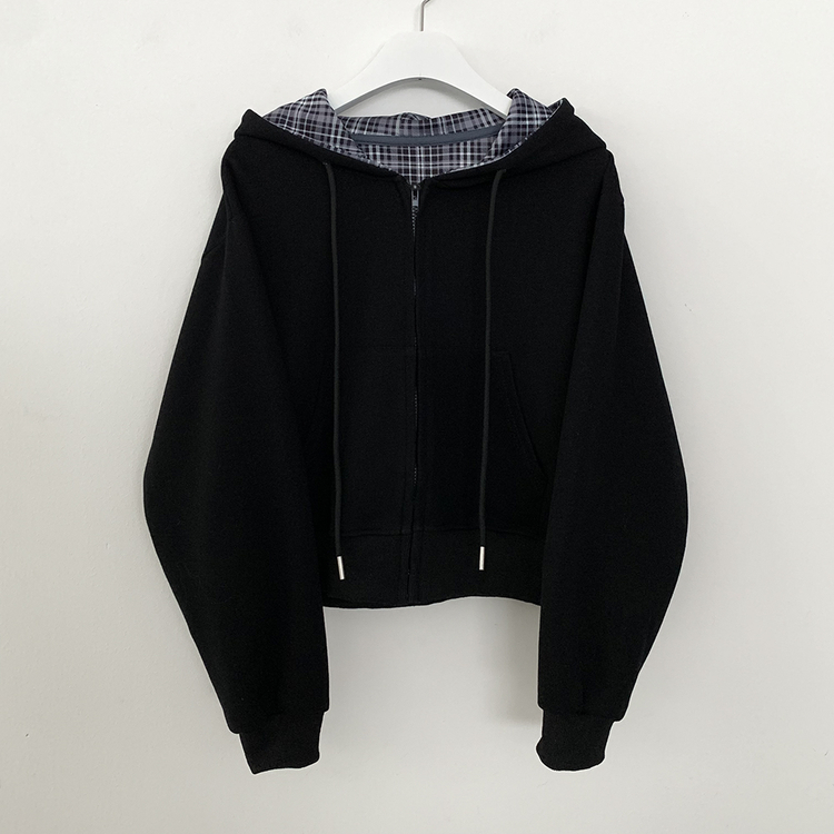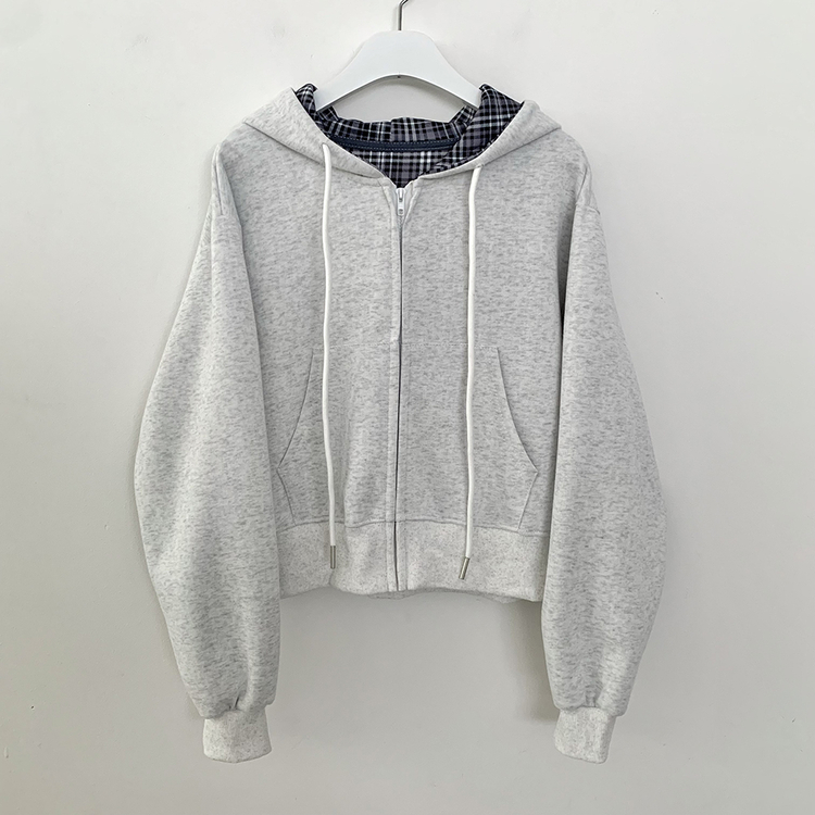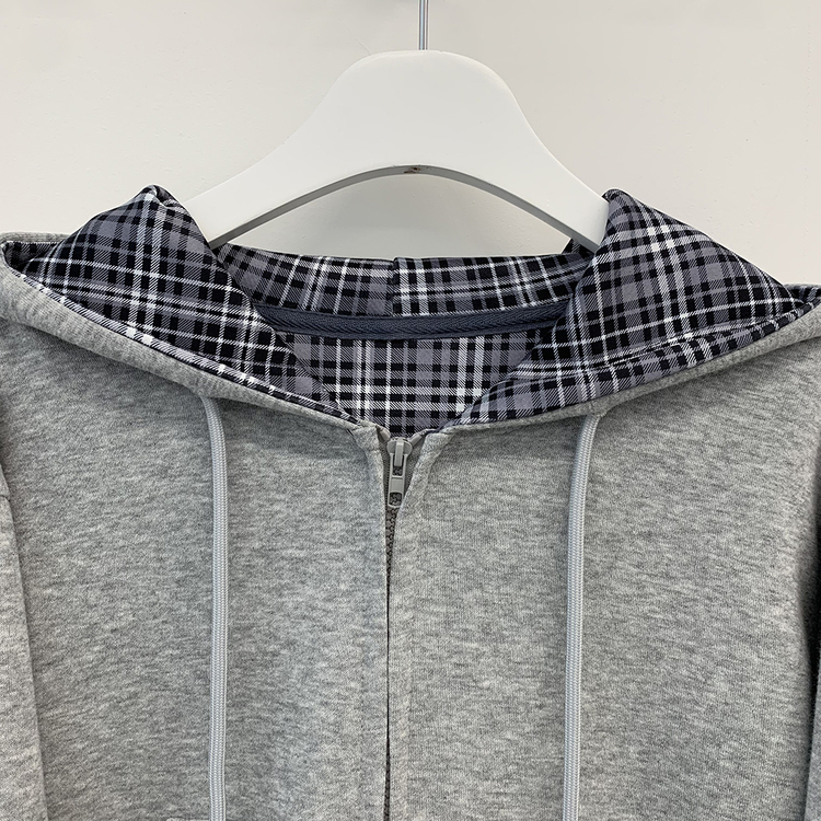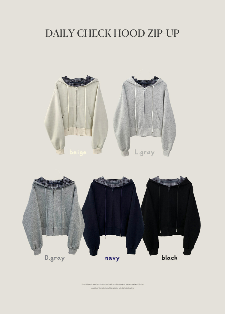 SJP17394 빈티지 체크 배색 크롭 후드집업