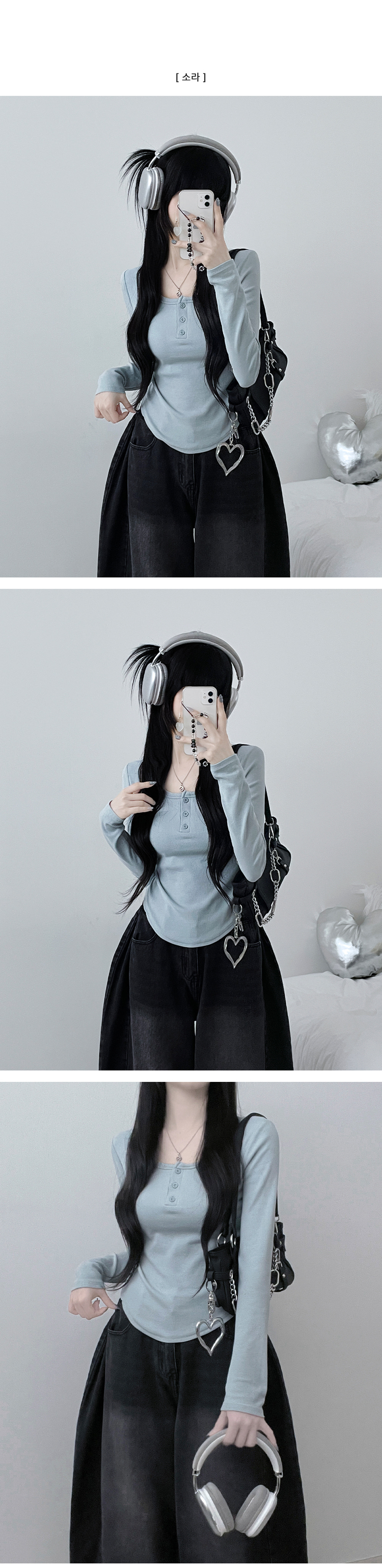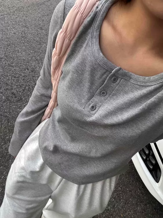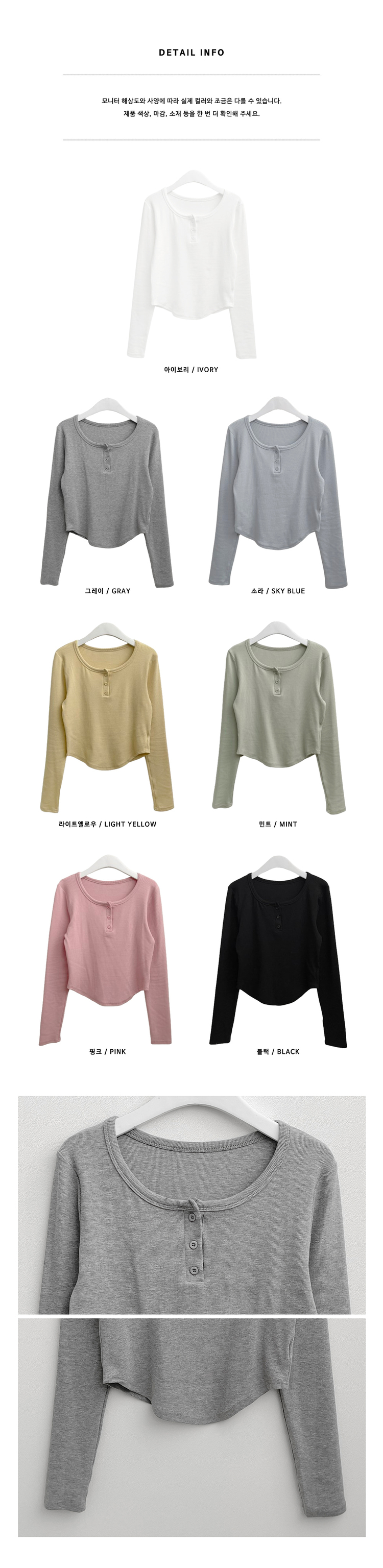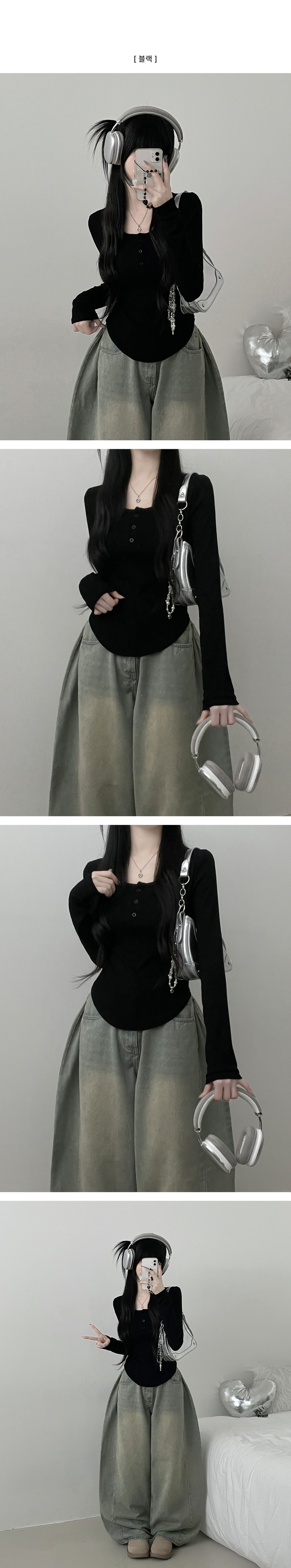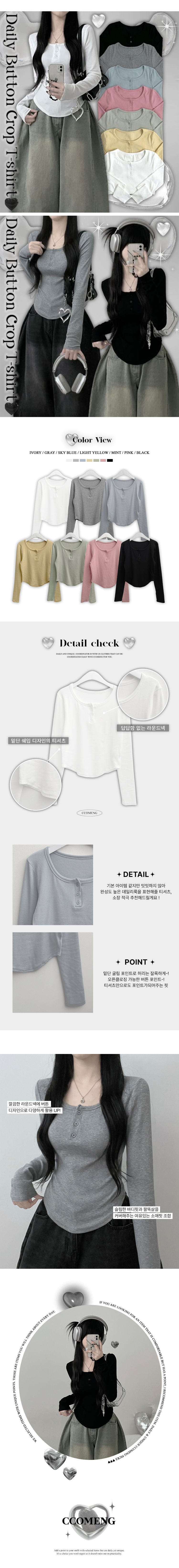 STS71300 긴팔버전리치버튼라운드세미크롭굴림긴팔티셔츠