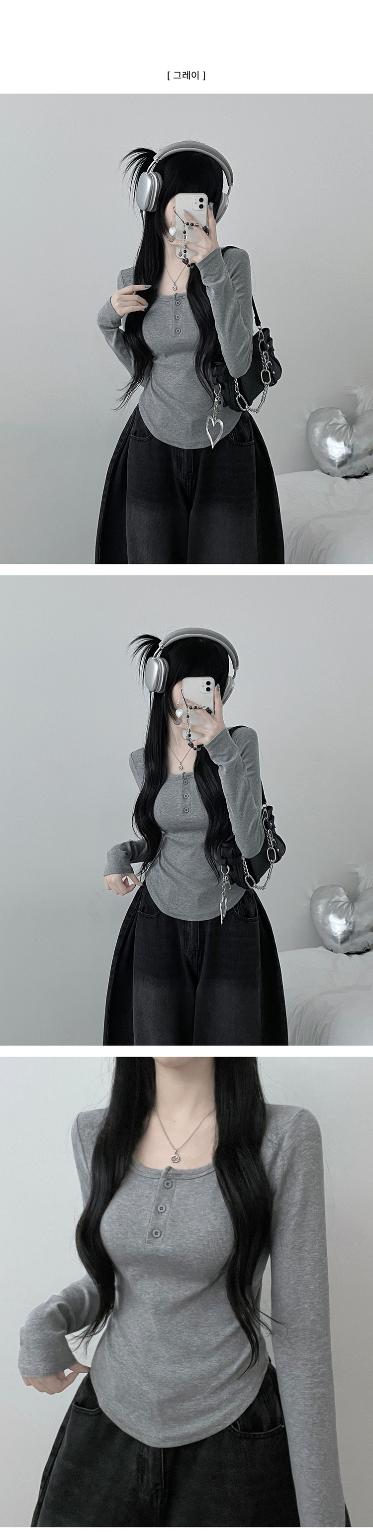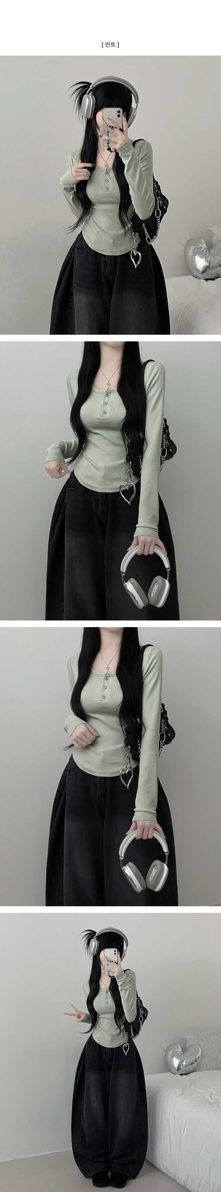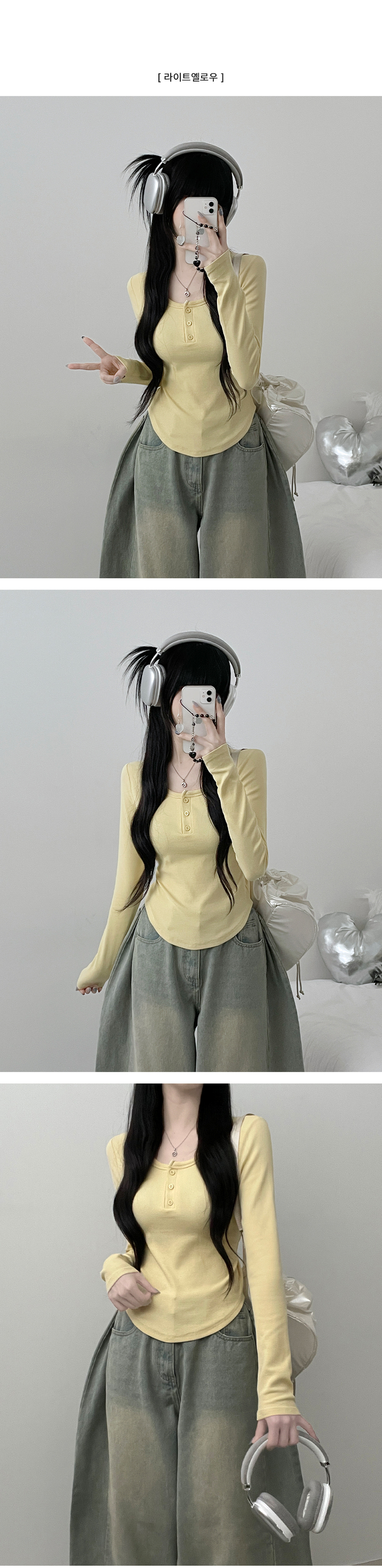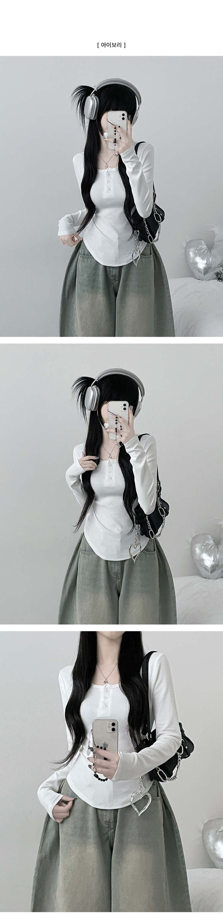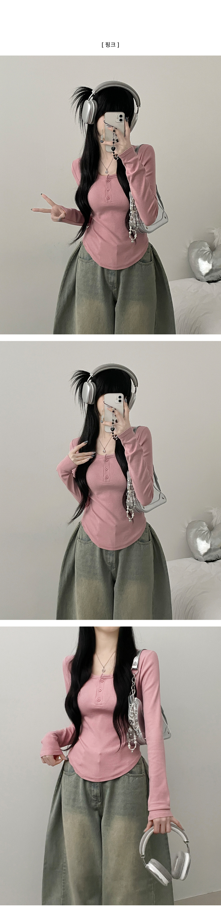 STS71300 긴팔버전리치버튼라운드세미크롭굴림긴팔티셔츠