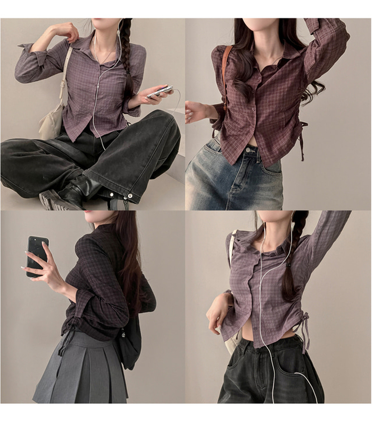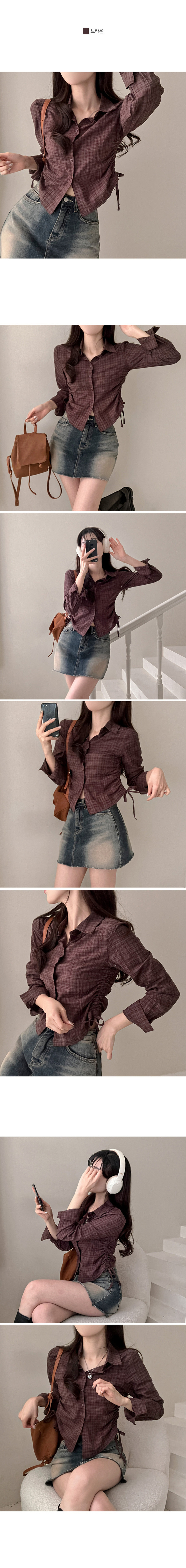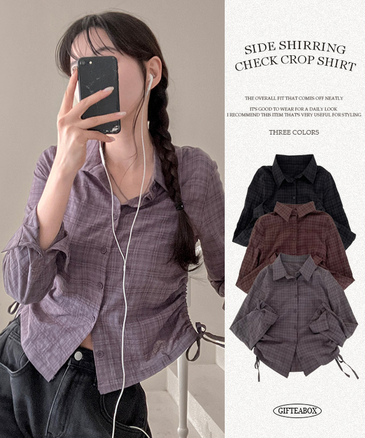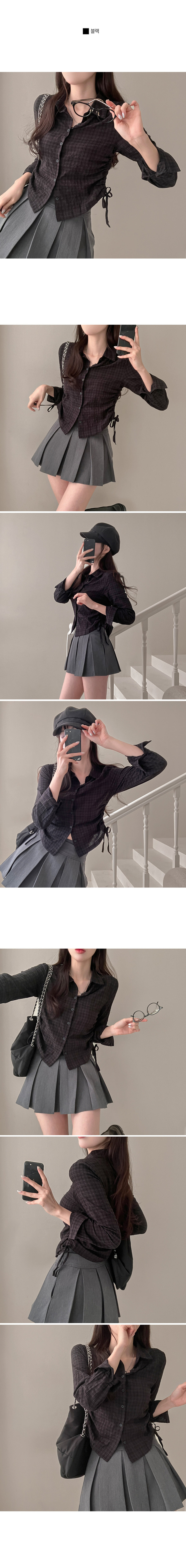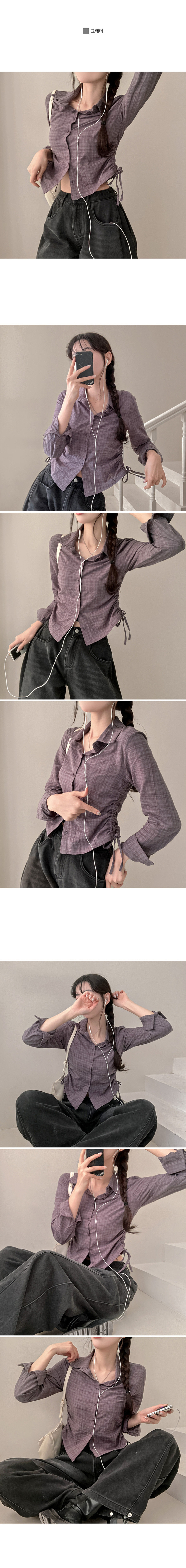 SBS29412 고스 옆셔링 체크 크롭 셔츠 남방