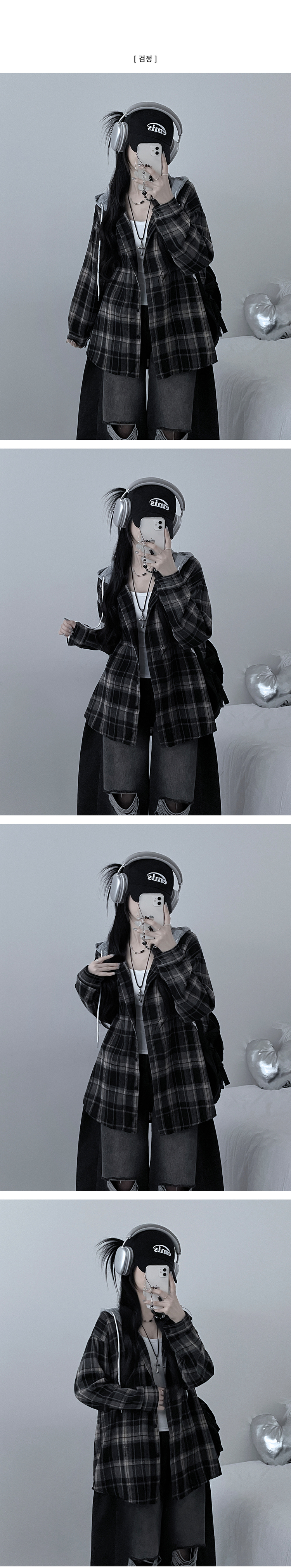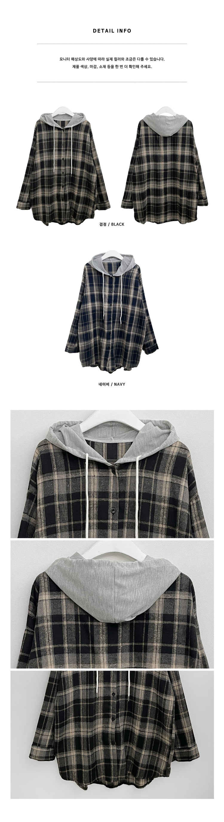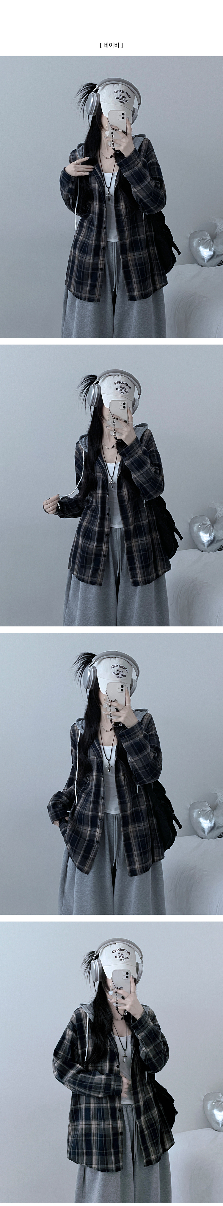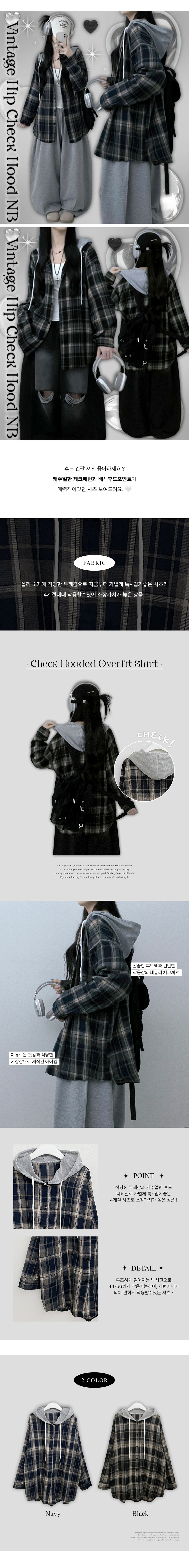SBS29429 빈티체크배색후드오버핏셔츠남방