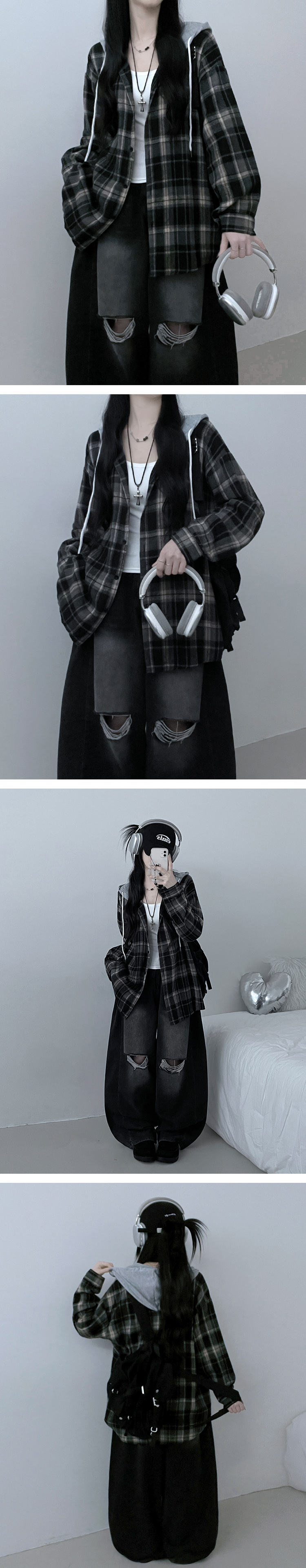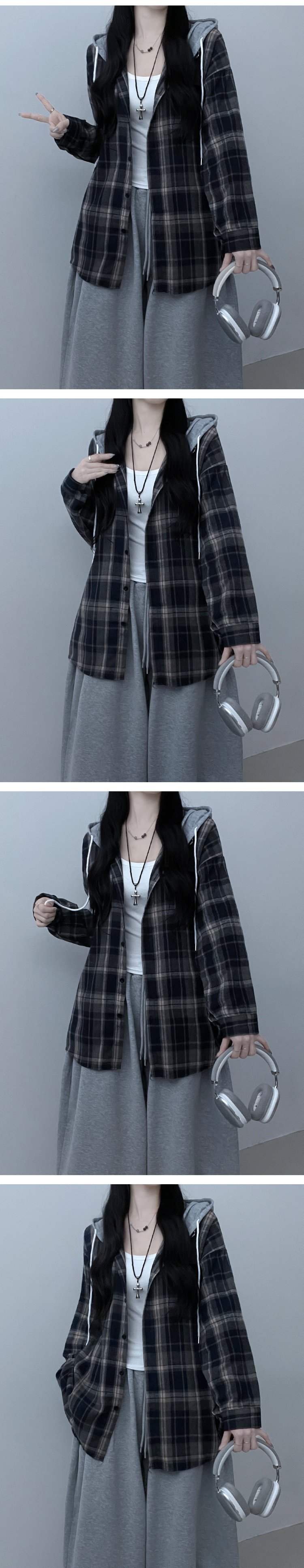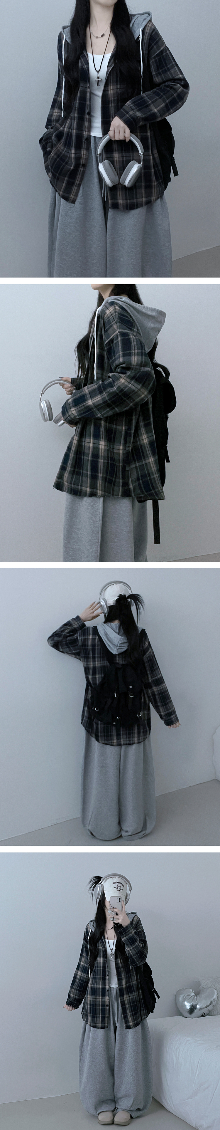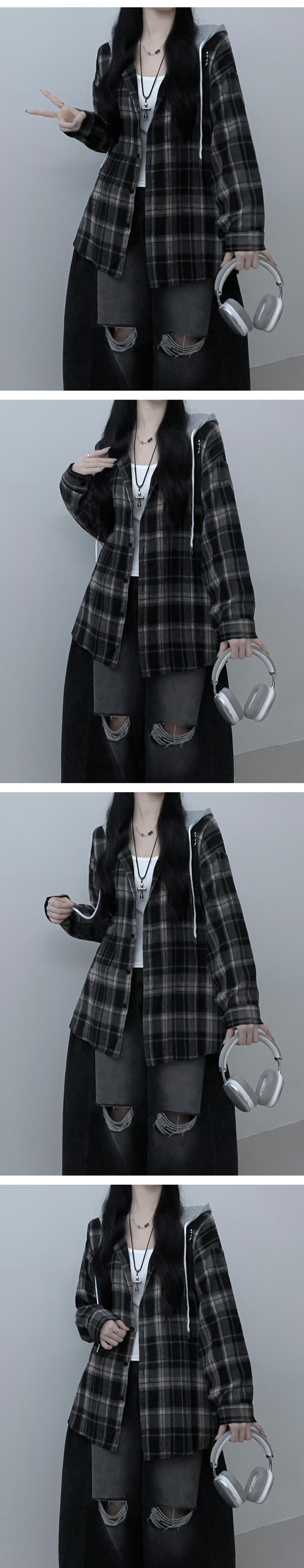 SBS29429 빈티체크배색후드오버핏셔츠남방