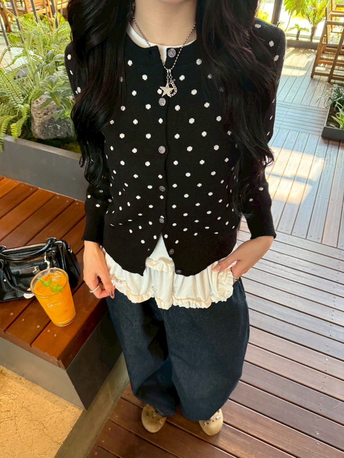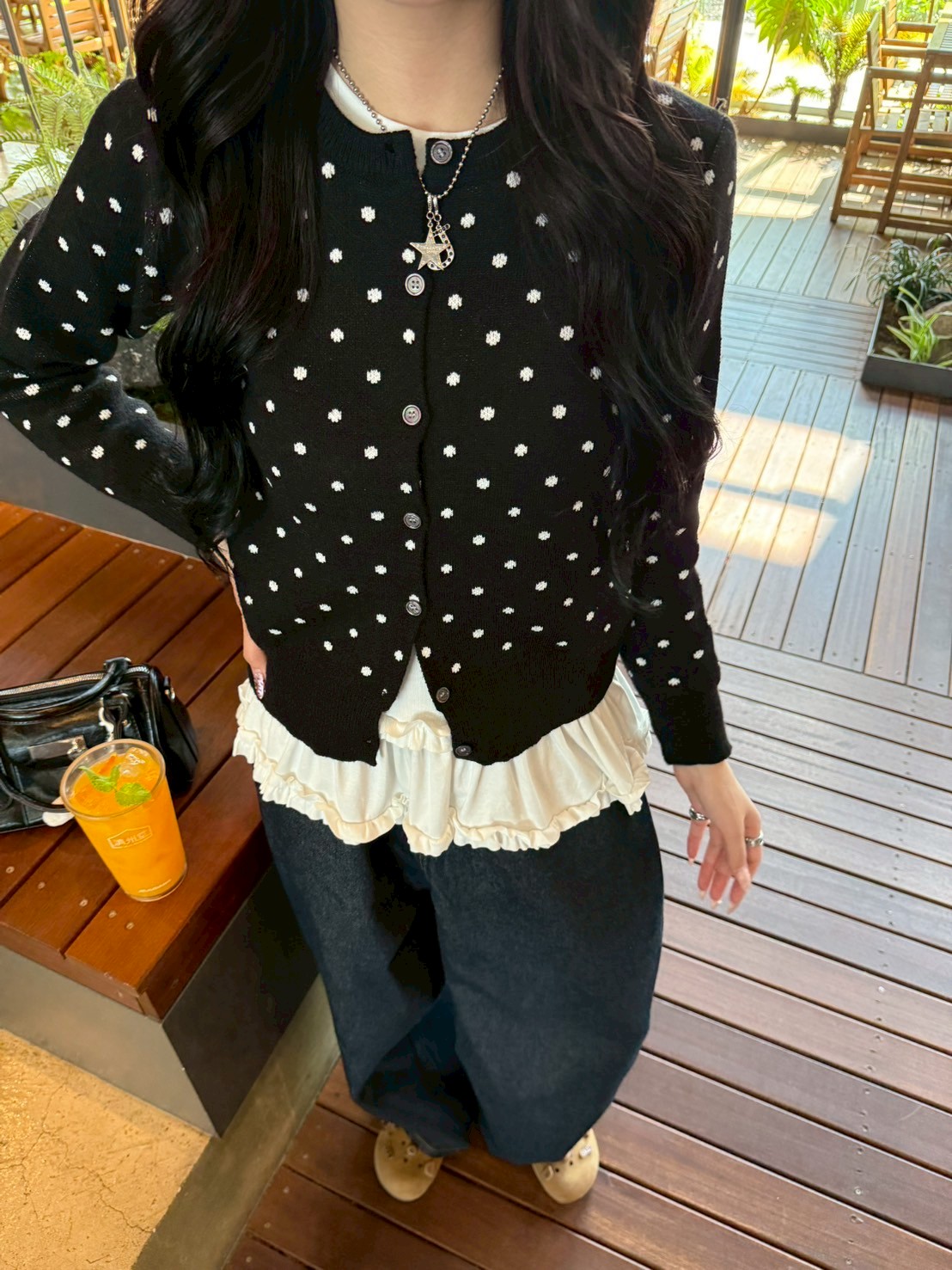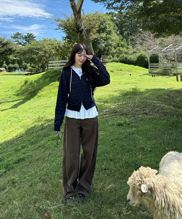 STS71357 레이어드 레이스 프릴 라운드 긴팔티셔츠