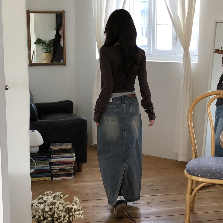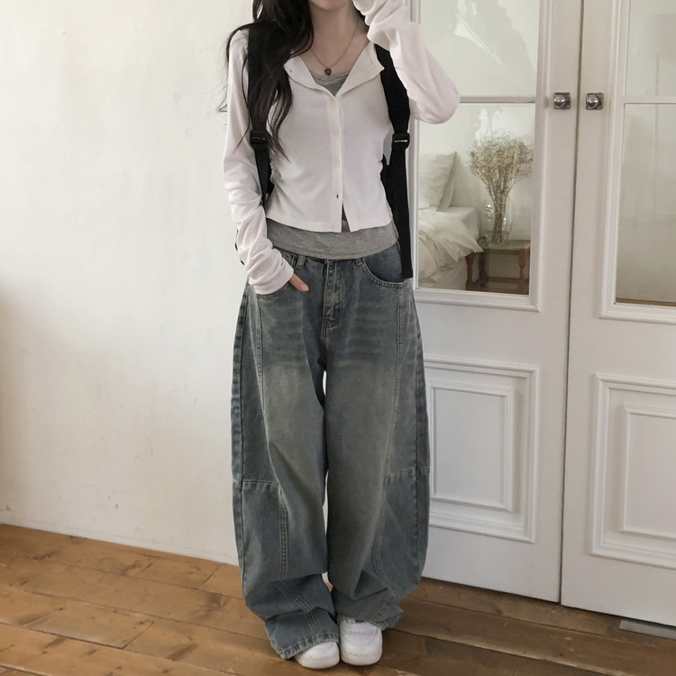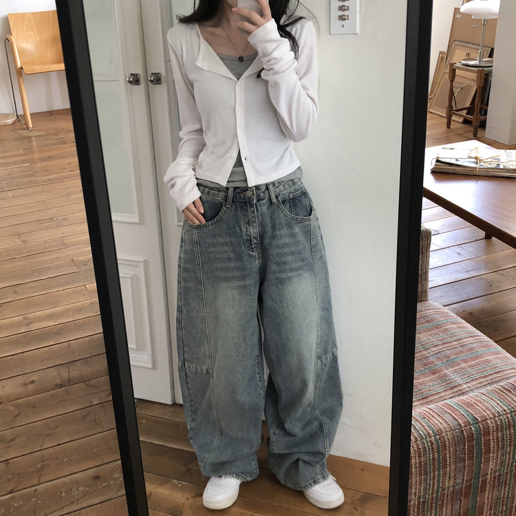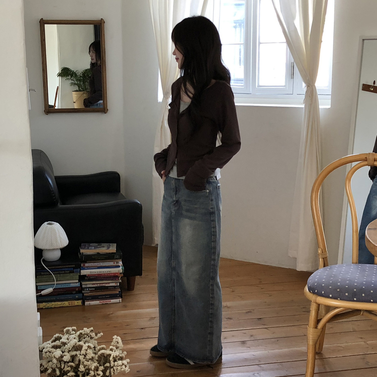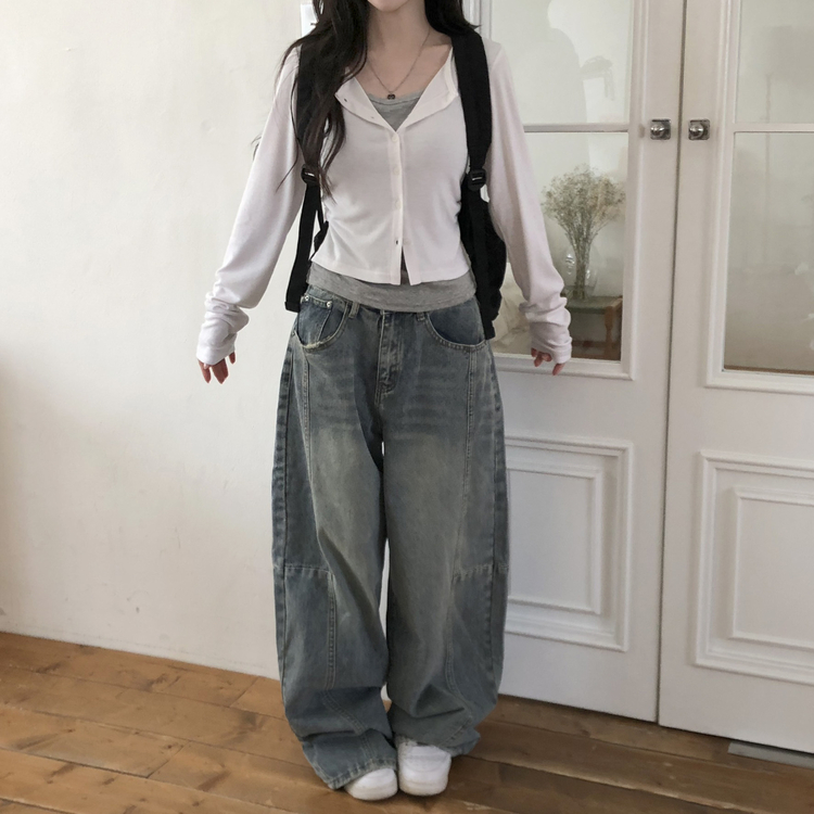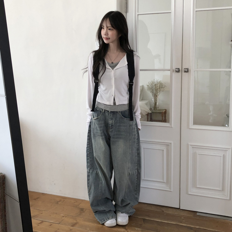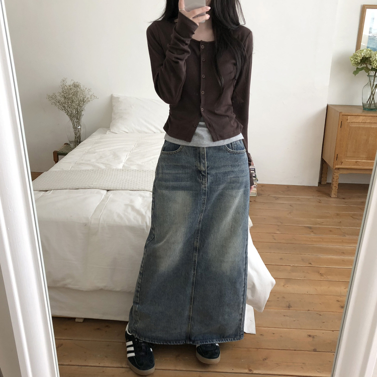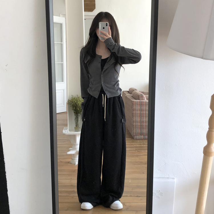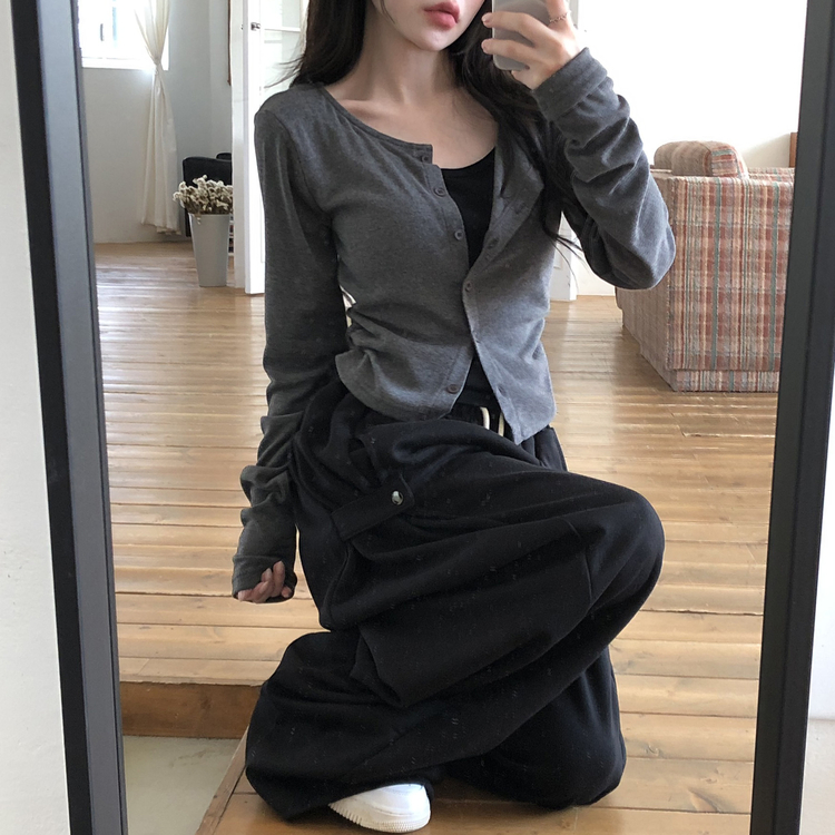 SGD28502 일체형 레이어드 데일리 허리셔링 배색 캐주얼 가디건 긴팔티
