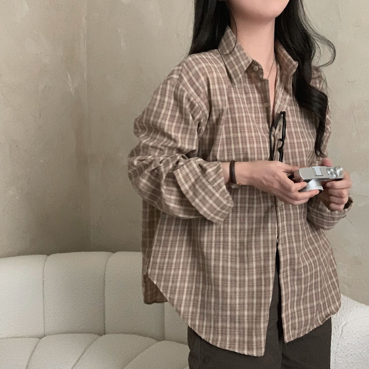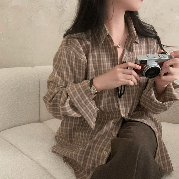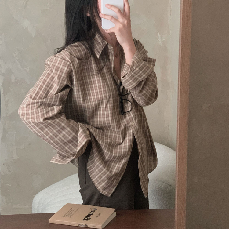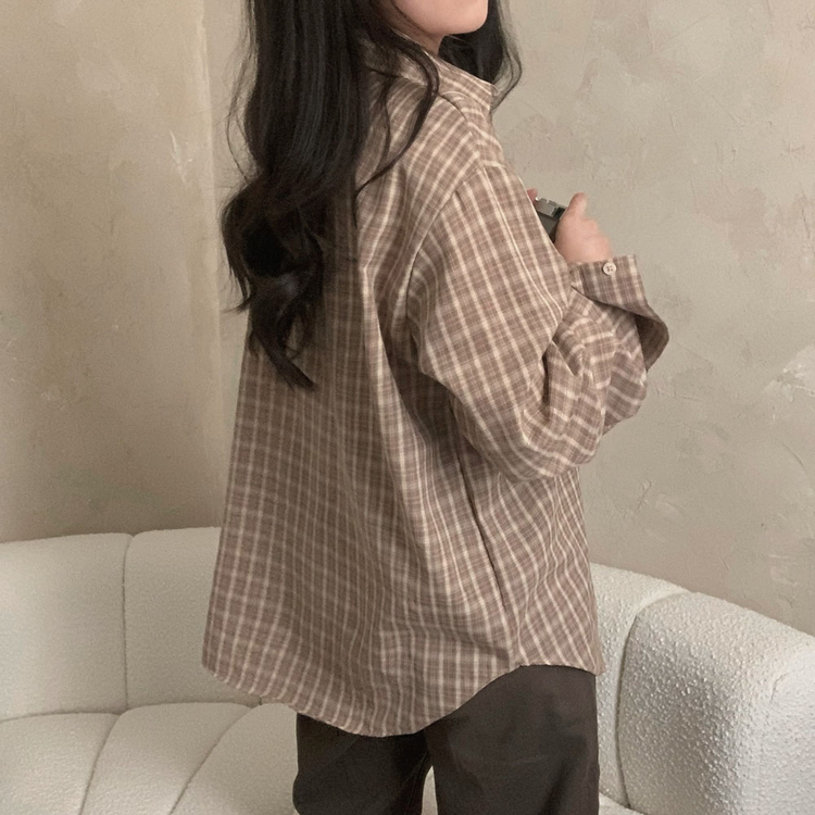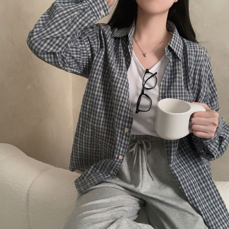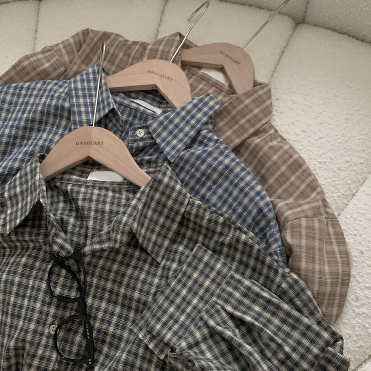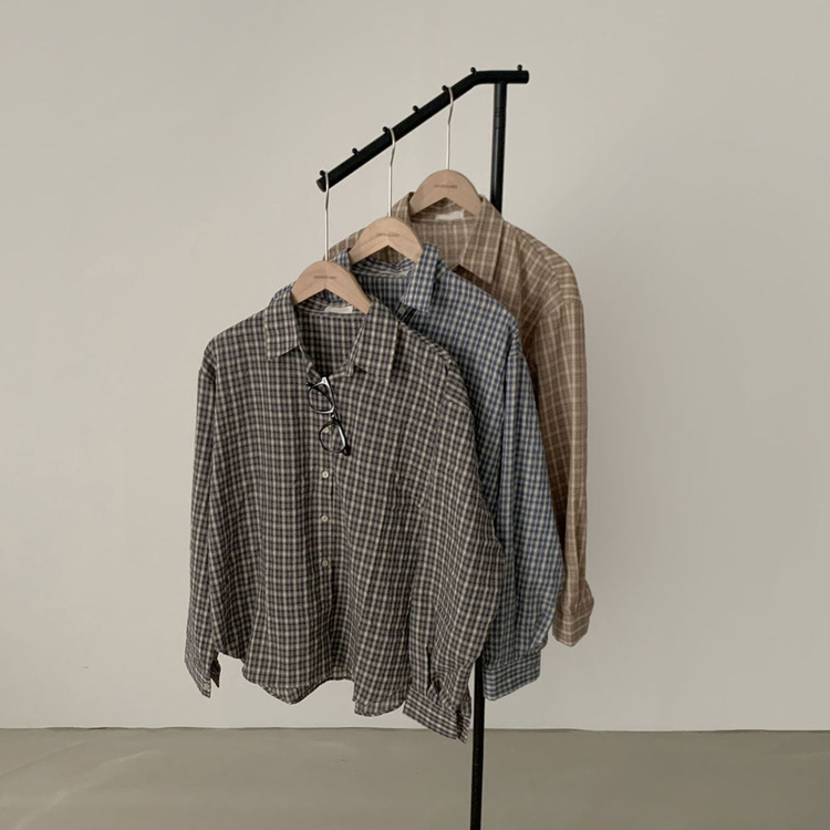 SBS29477 흑당 버블티 어텀 루즈핏 체크 셔츠 남방