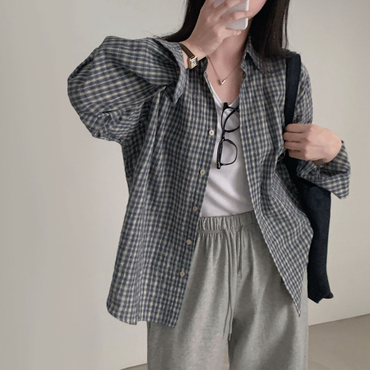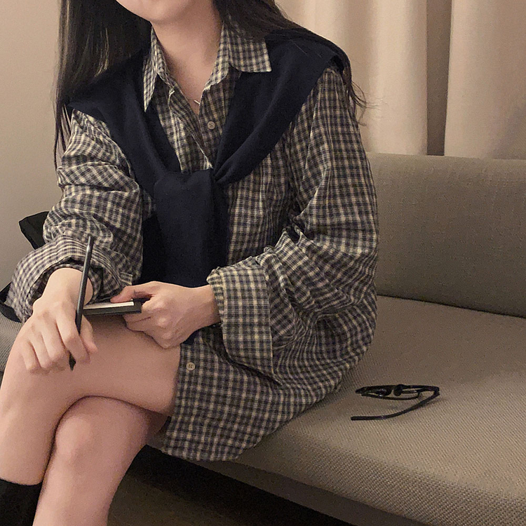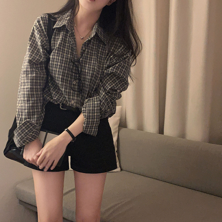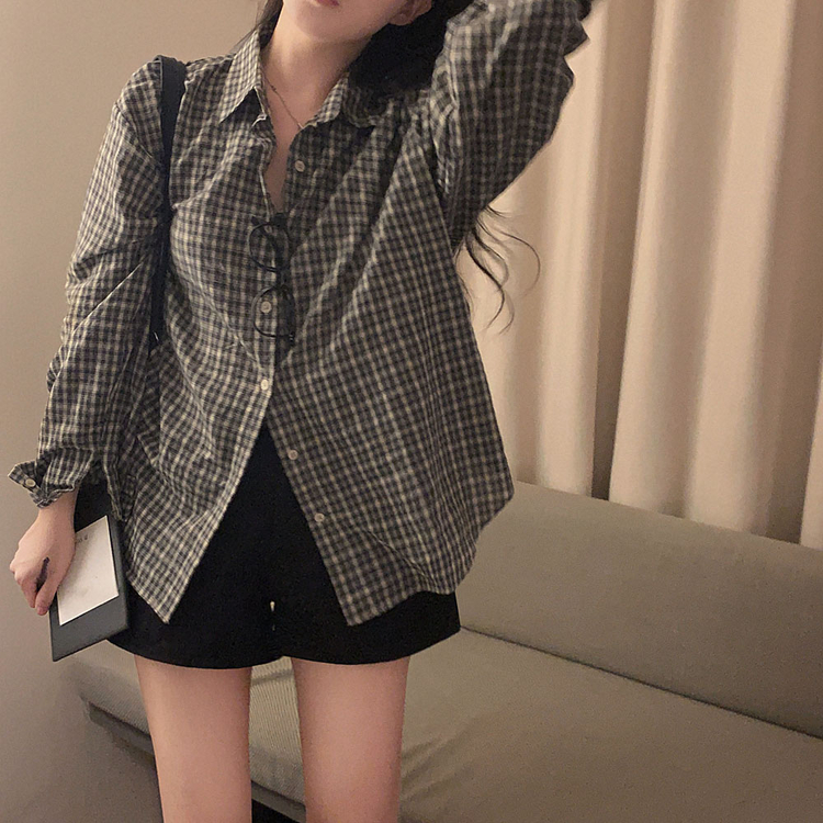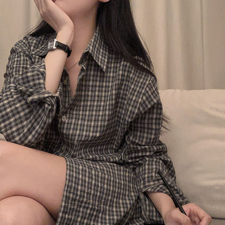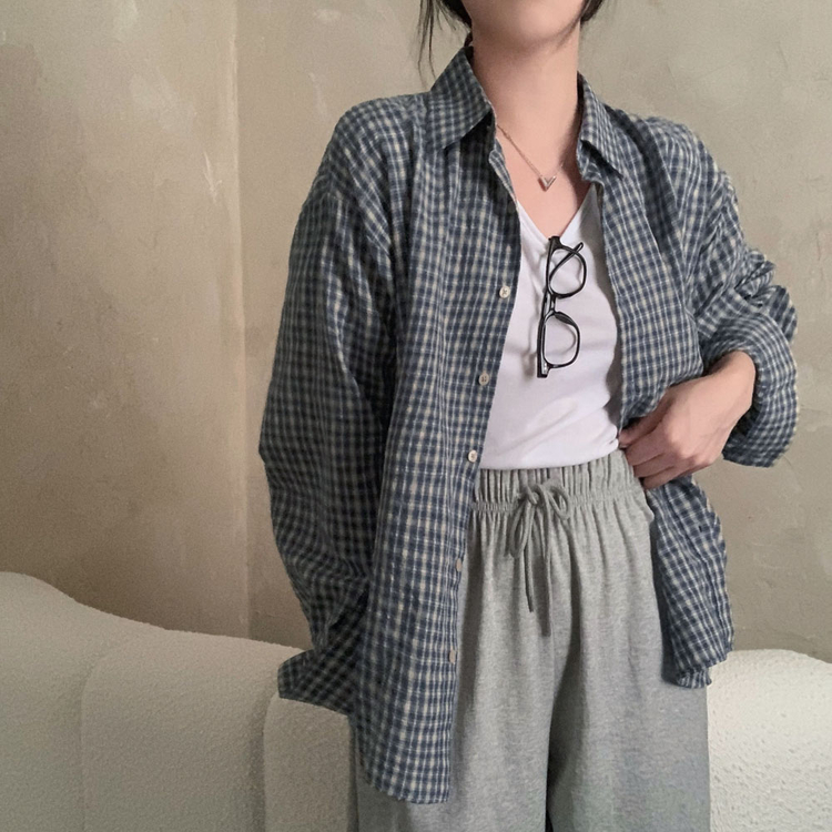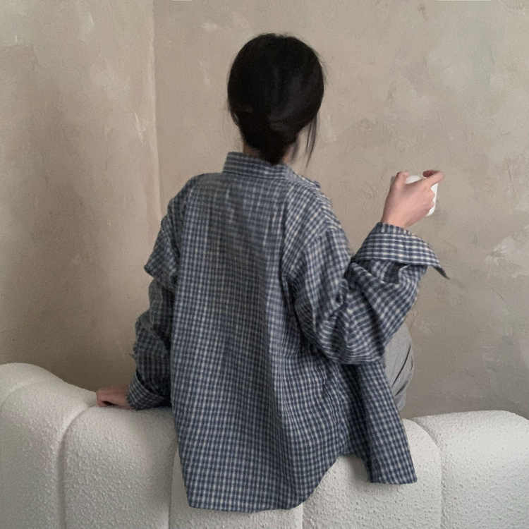 SBS29477 흑당 버블티 어텀 루즈핏 체크 셔츠 남방
