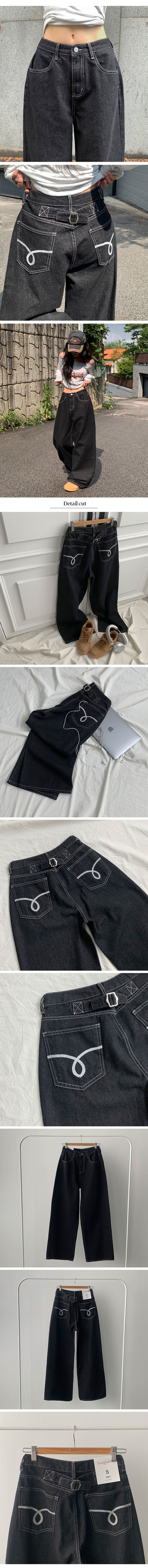 SPS36204 에클렛 논페이드 백 버클 자수 포켓 데님 롱 와이드팬츠