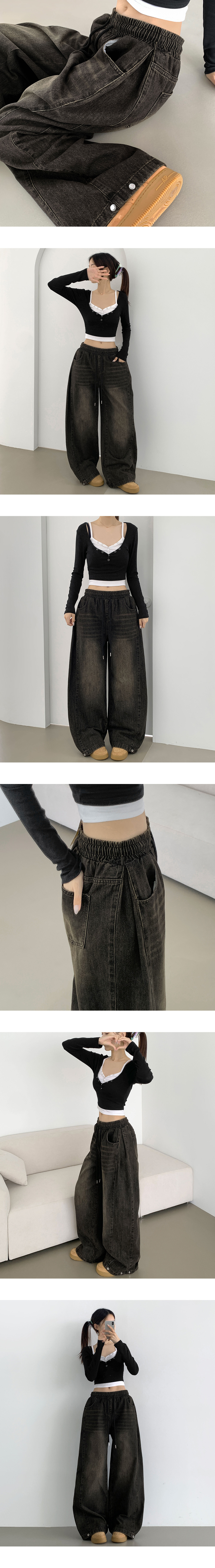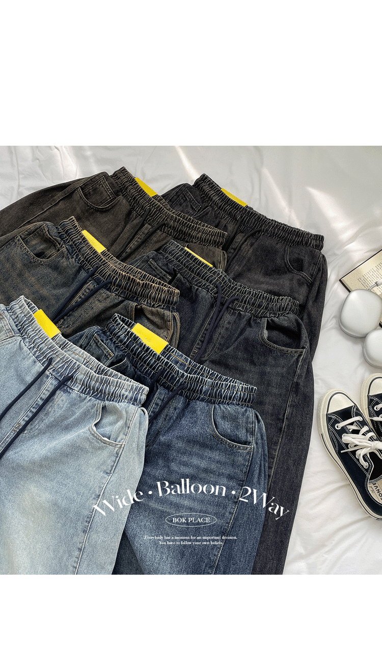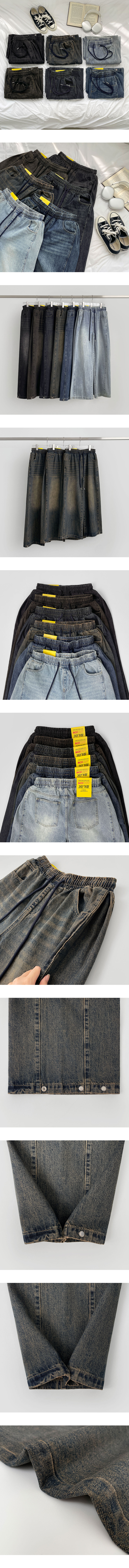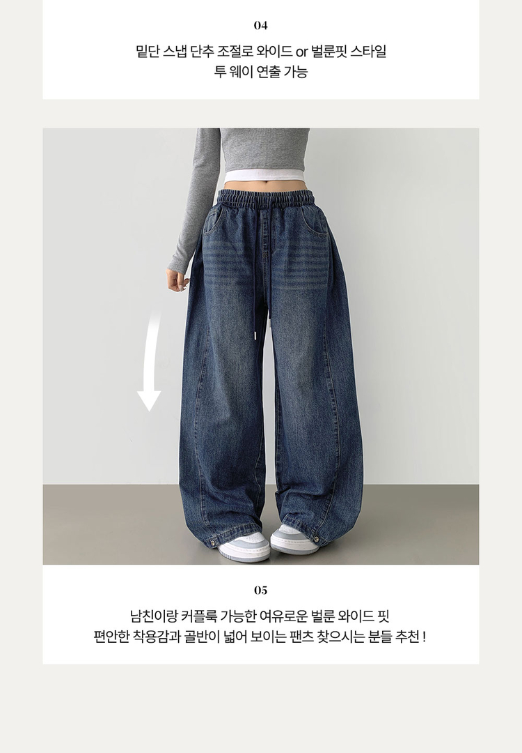 SJE12796 3XL폴딩 핀턱 밑단스냅 벌룬핏 와이드핏 밴딩 데님팬츠