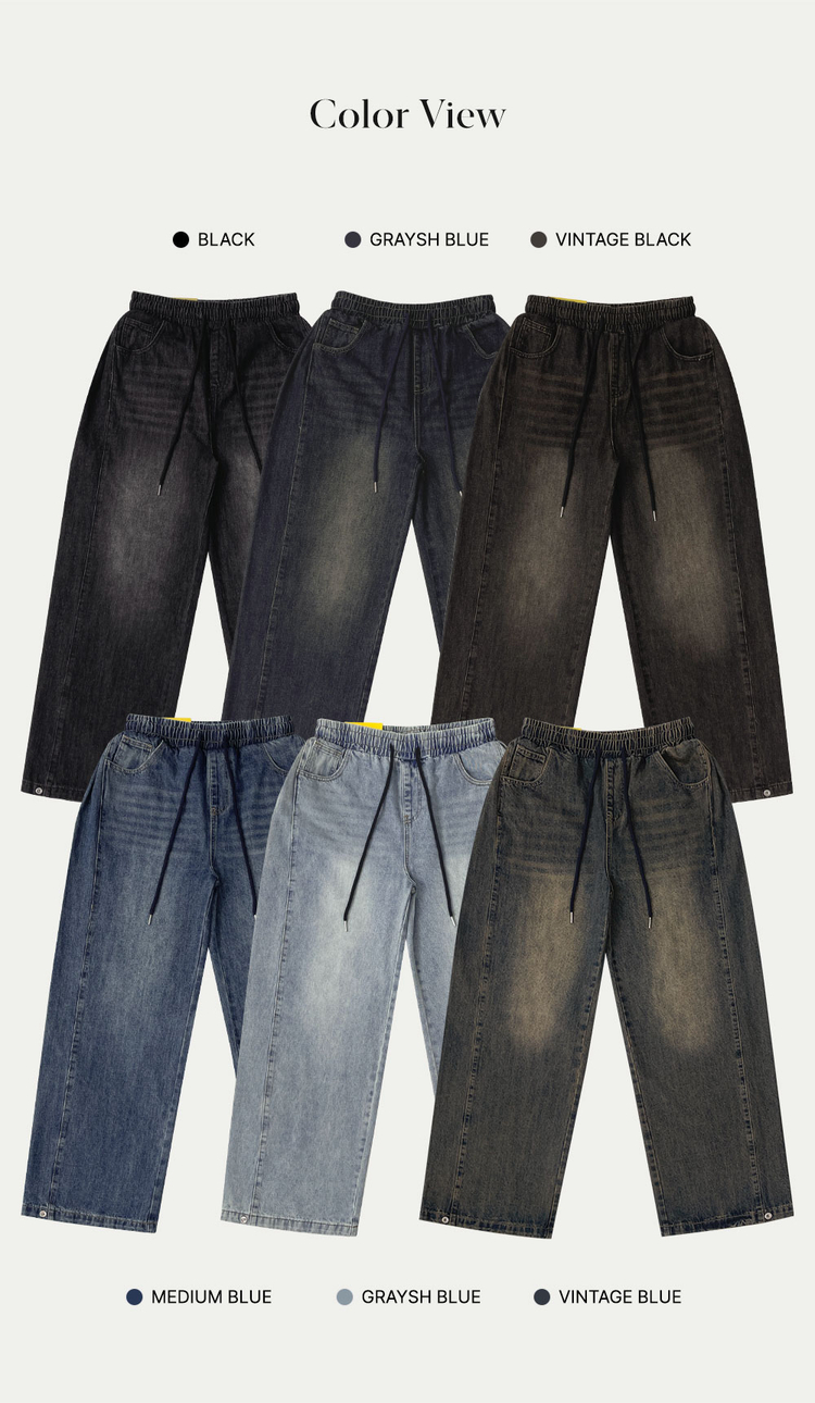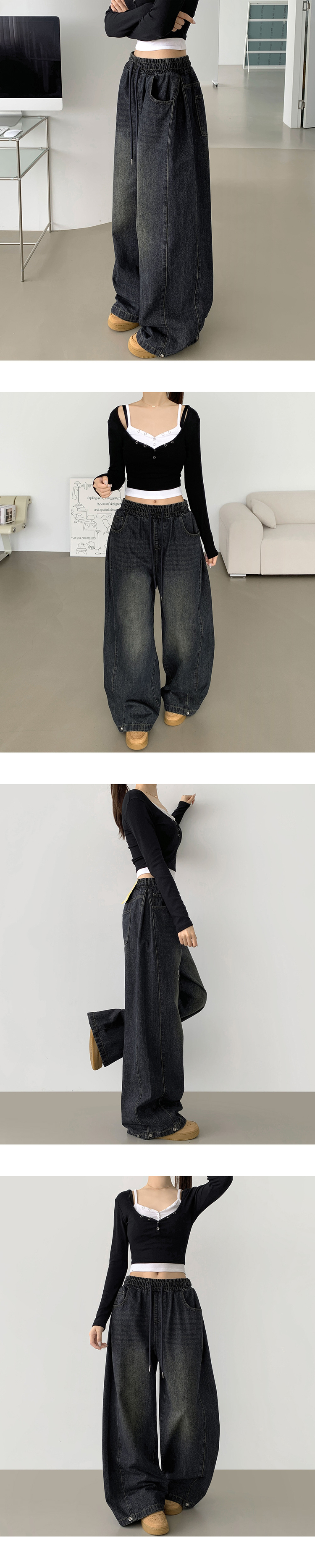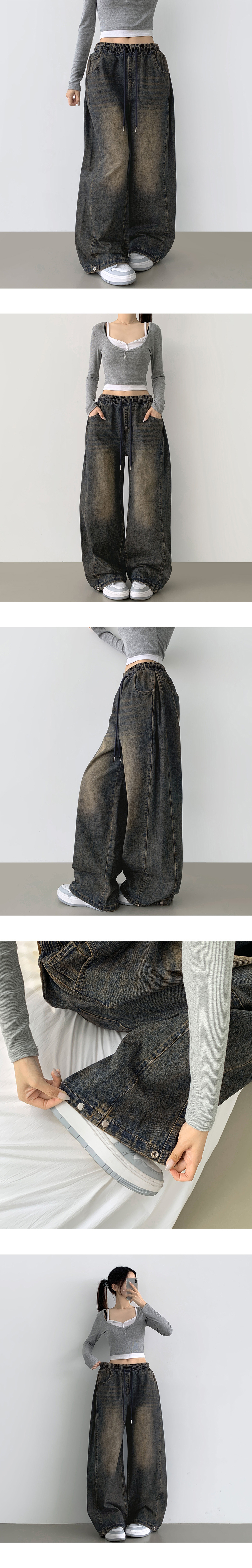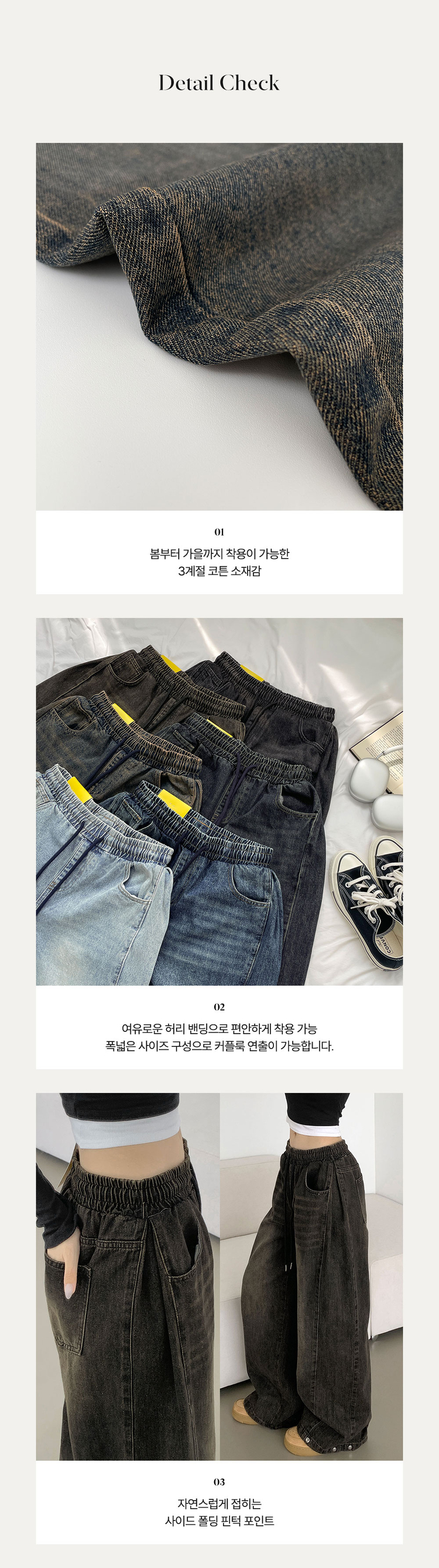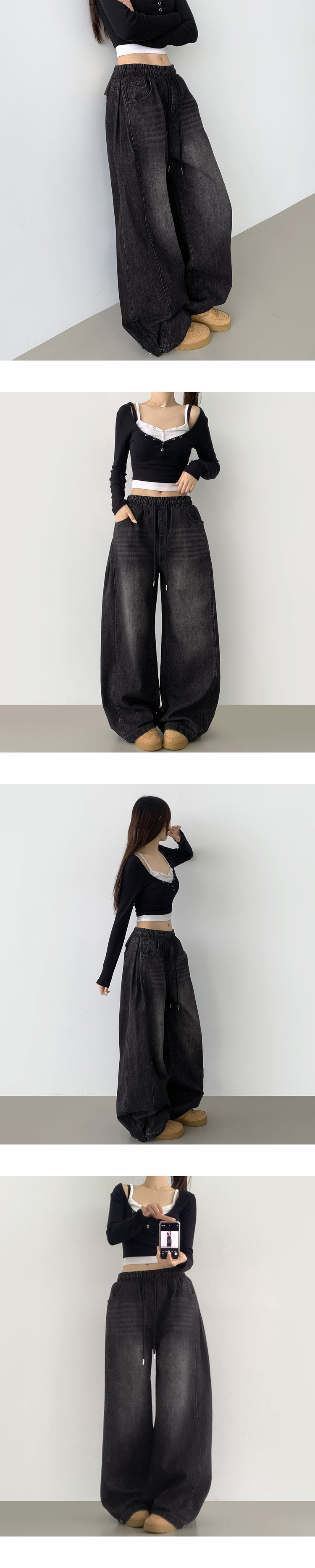 SJE12796 3XL폴딩 핀턱 밑단스냅 벌룬핏 와이드핏 밴딩 데님팬츠