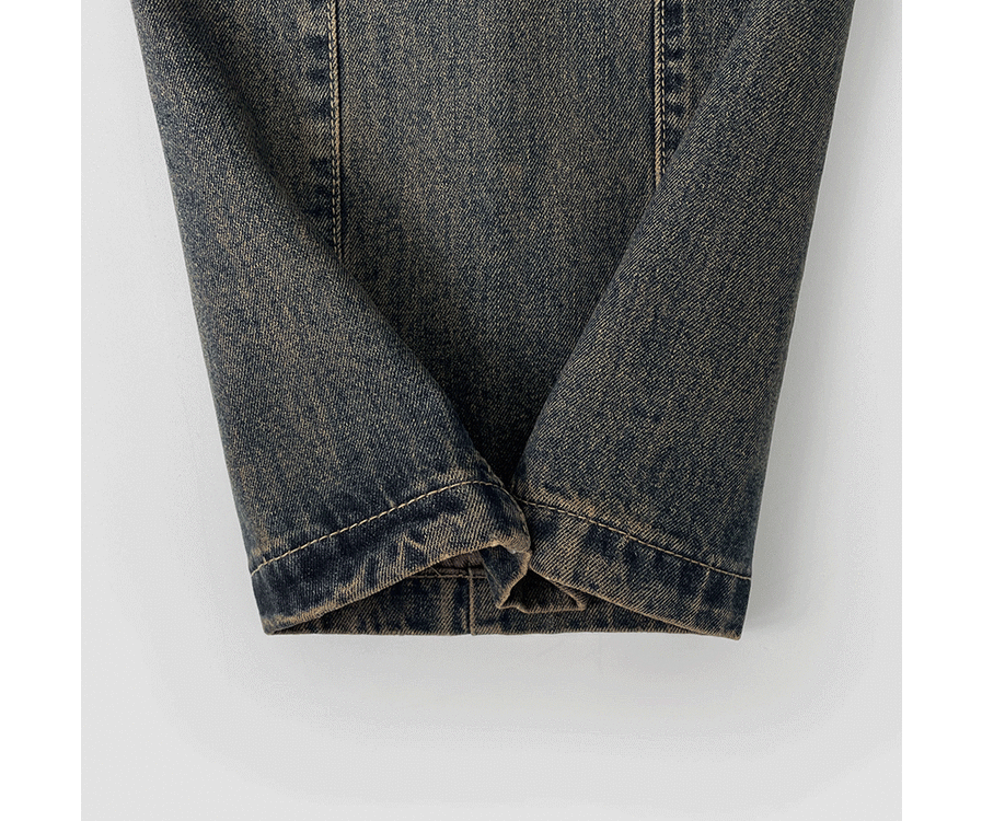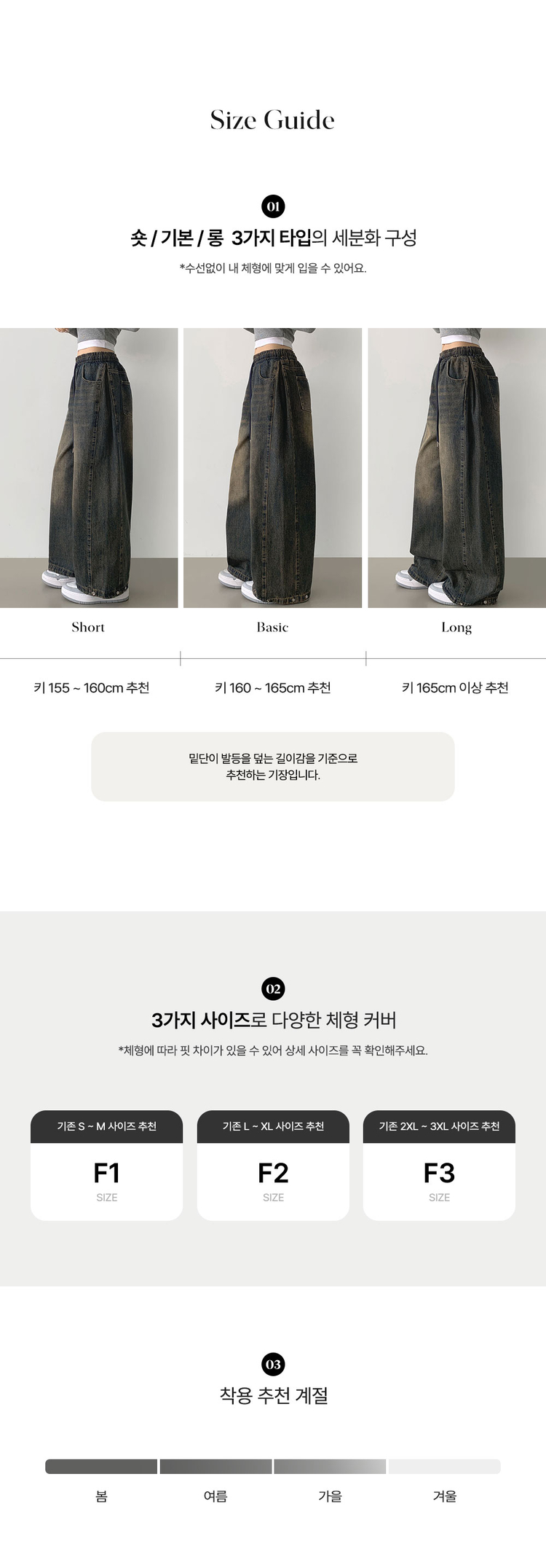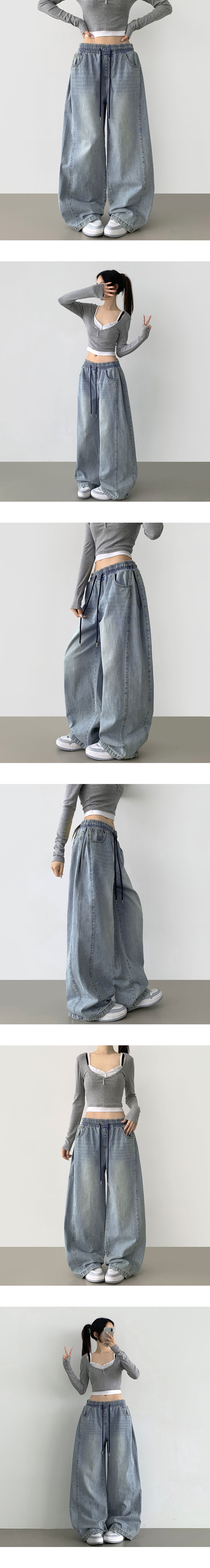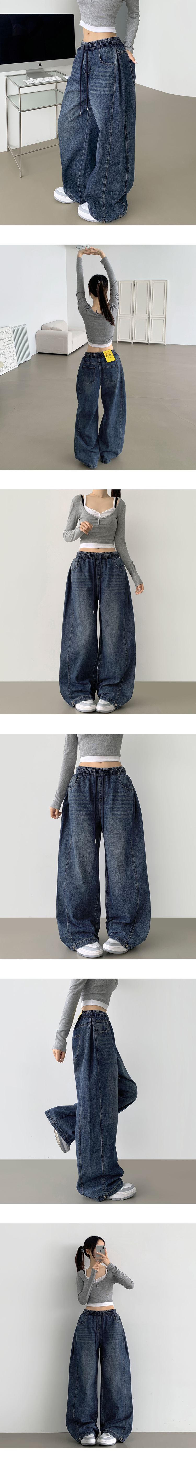 SJE12796 3XL폴딩 핀턱 밑단스냅 벌룬핏 와이드핏 밴딩 데님팬츠