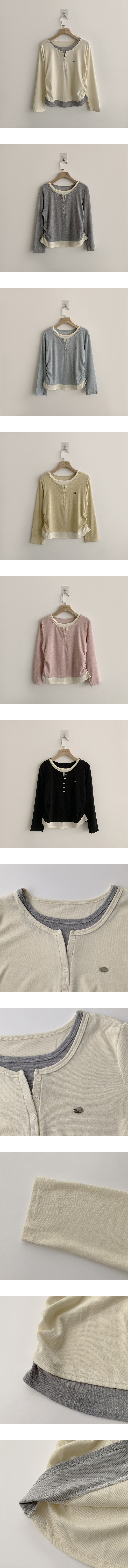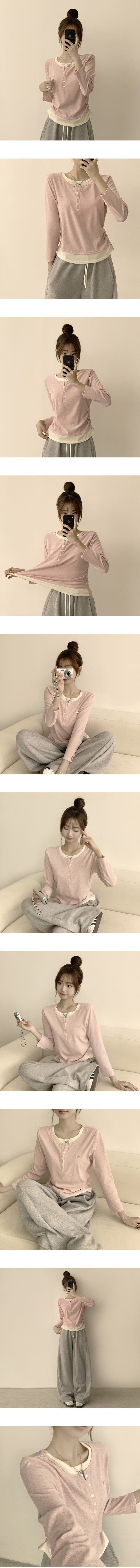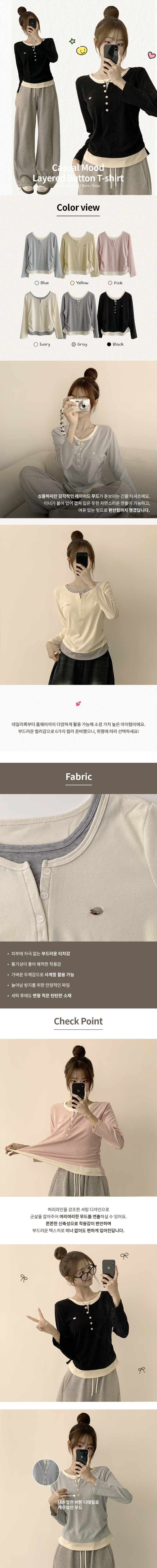 STS71520 투픽 라운드 버튼 펜던트 버튼 레이어드 단추 긴팔 티셔츠
