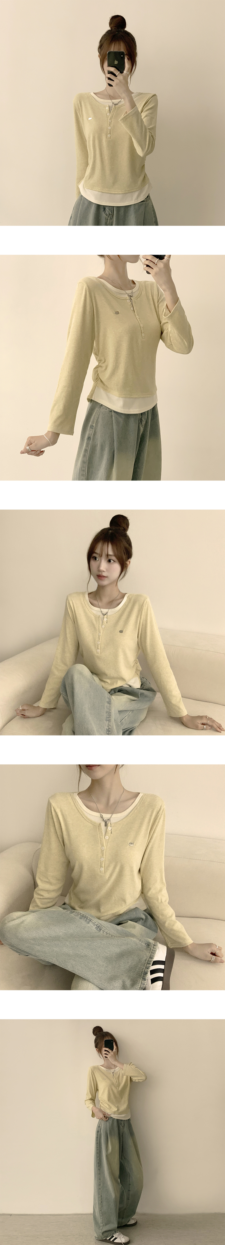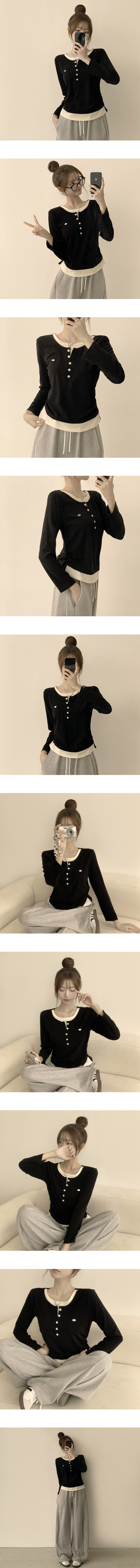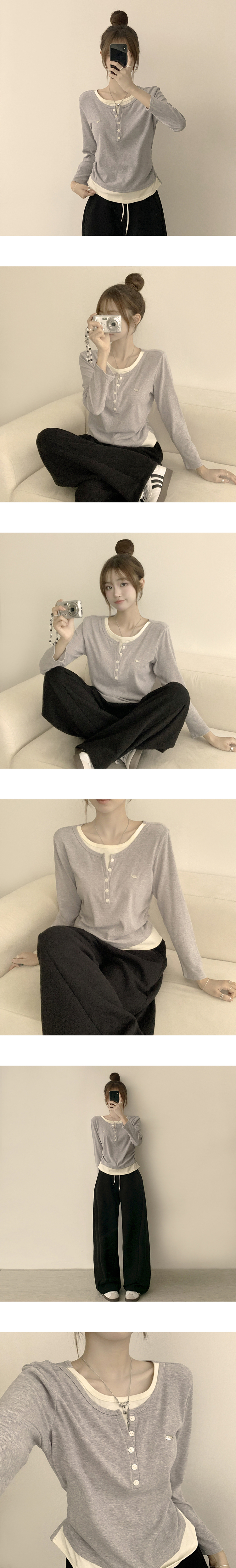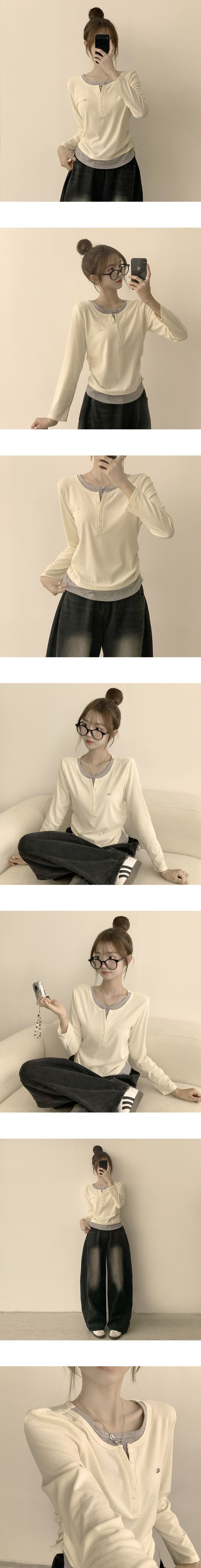 STS71520 투픽 라운드 버튼 펜던트 버튼 레이어드 단추 긴팔 티셔츠