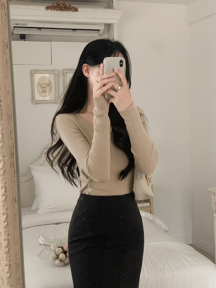 SNT31988 소르 여리 슬림 브이 니트