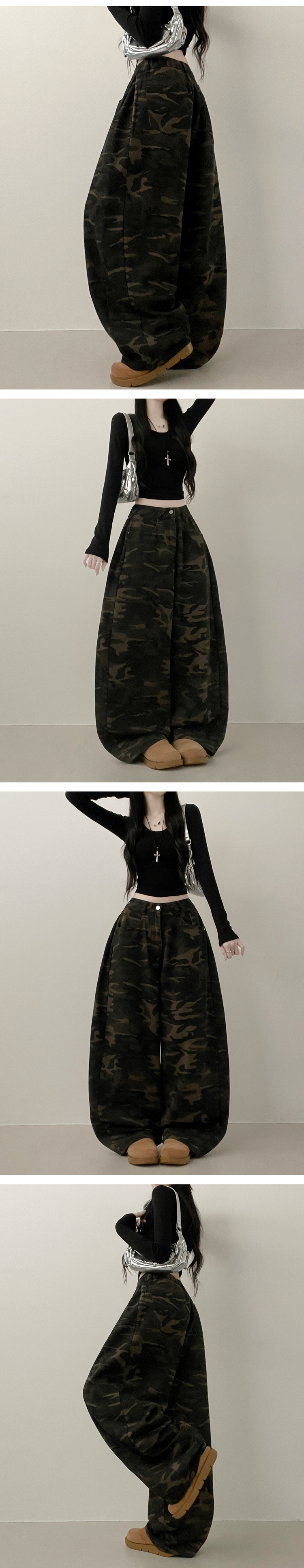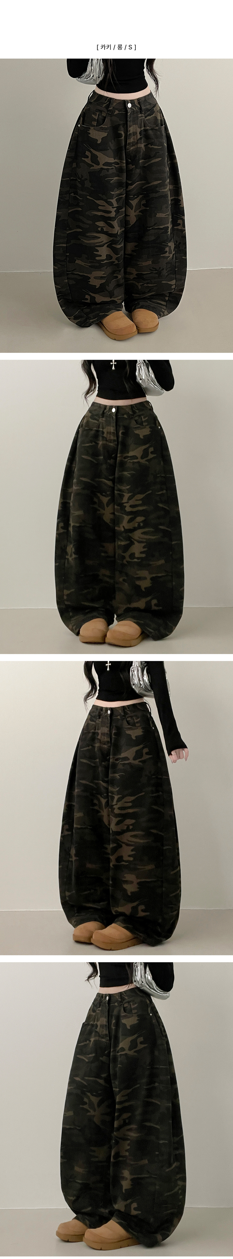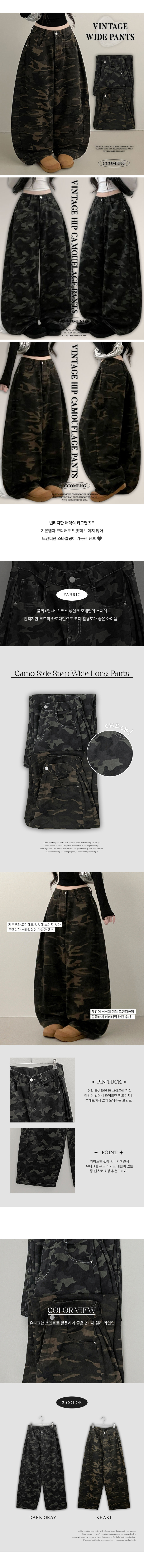 SPS36257 숏롱선택루프카모패턴코튼사이드스냅와이드롱팬츠