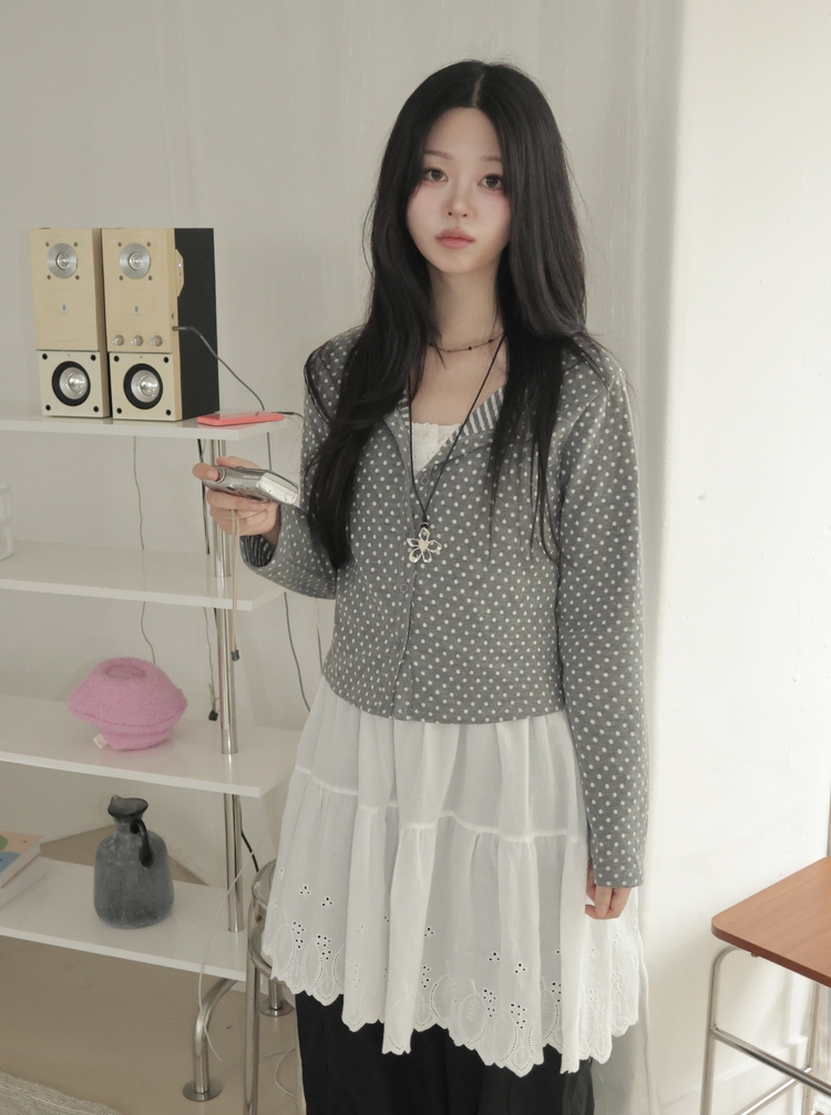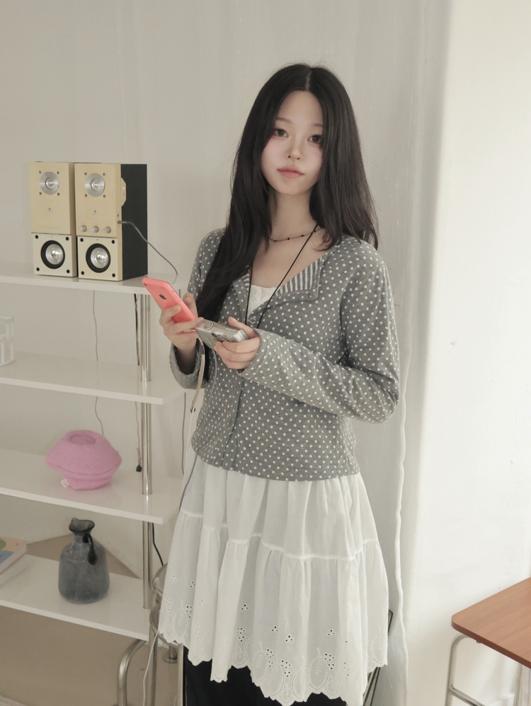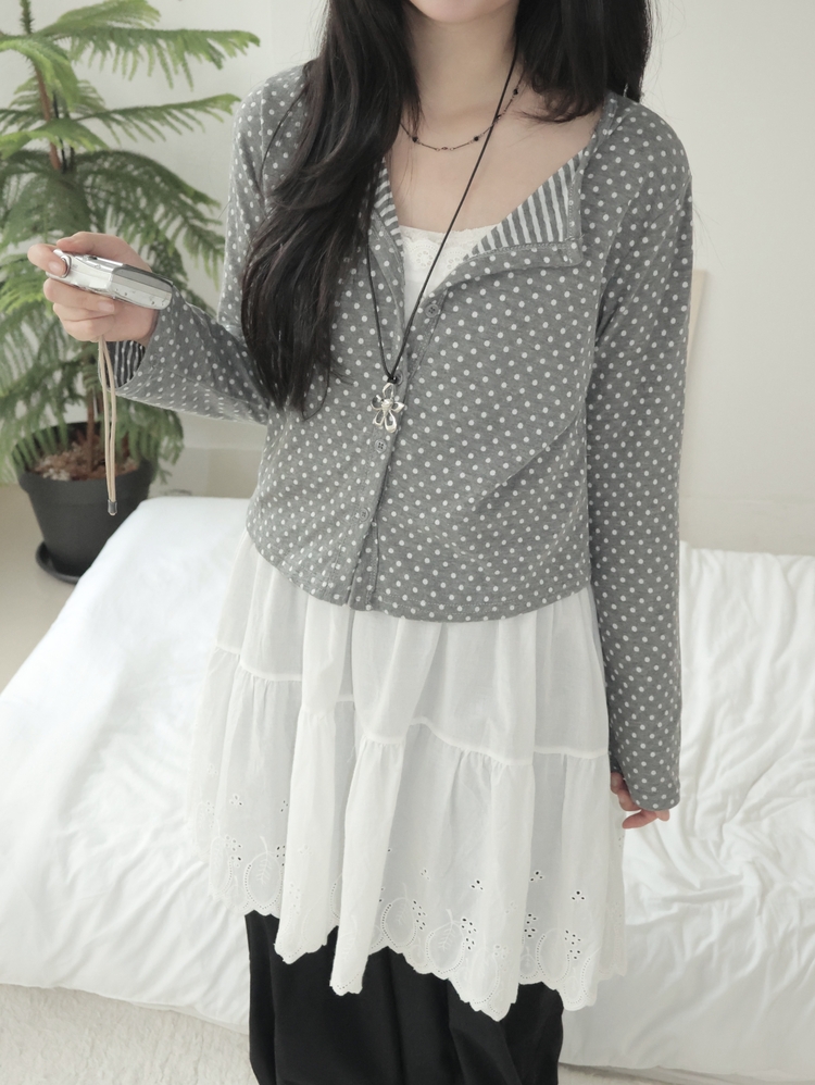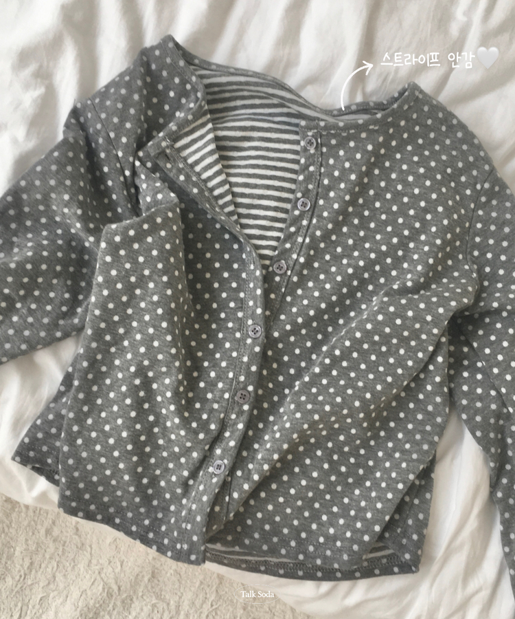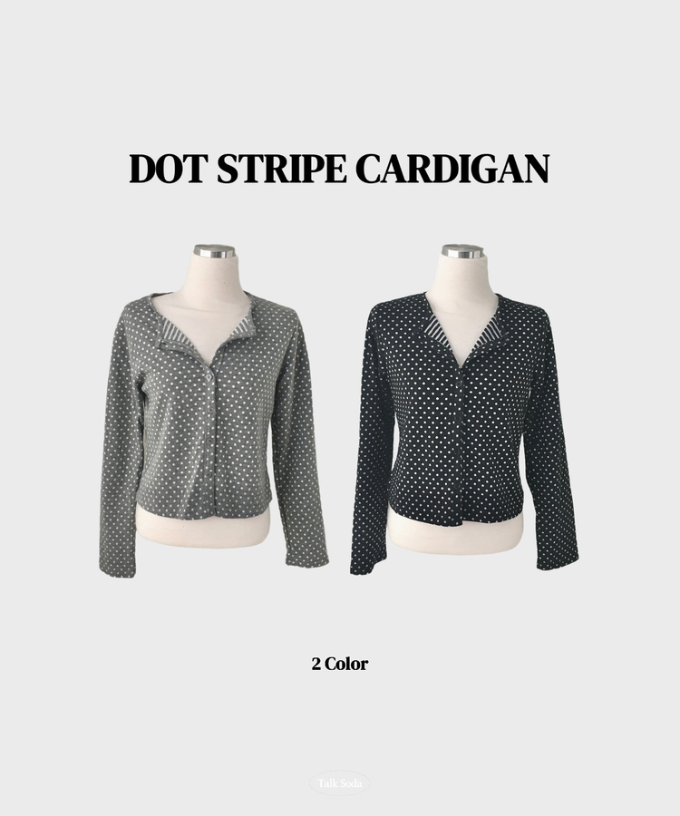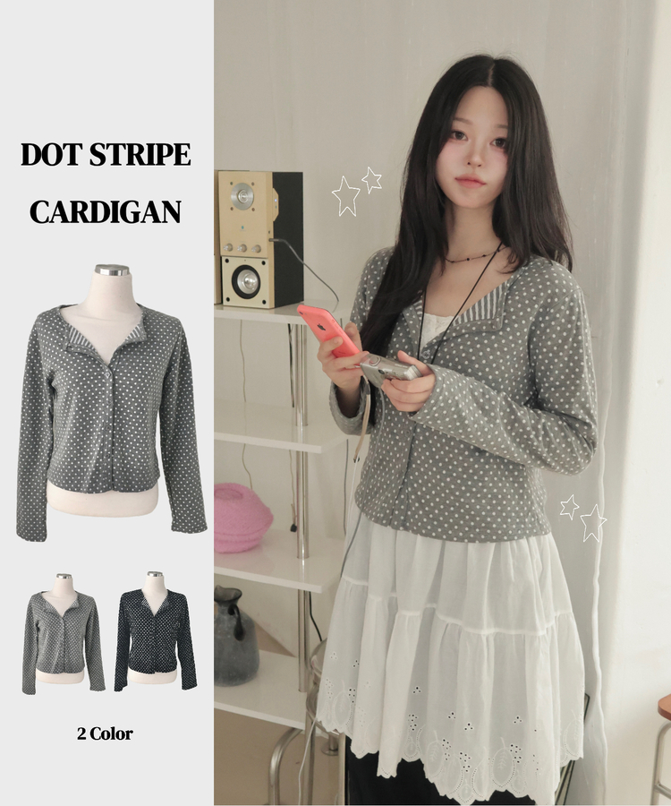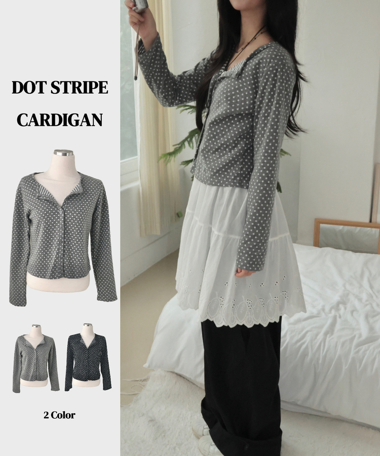SGD28571 키치 유니크 스트라이프 안감 도트 가디건 봄 가을 빈티지