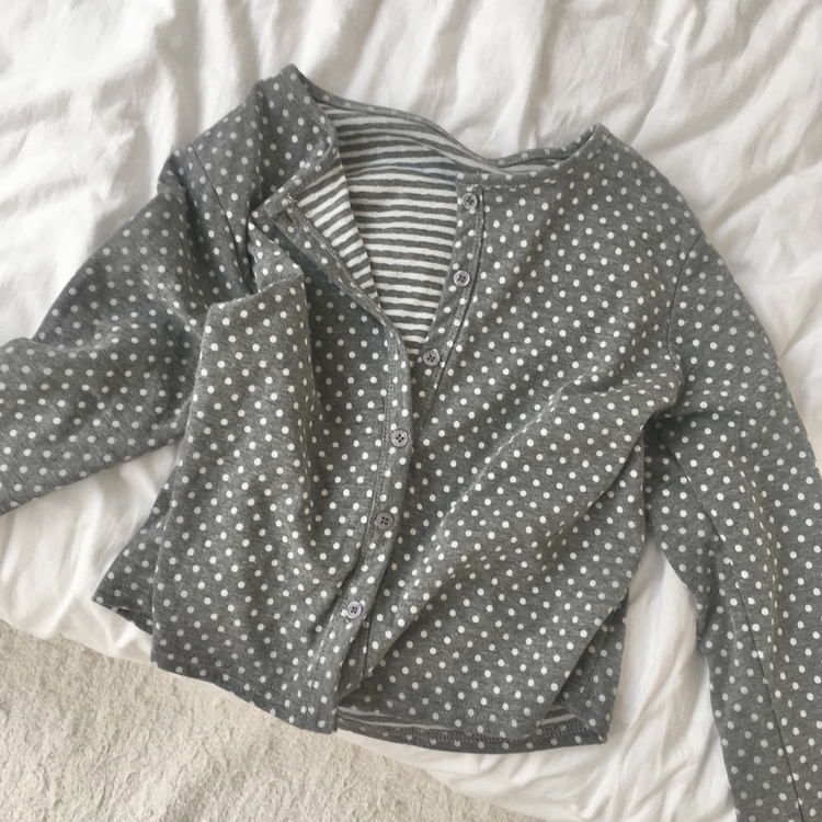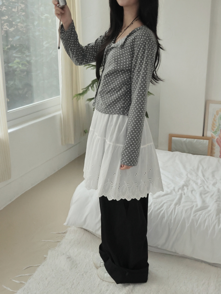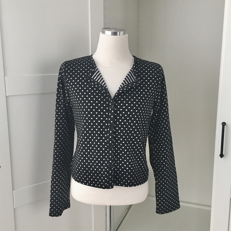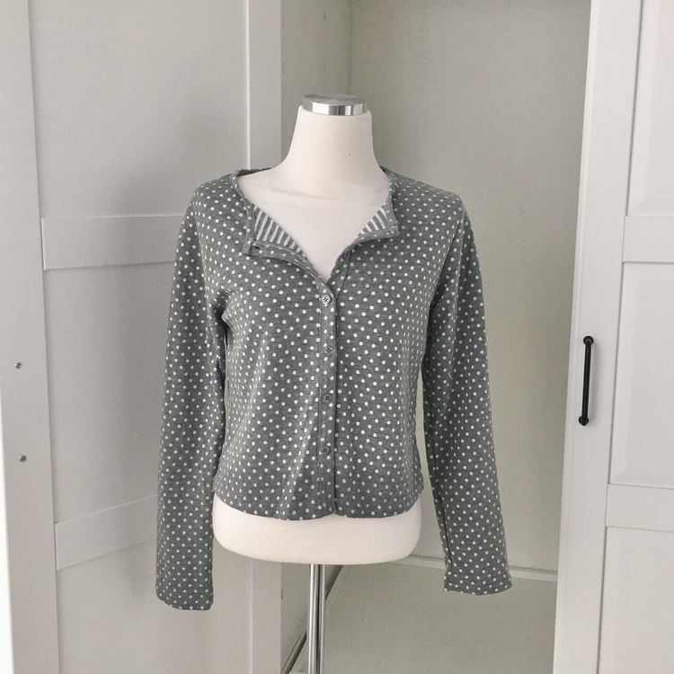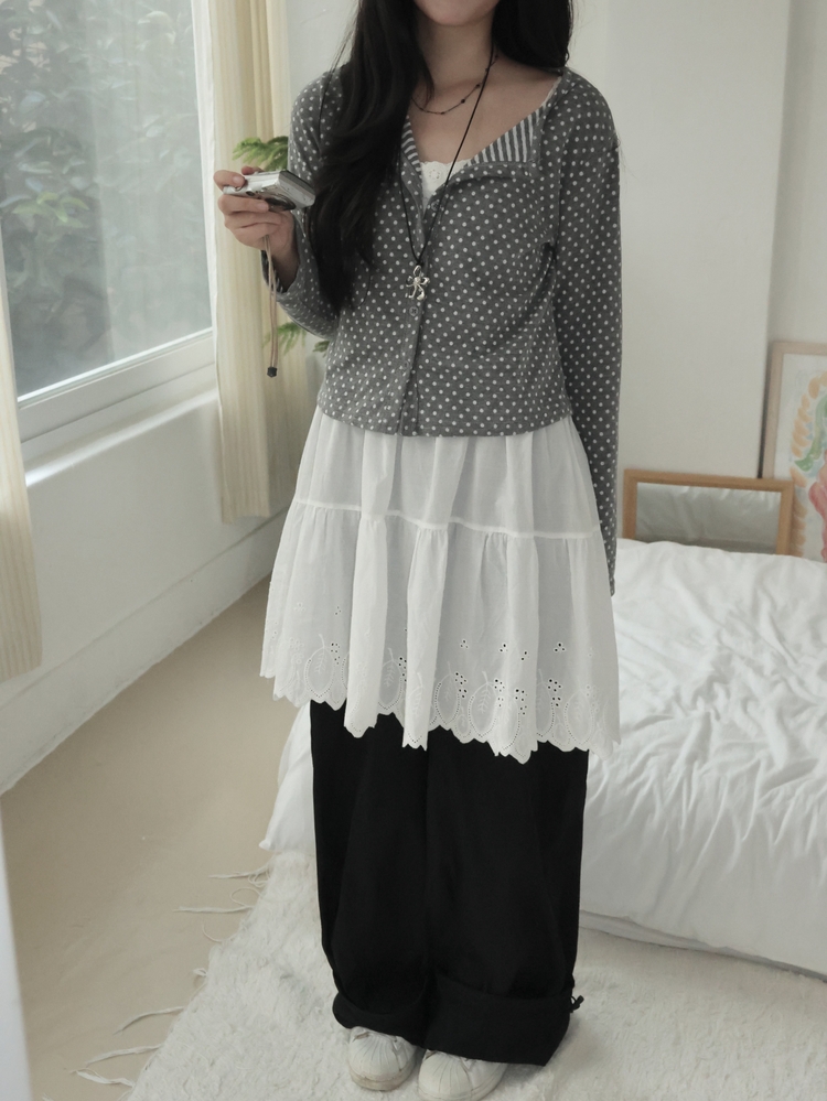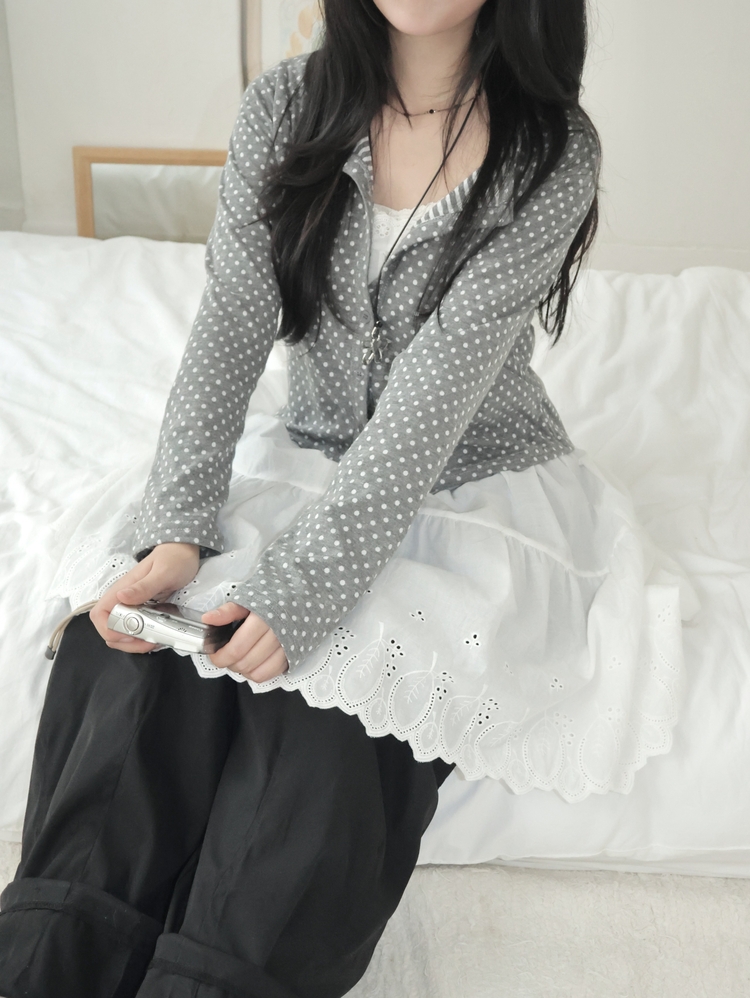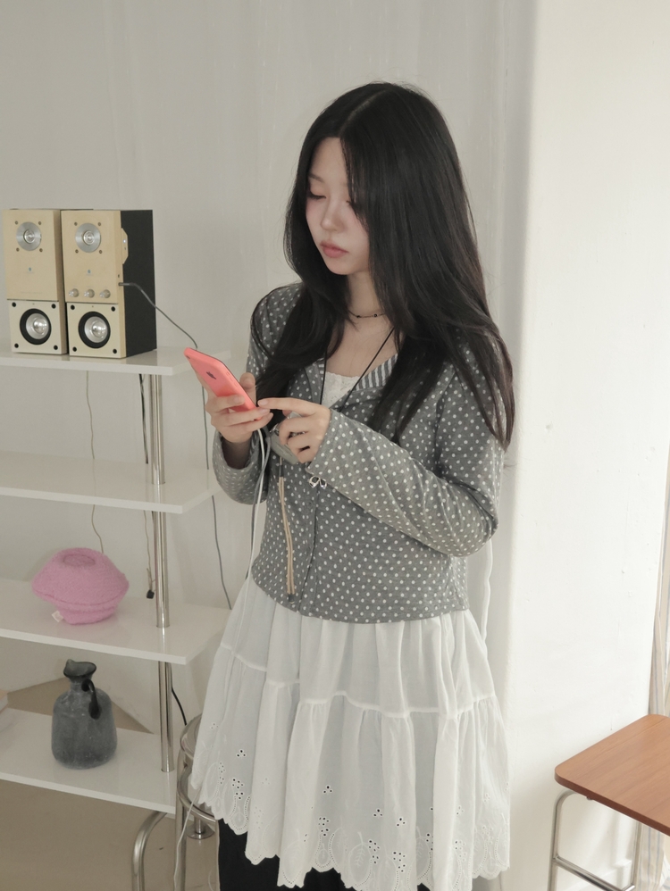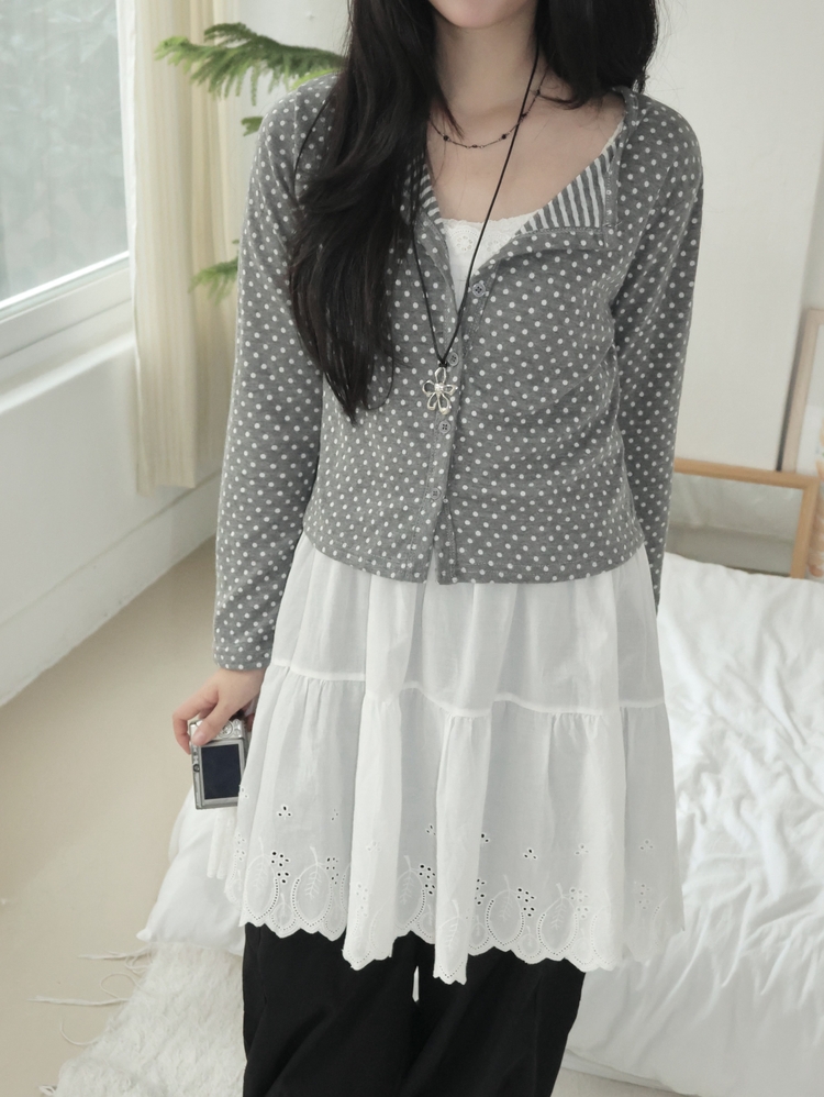 SGD28571 키치 유니크 스트라이프 안감 도트 가디건 봄 가을 빈티지