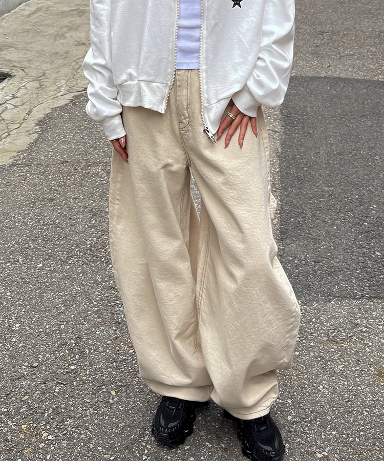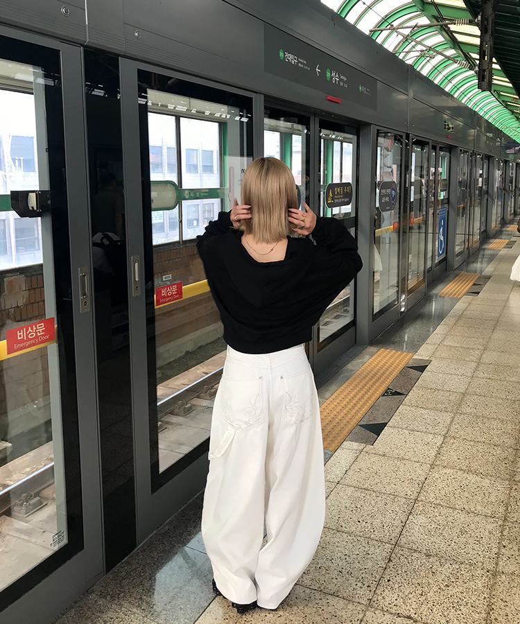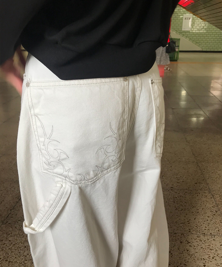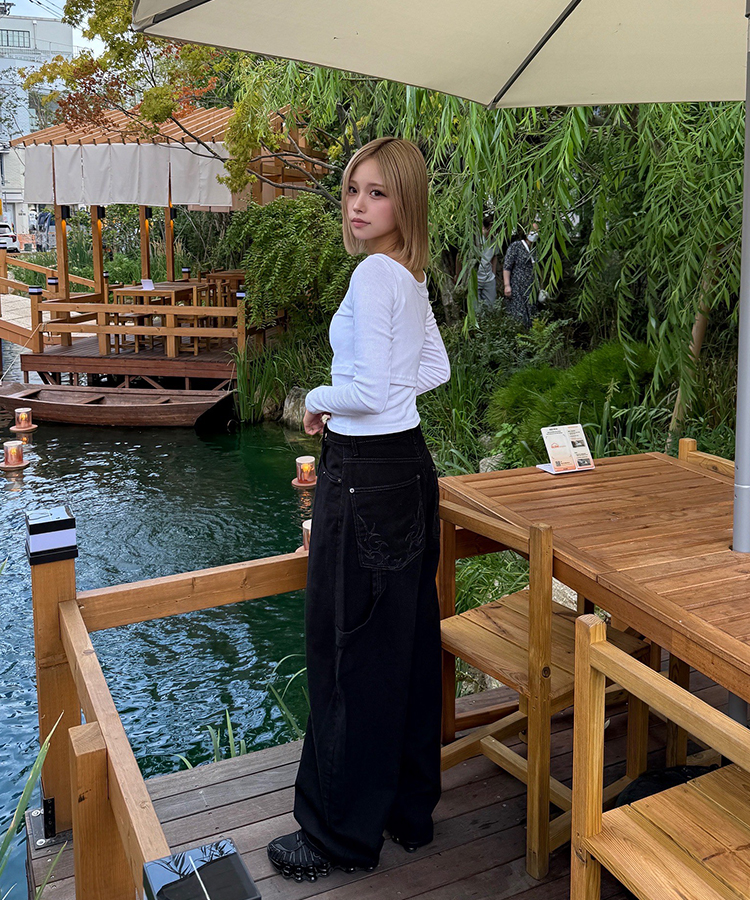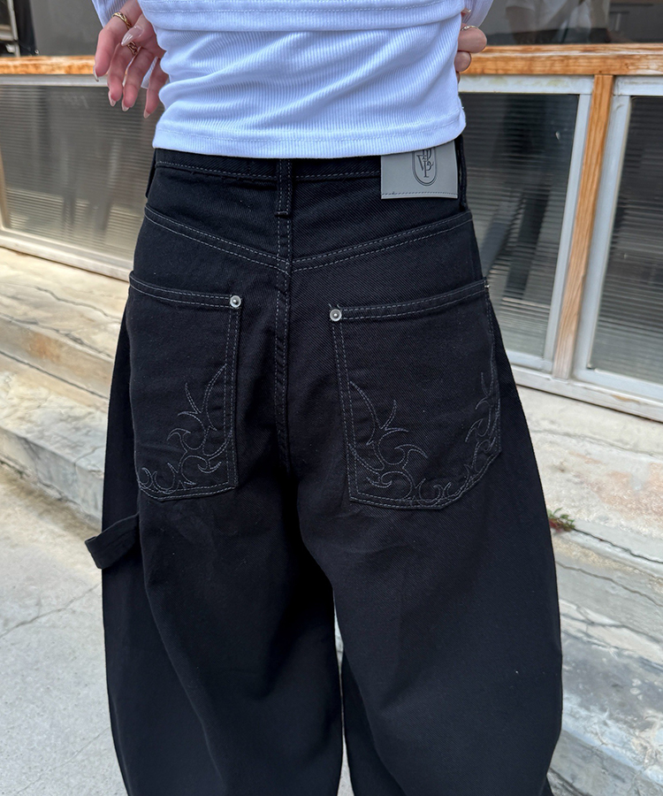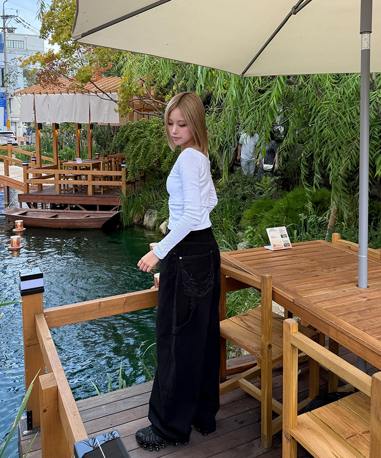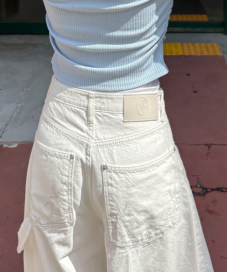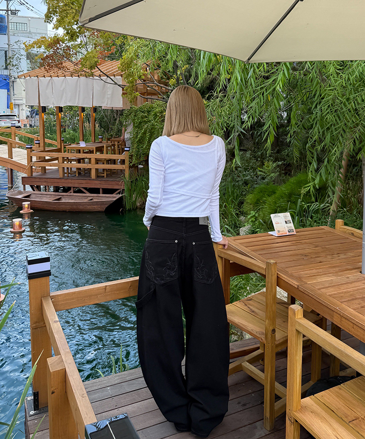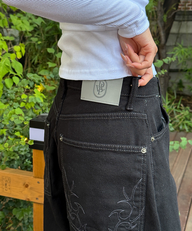 SPS36276 유니크 자수 와이드 코튼 롱팬츠
