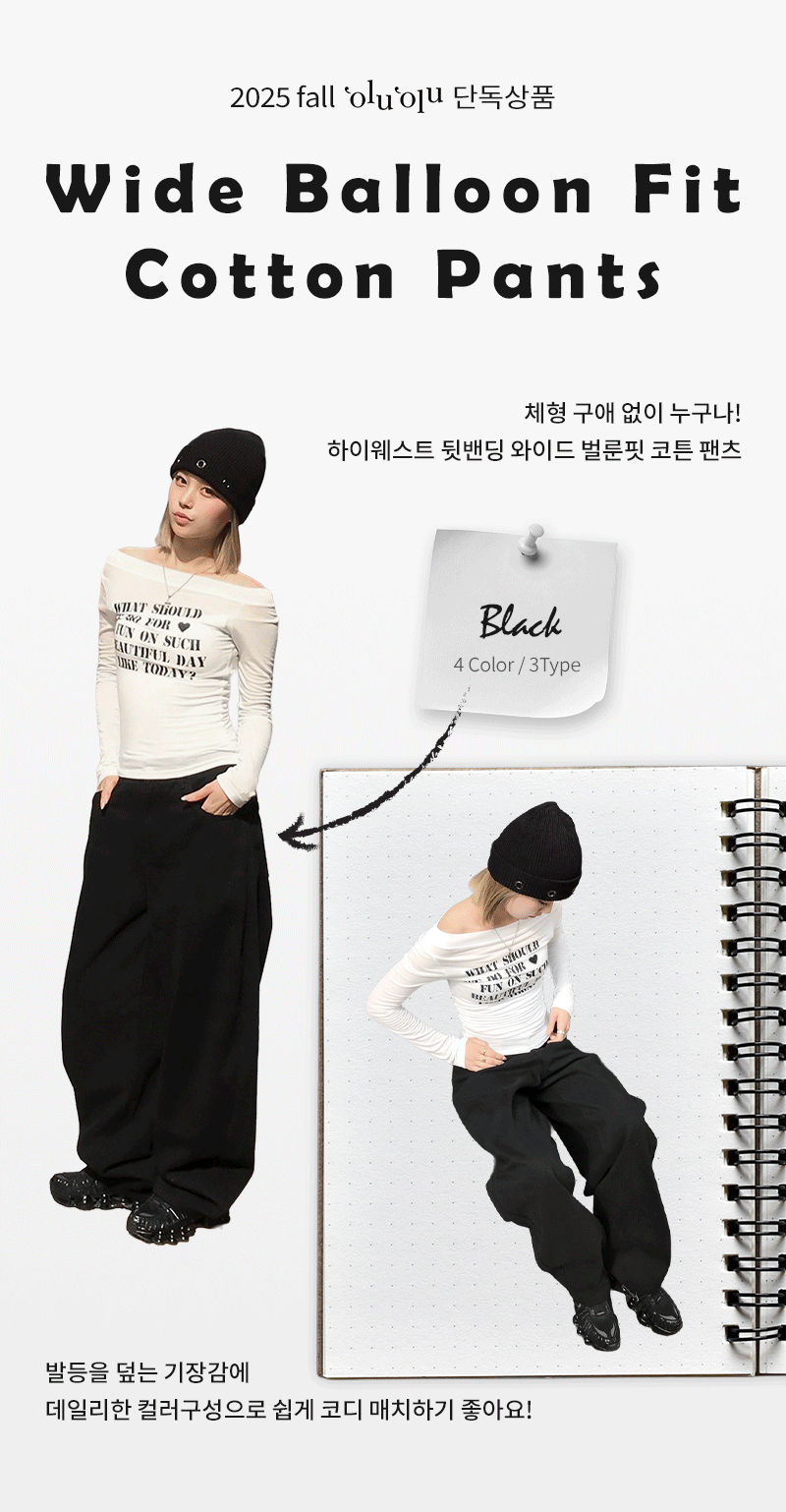 SPS36274 [기장별/~2XL] 절개 와이드 코튼 팬츠(피치기모)