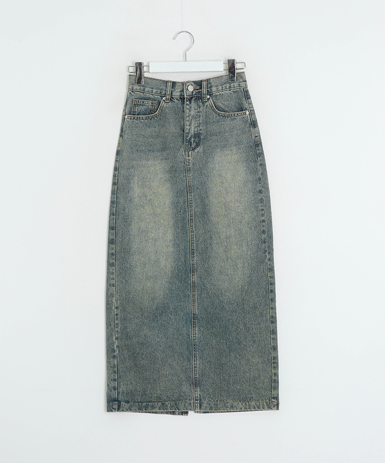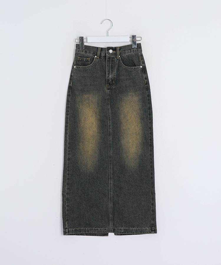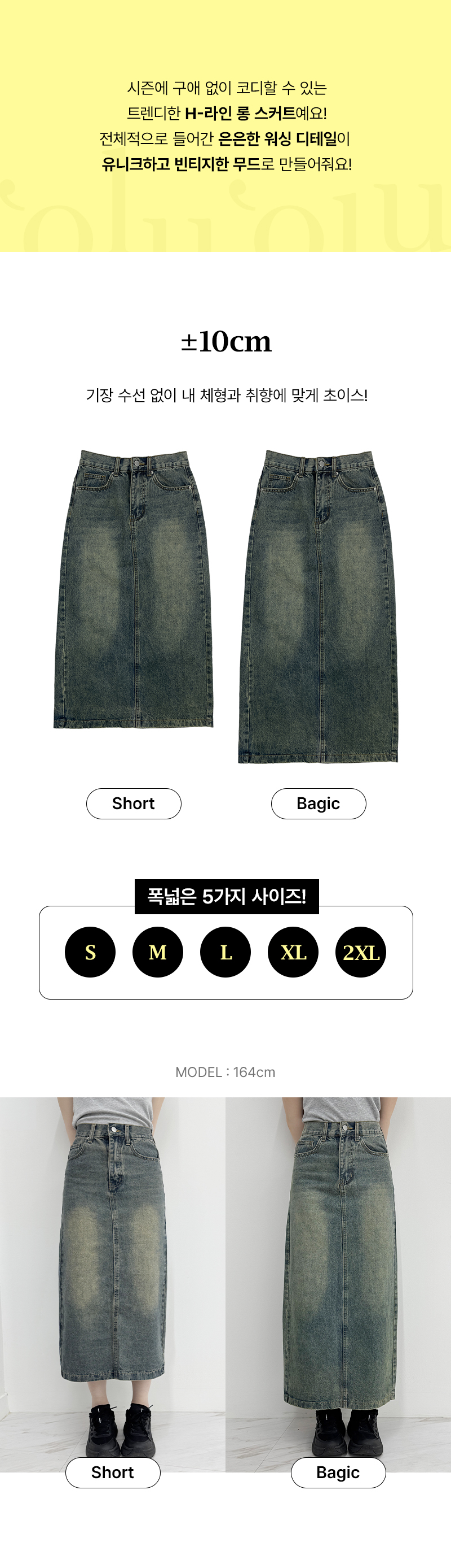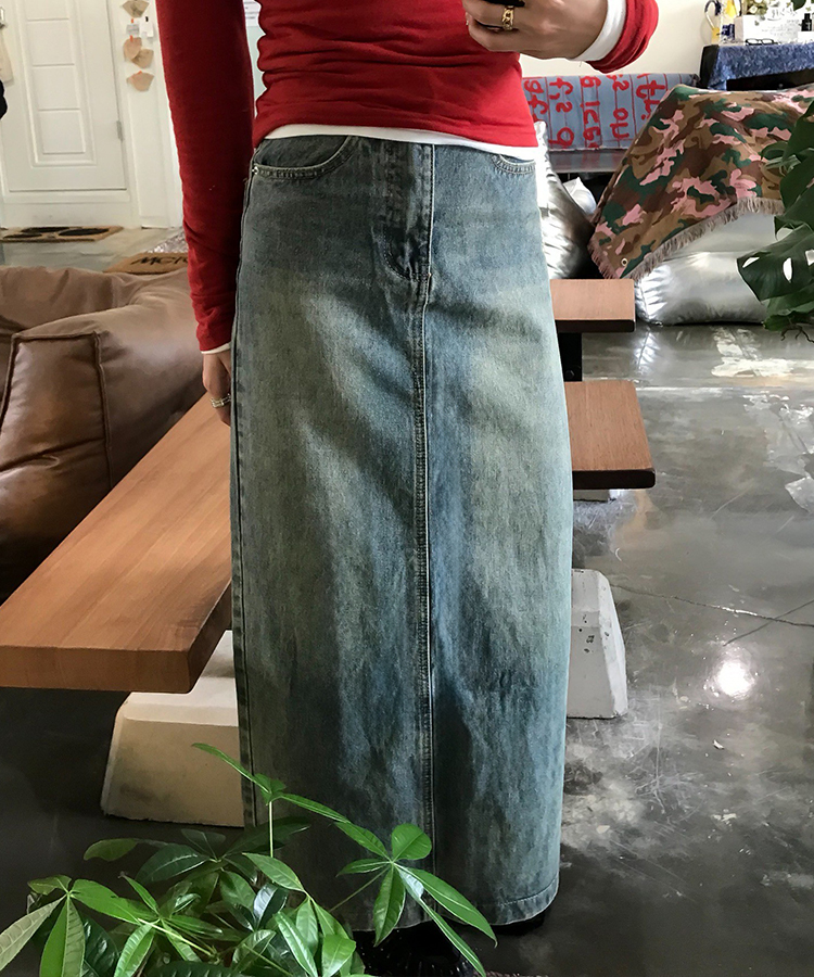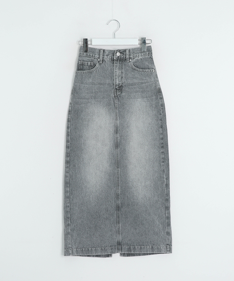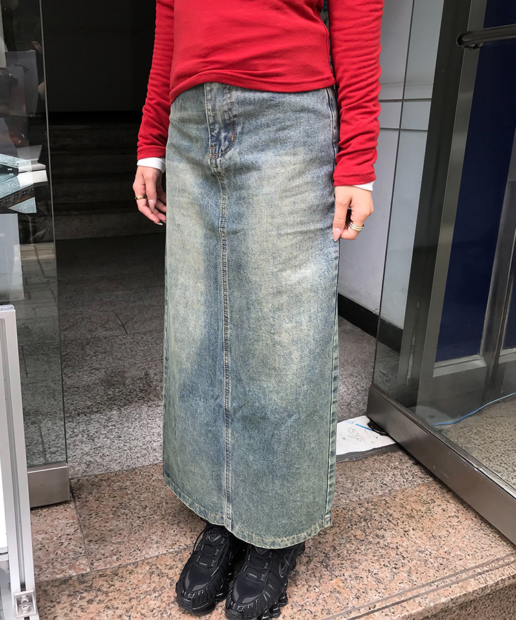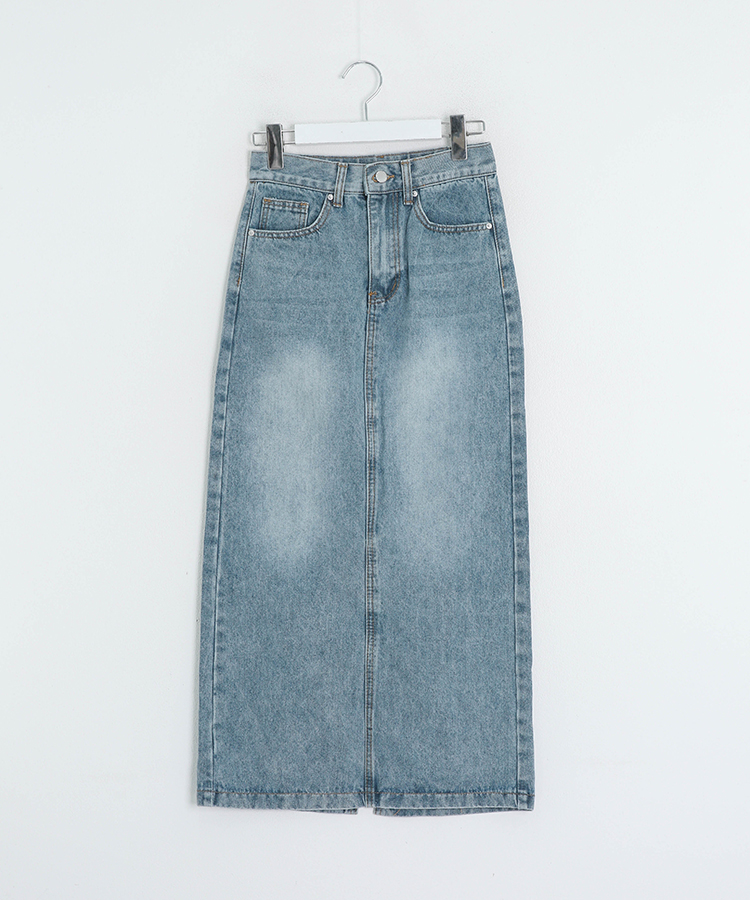 SSK24533 [숏,롱/고퀄] 워싱 뒷밴딩 롱 데님스커트