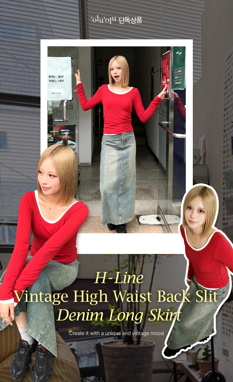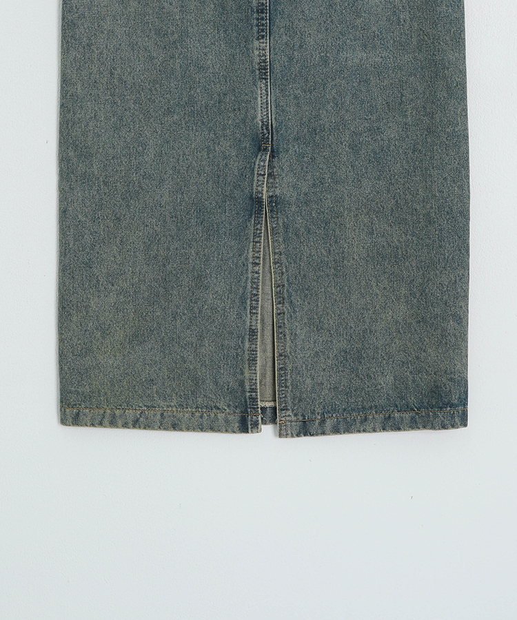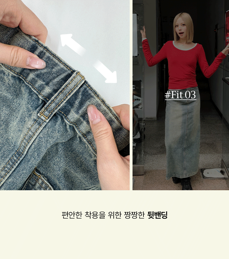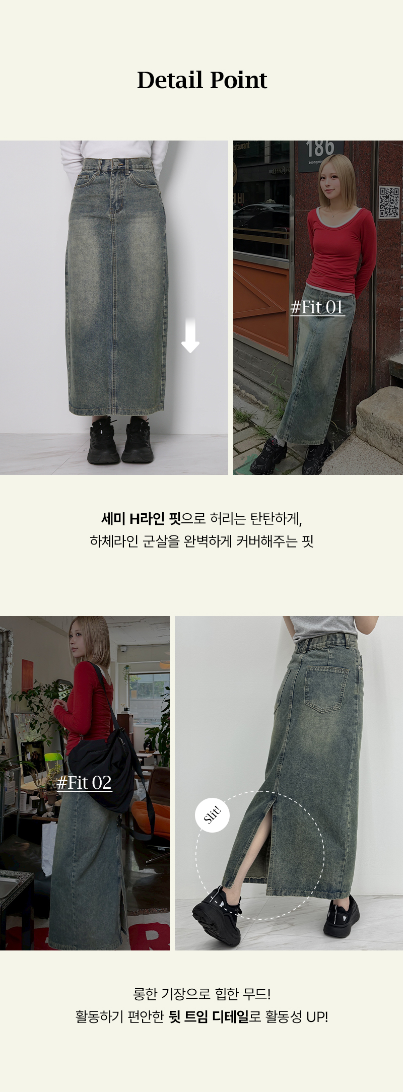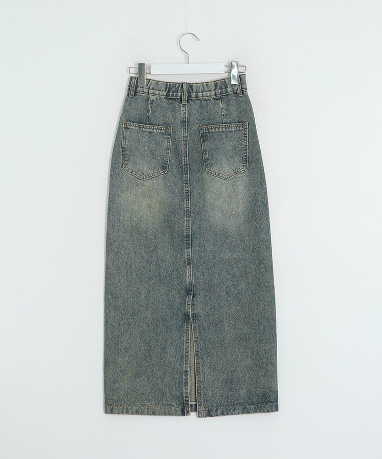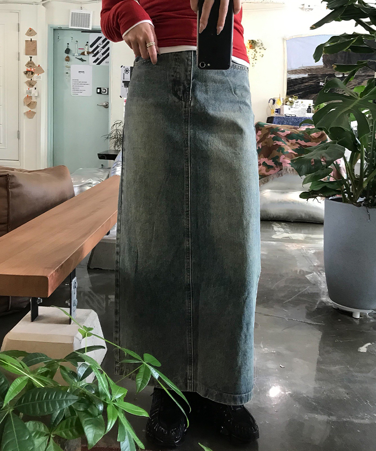 SSK24533 [숏,롱/고퀄] 워싱 뒷밴딩 롱 데님스커트