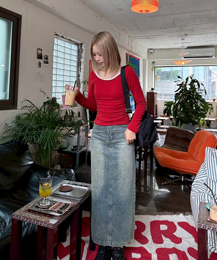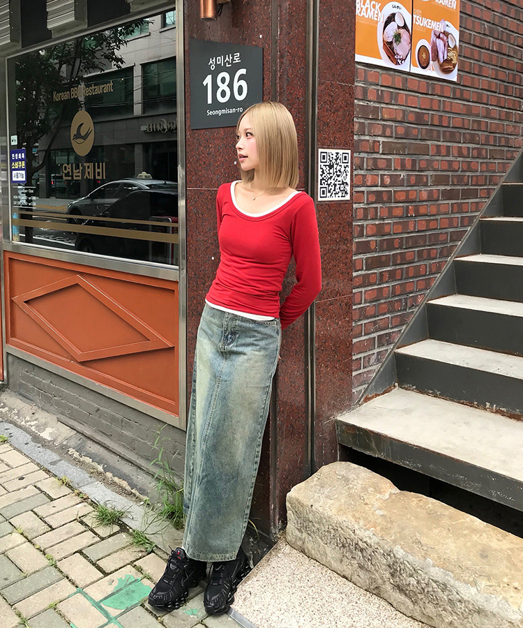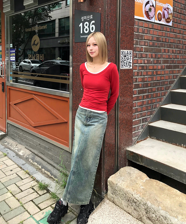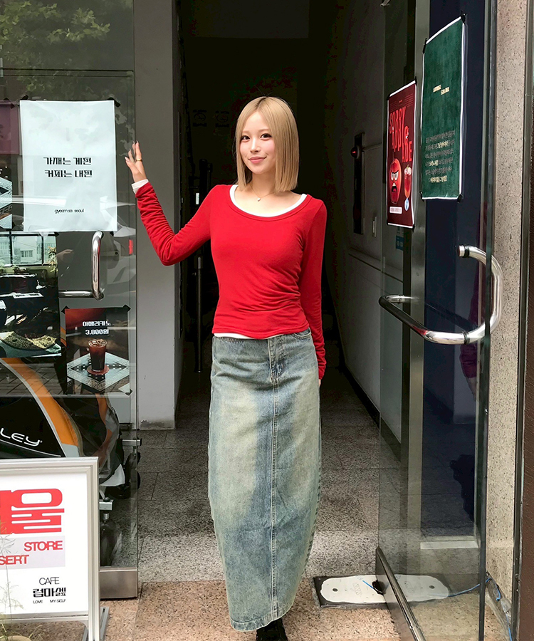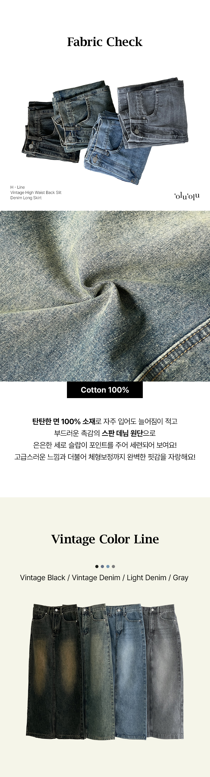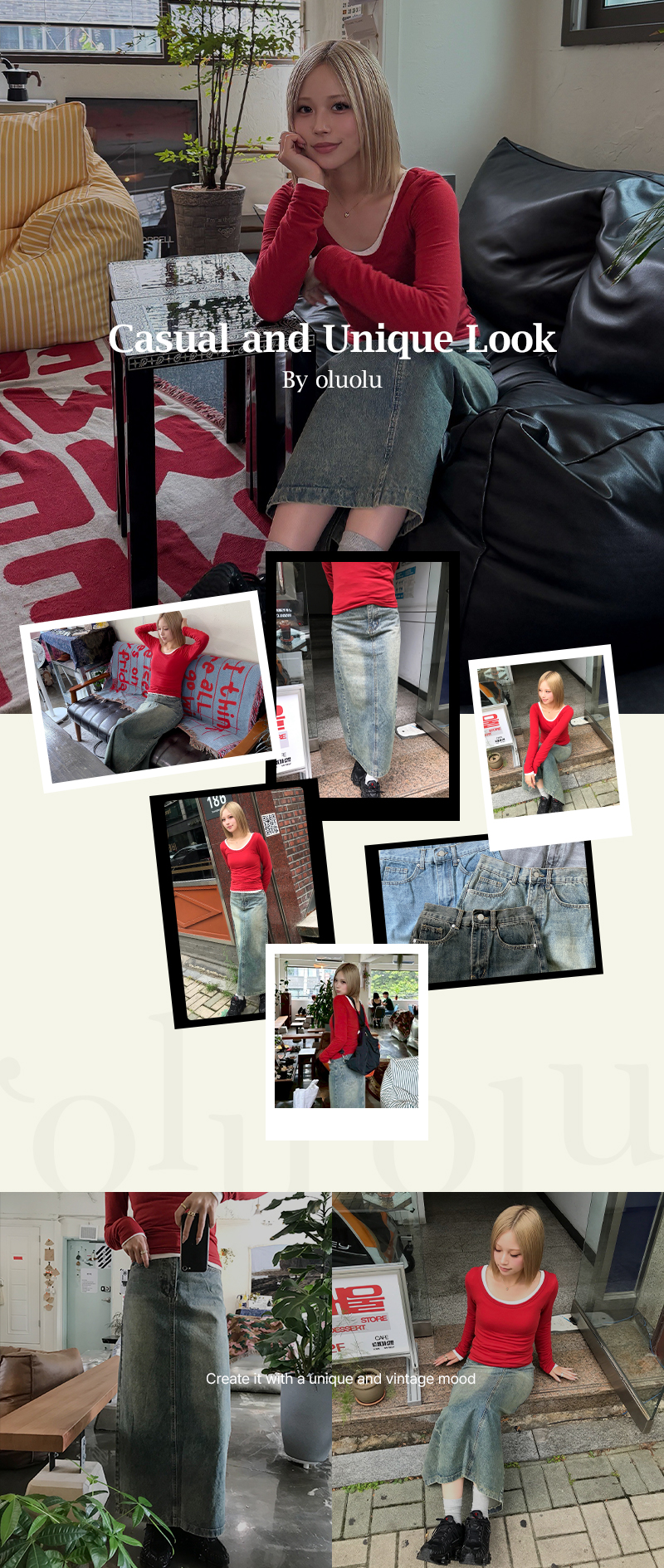 SSK24533 [숏,롱/고퀄] 워싱 뒷밴딩 롱 데님스커트