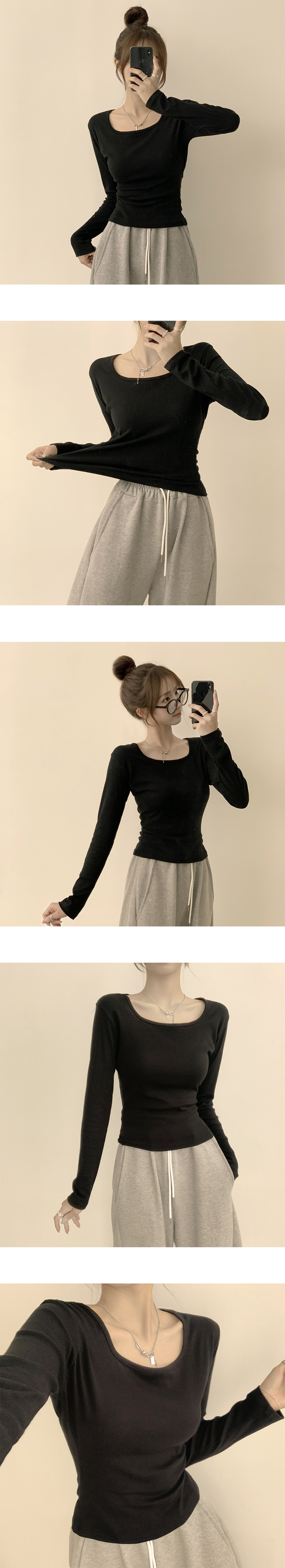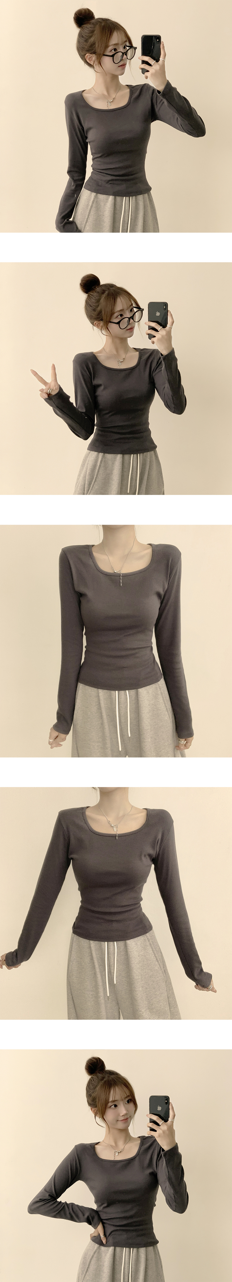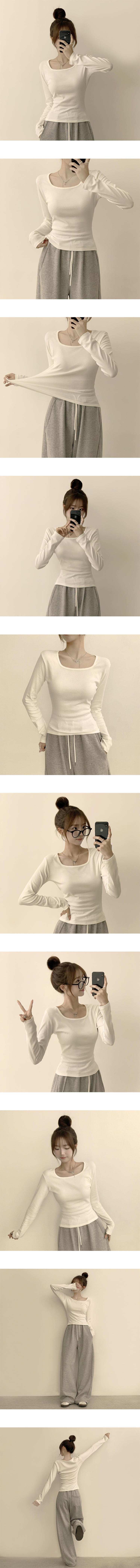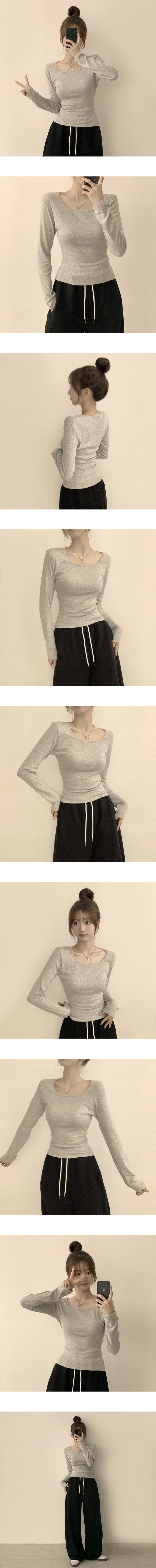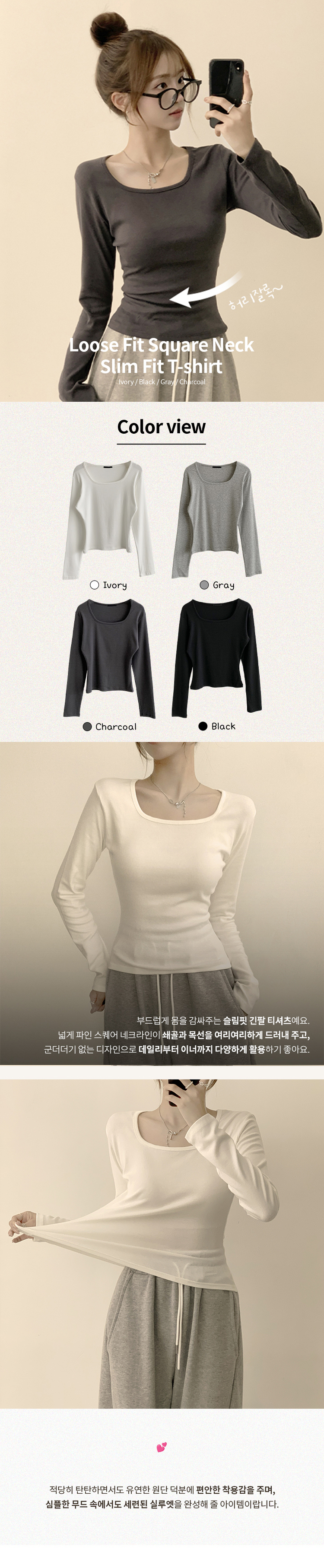 STS71661 쇄골 노출로 여리여리한 무드의 스퀘어넥 여름 가을 데일리 기본 긴팔 티셔츠 면 모달 랍빠 세미 크롭 긴팔티 4color