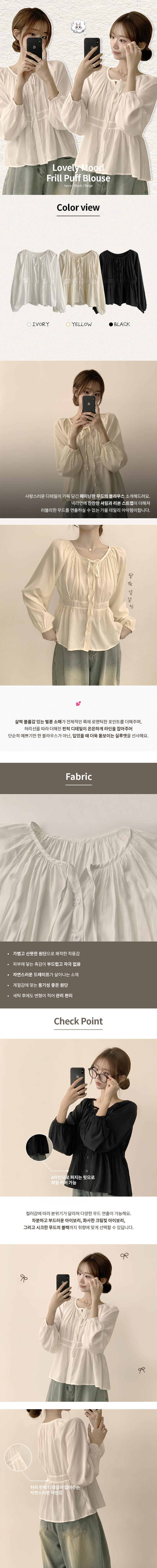 SBS29629 자신있는 추천 실물보장 말라핏 라운드 소매 퍼프 가을 프릴 긴팔 블라우스 루즈핏 여름 상의 하객룩 3color