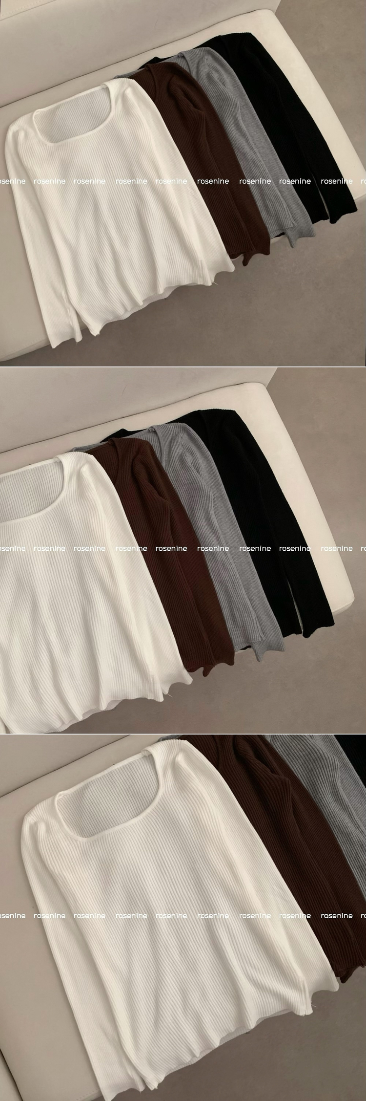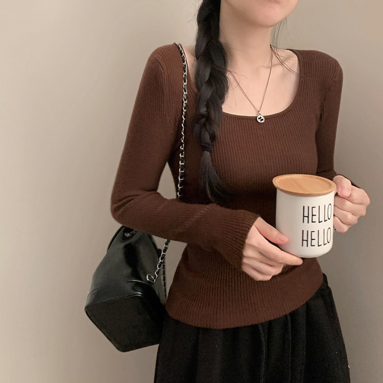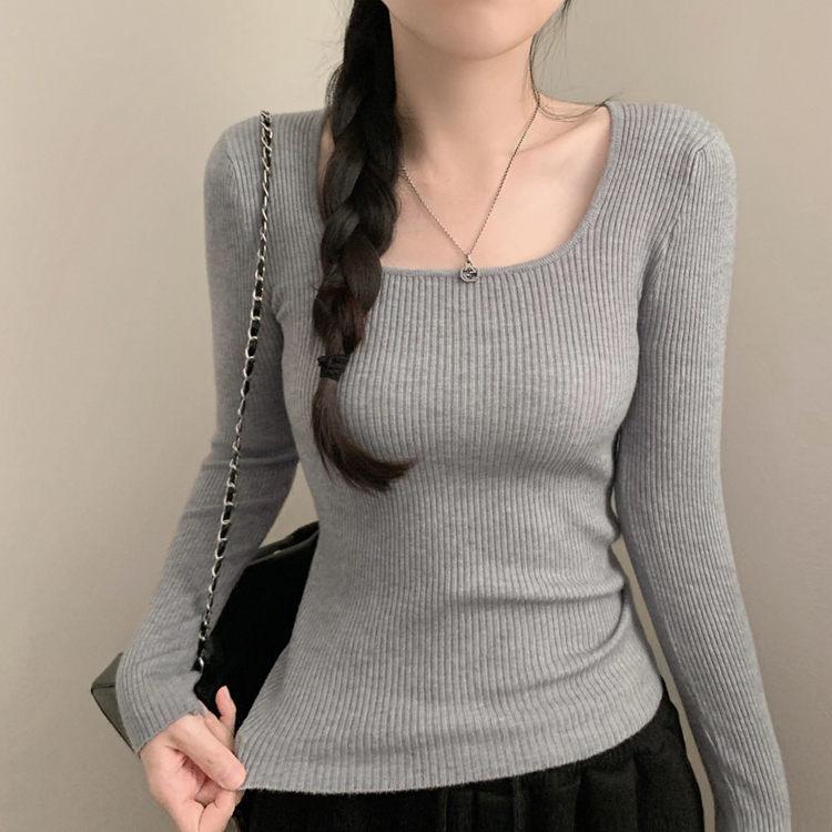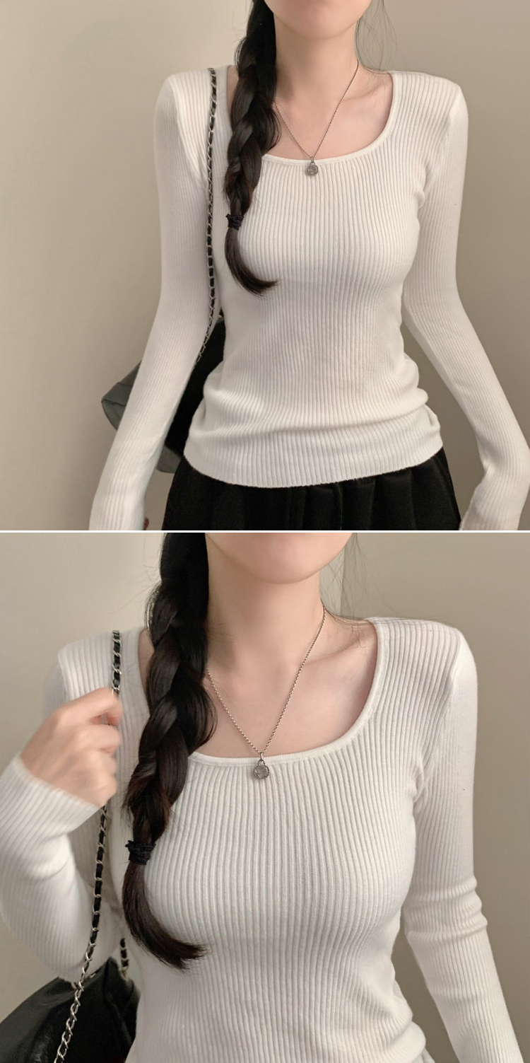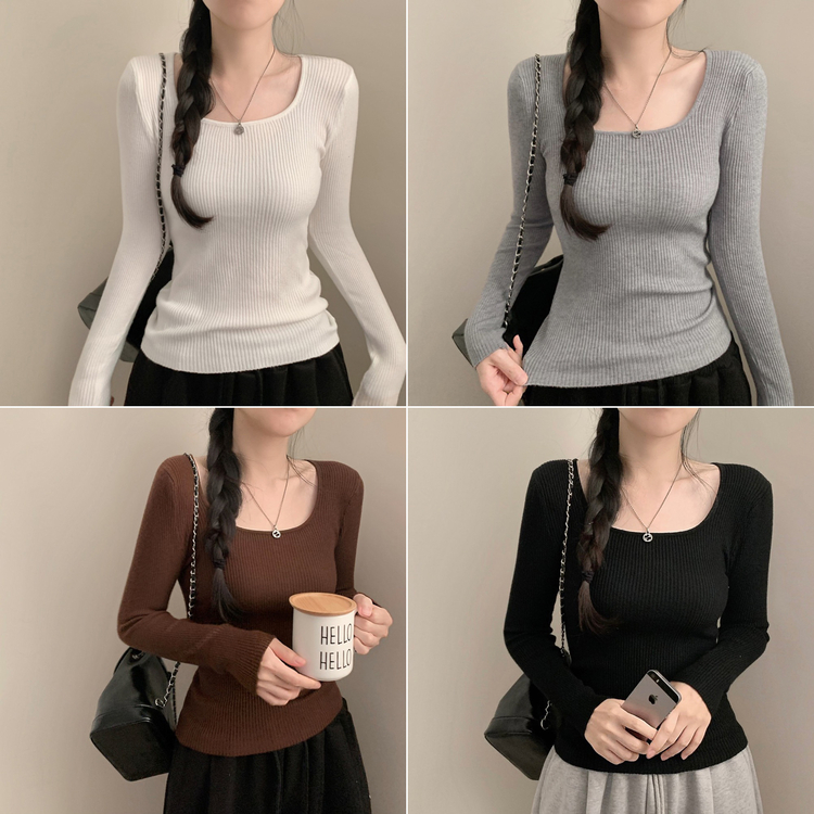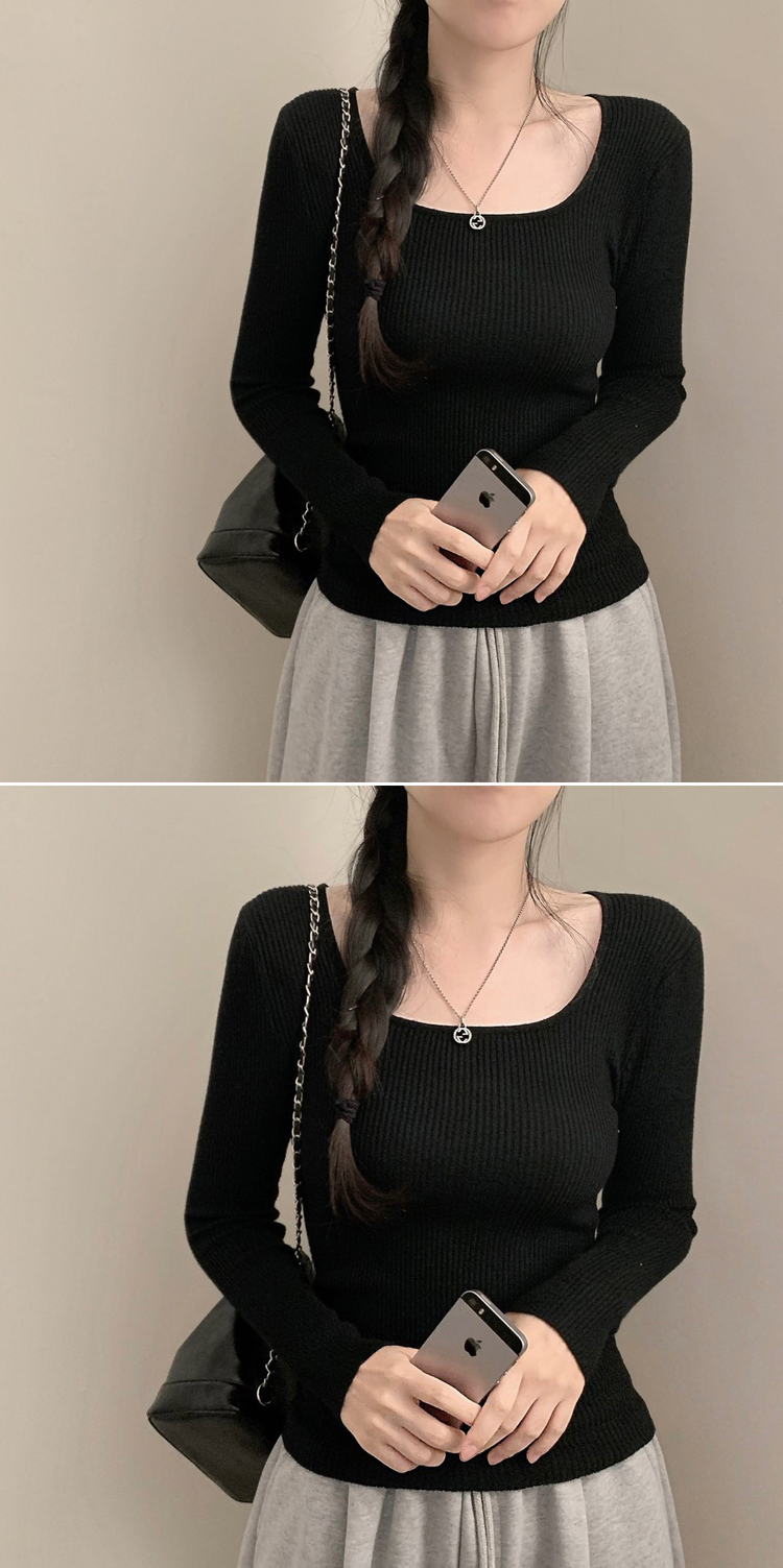 SNT32039 보보 골지 스퀘어넥 긴팔 니트 가을 가을옷 니트티 이너니트 이너티 흰티 레이어드 롱슬리브