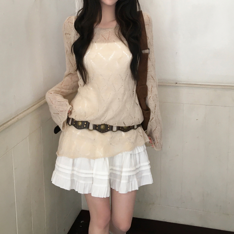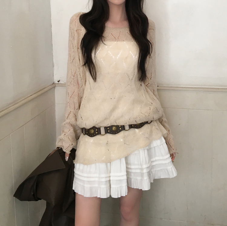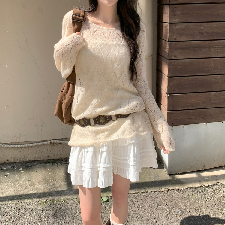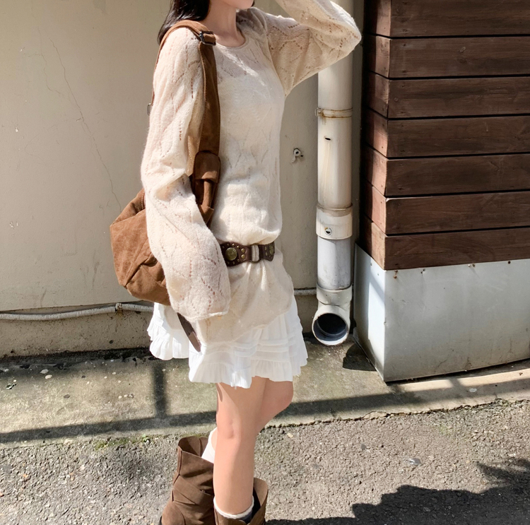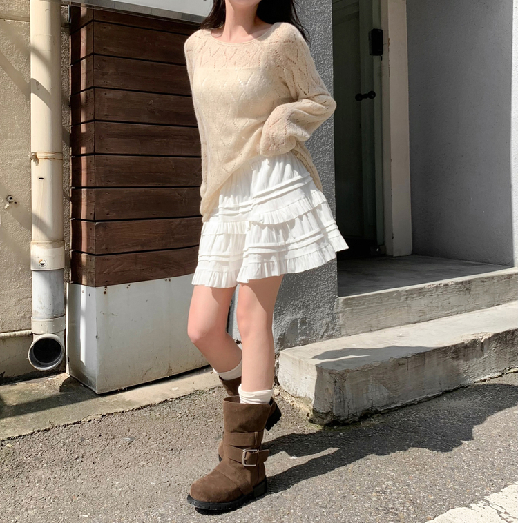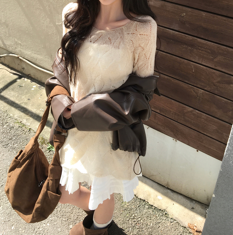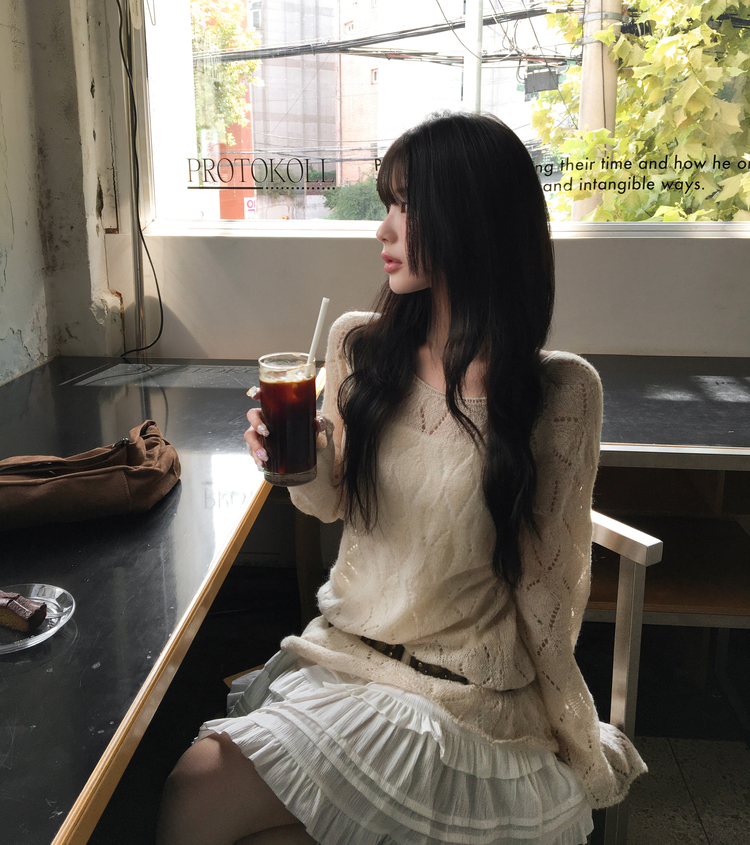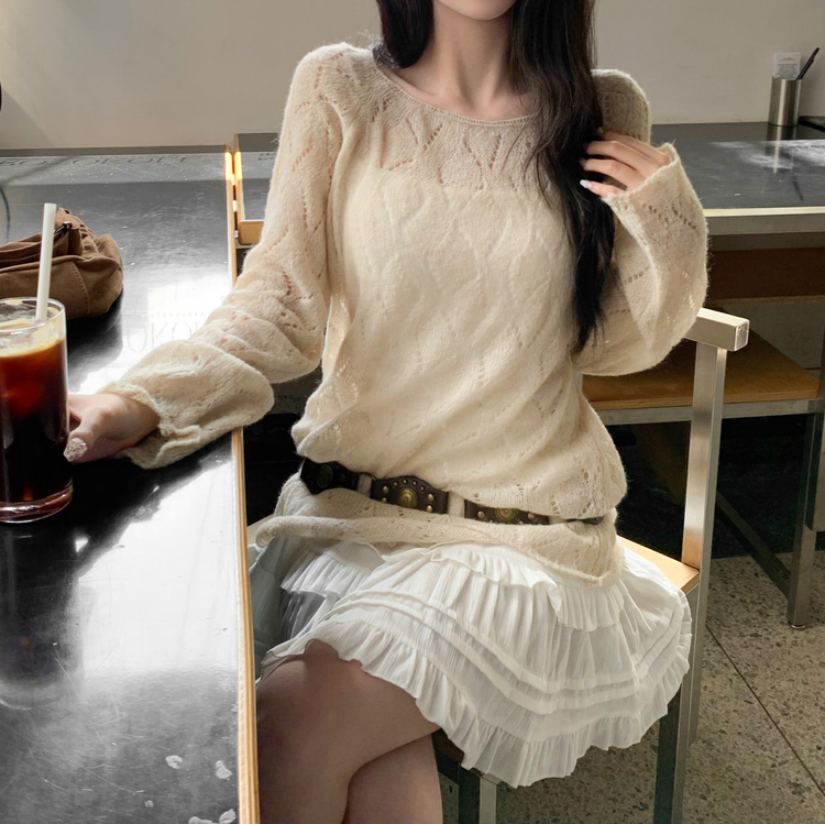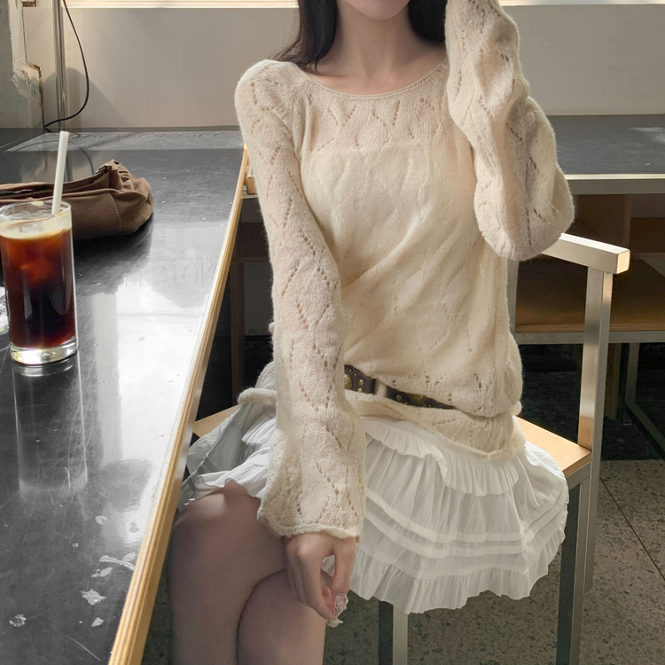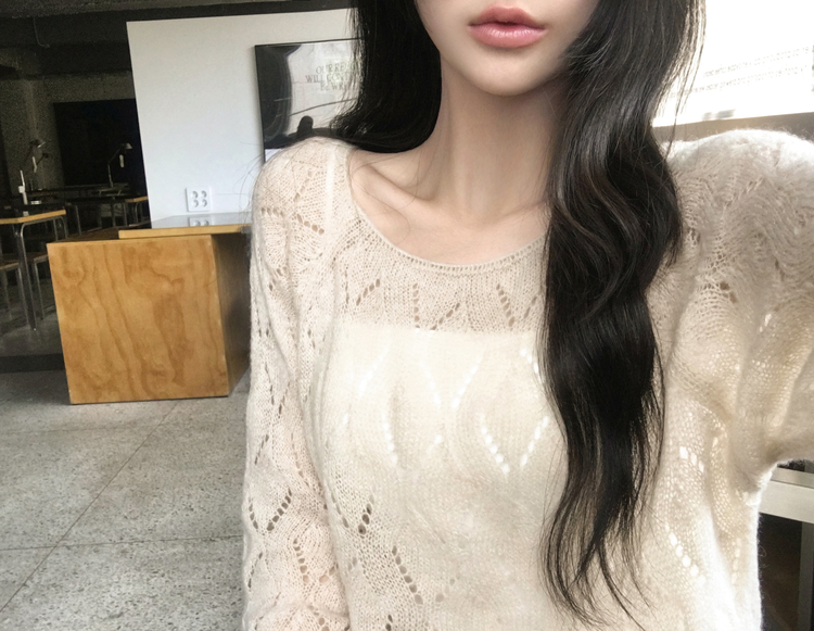 SNT32045 모리 입술넥 시스루 울 여리 긴팔 니트