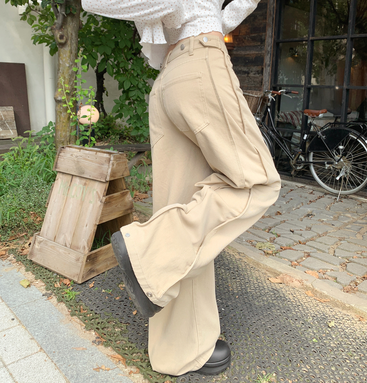 SPS36340 메티 허리 스냅비조 절개 밑단조절 조거 와이드 팬츠