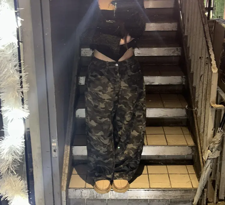 SPS36374 모튼 카모 사이드핀턱 밀리터리 롱 와이드팬츠