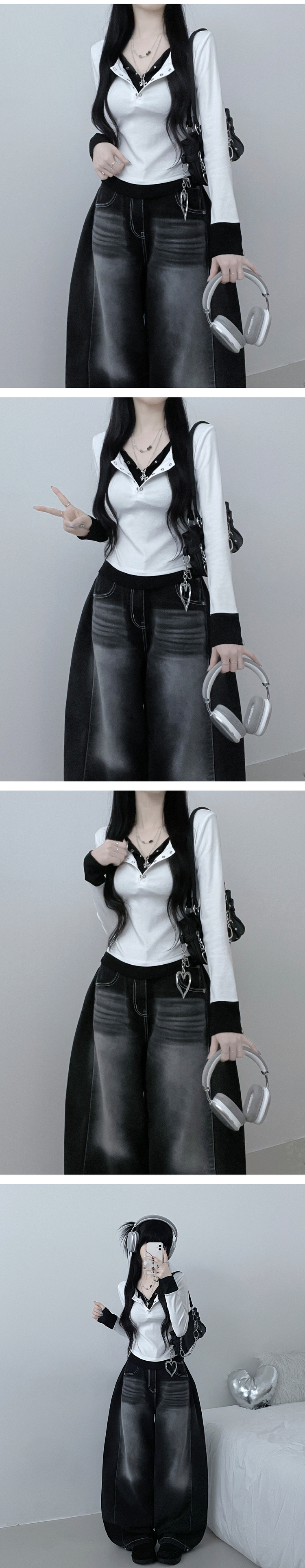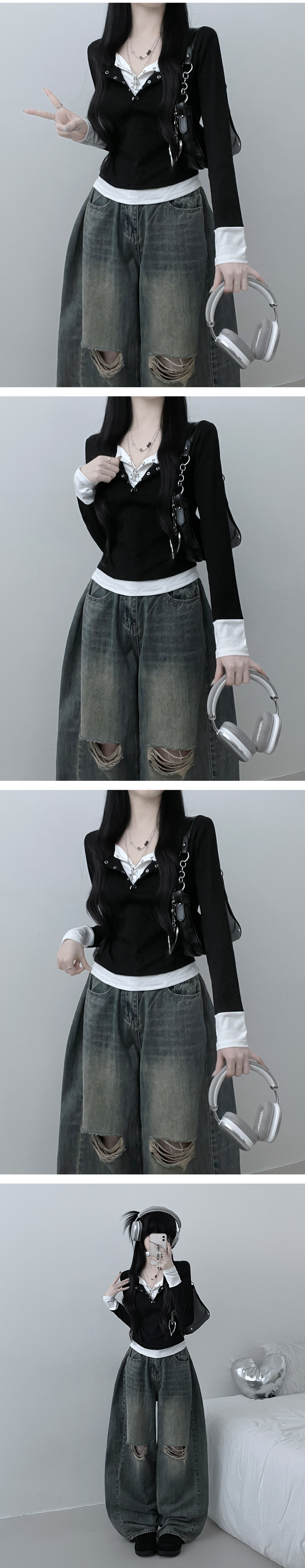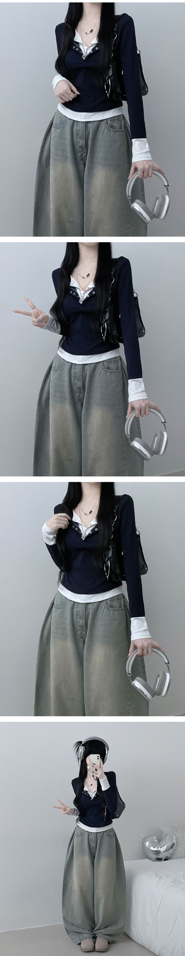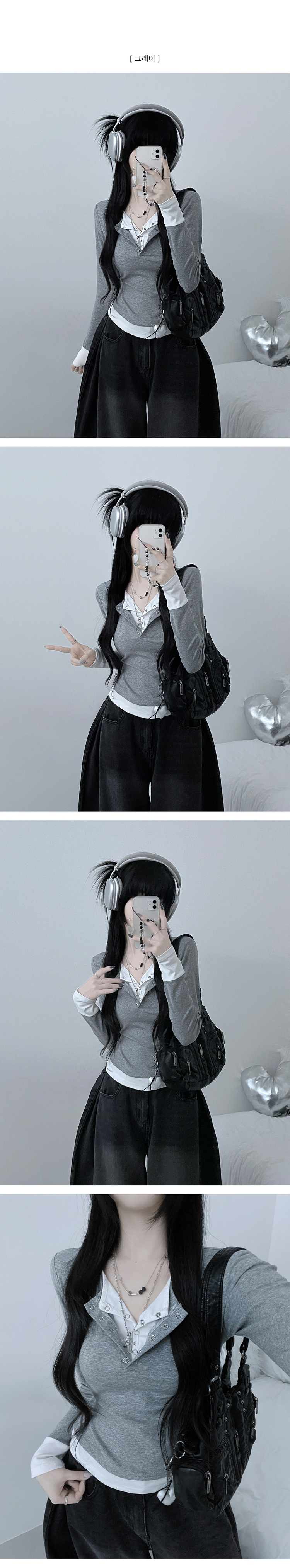 STS71823 키쉬더블버튼또또배색레이어드긴팔티셔츠