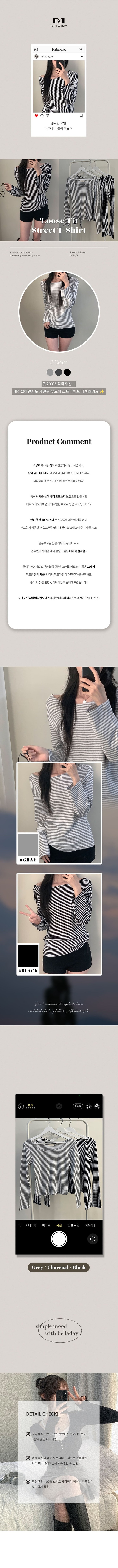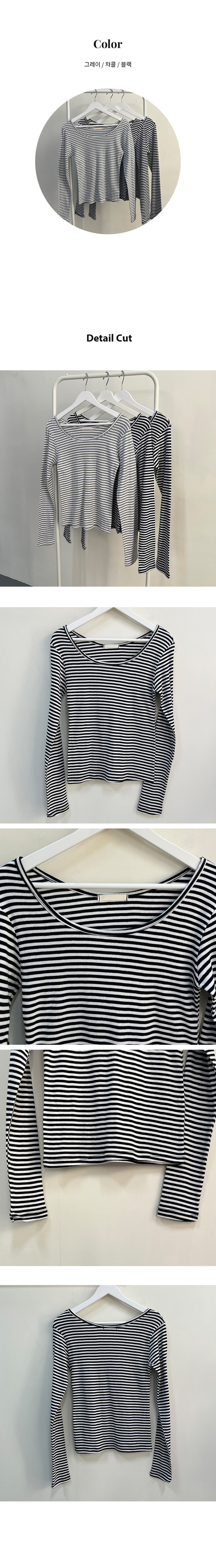 STS71830 붙지 않는 레귤러핏 스탠다드 와이드넥 단가라 스트라이프 간절기 봄가을 긴팔티셔츠 t 3color