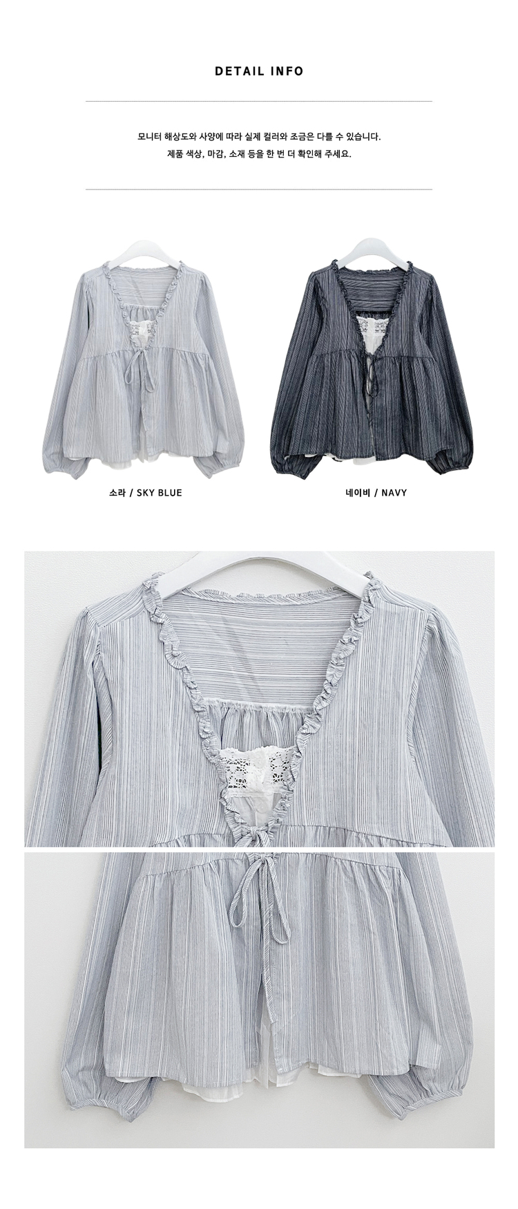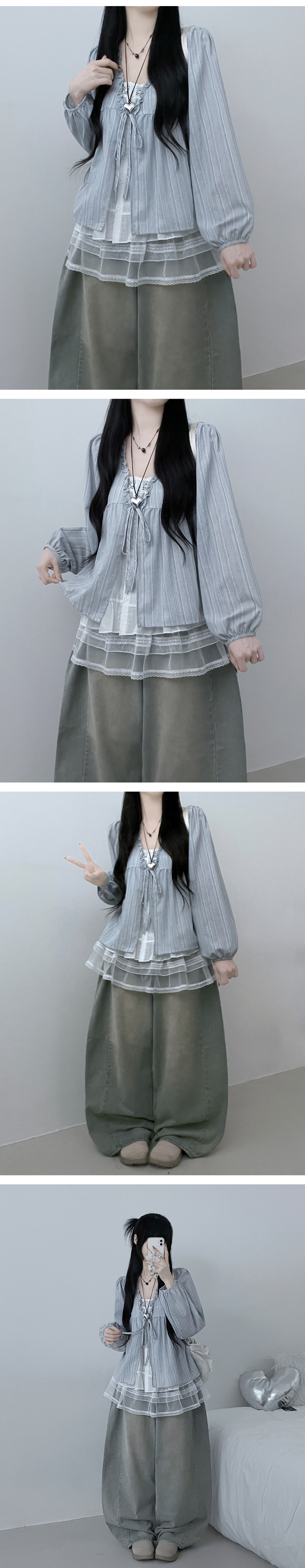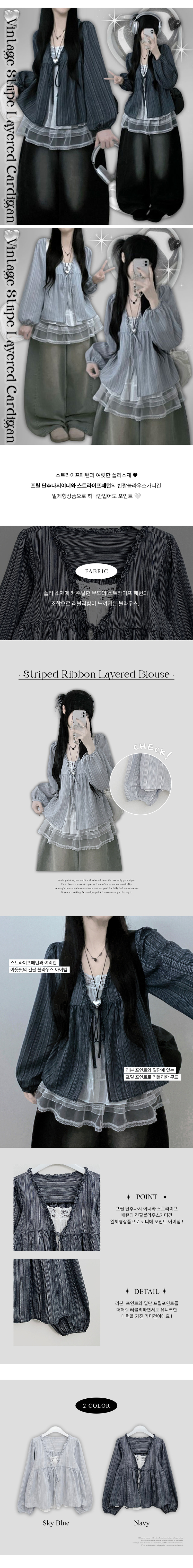 SBS29702 시호스트라이프리본프릴레이어드긴팔블라우스세트