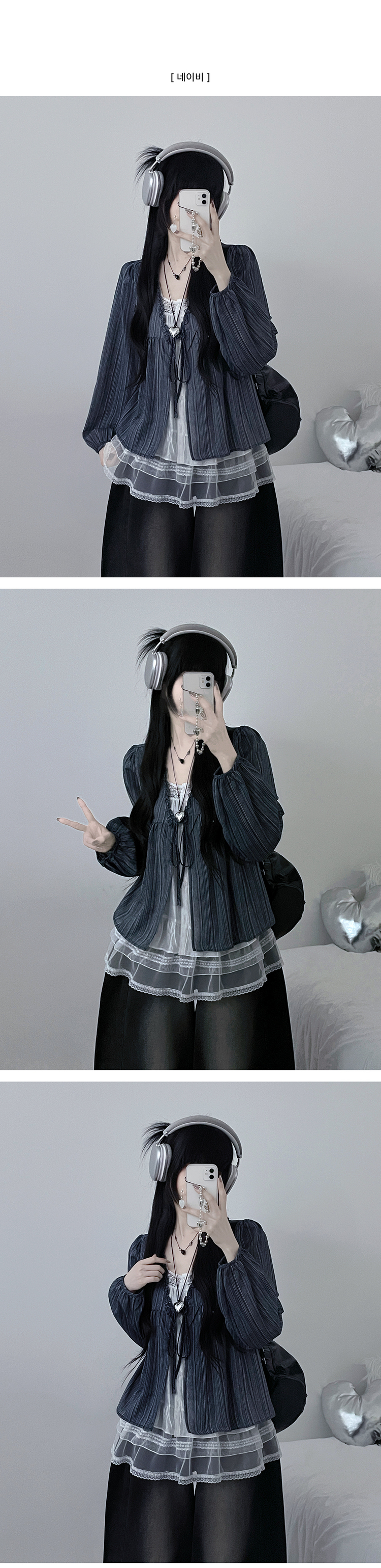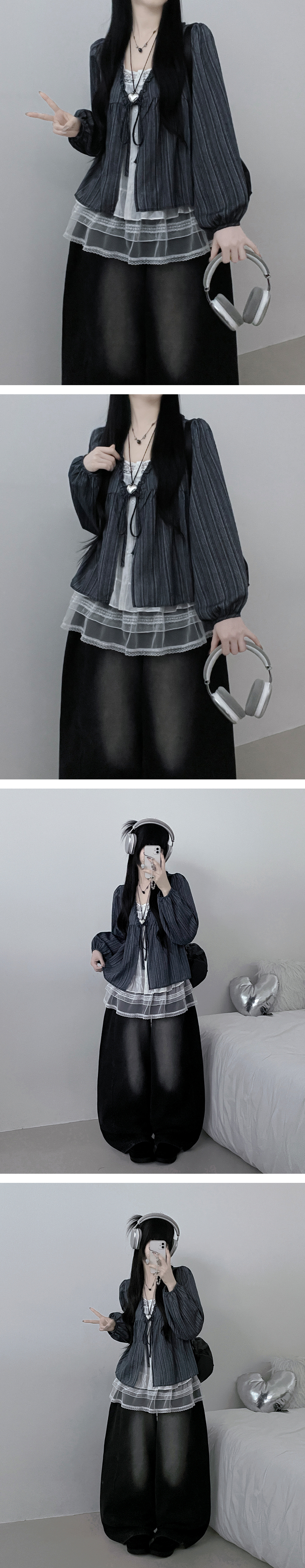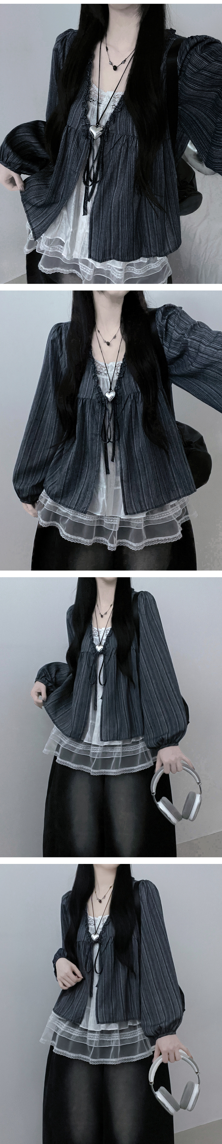 SBS29702 시호스트라이프리본프릴레이어드긴팔블라우스세트