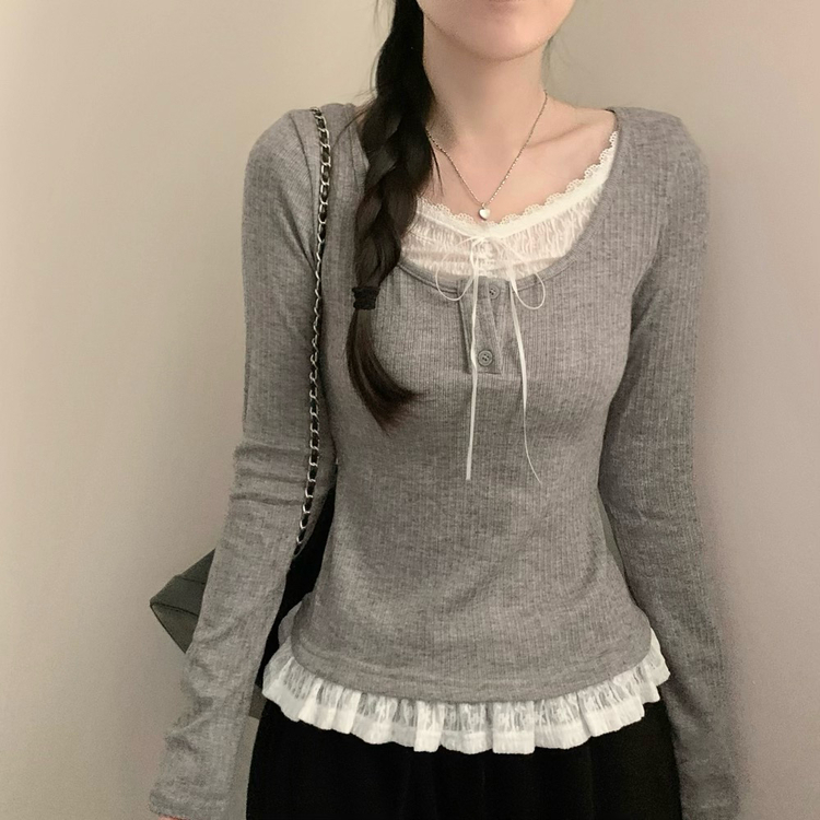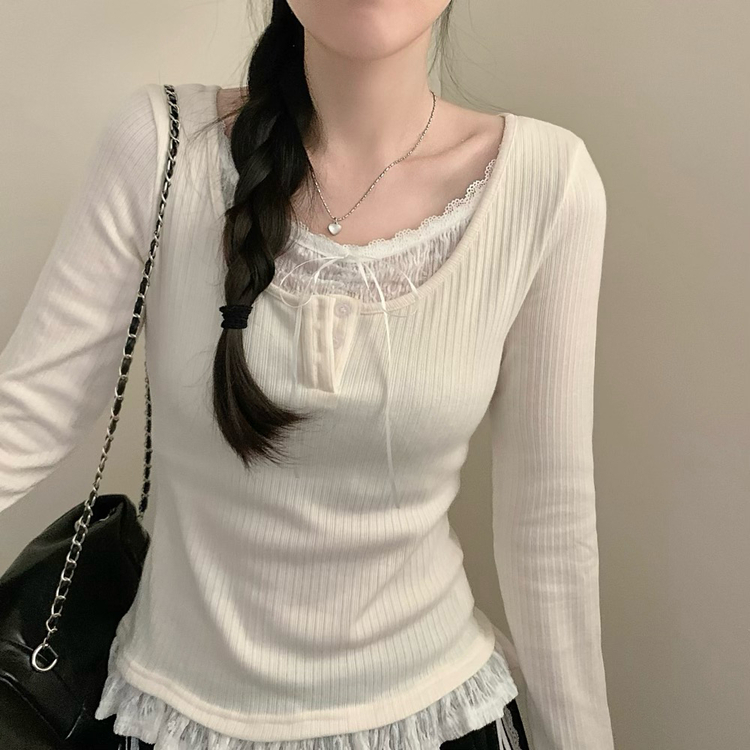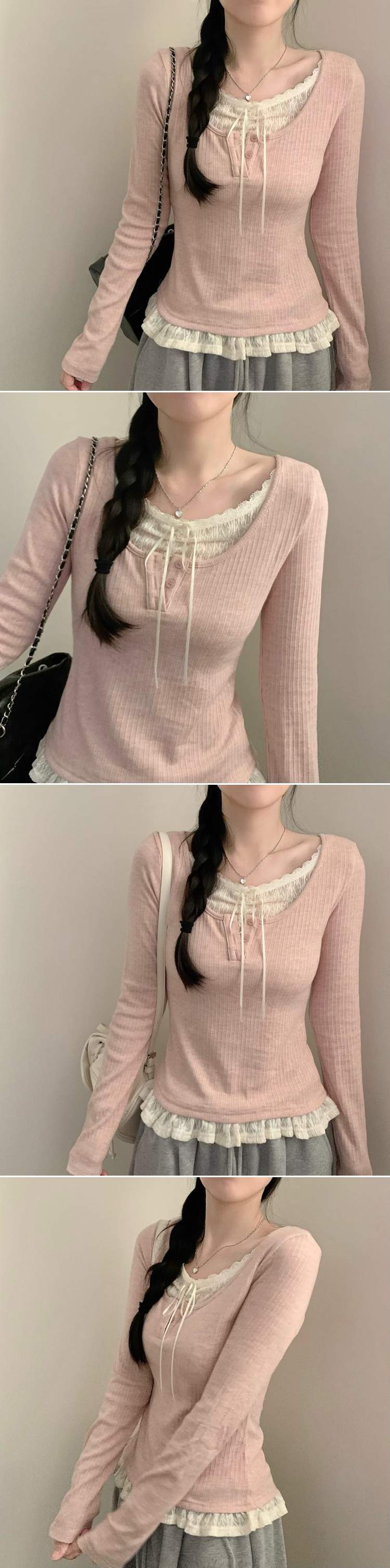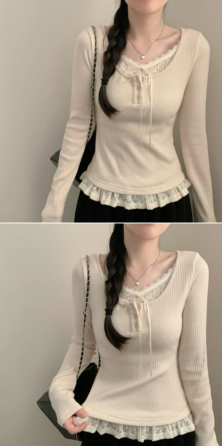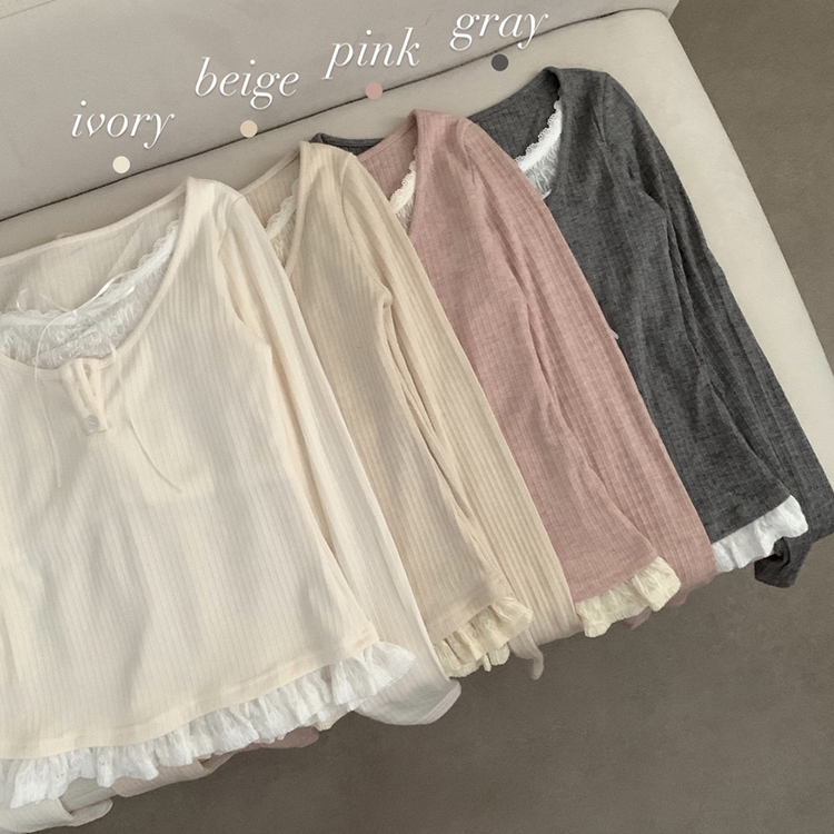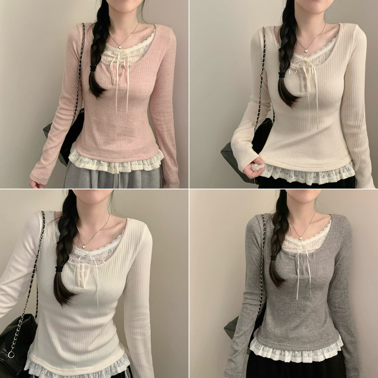 SNT32081 레이스 레이어드 리본 긴팔 골지 니트 이너티 이너니트