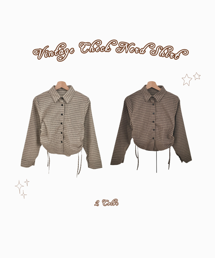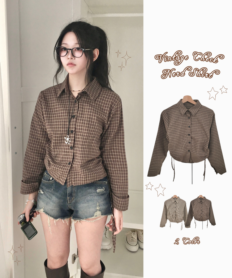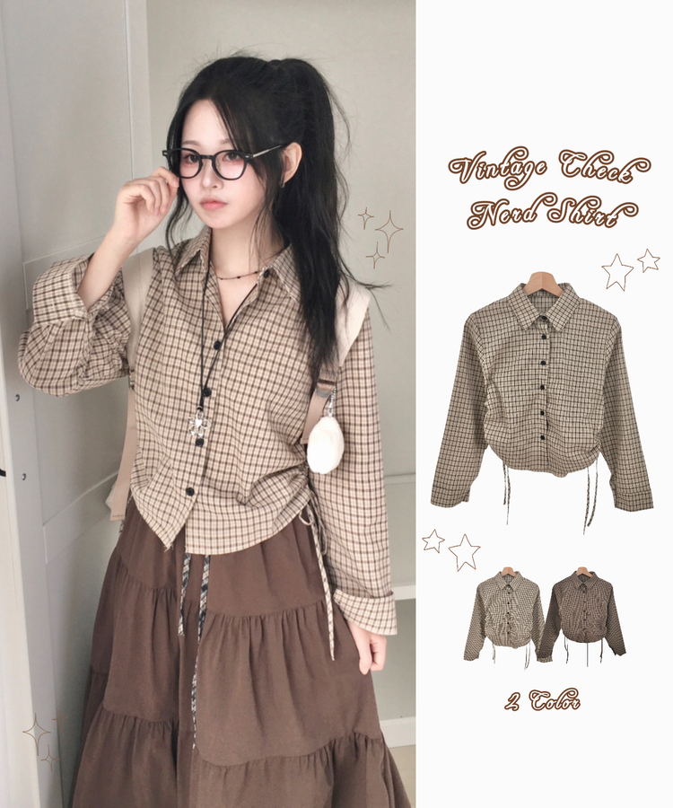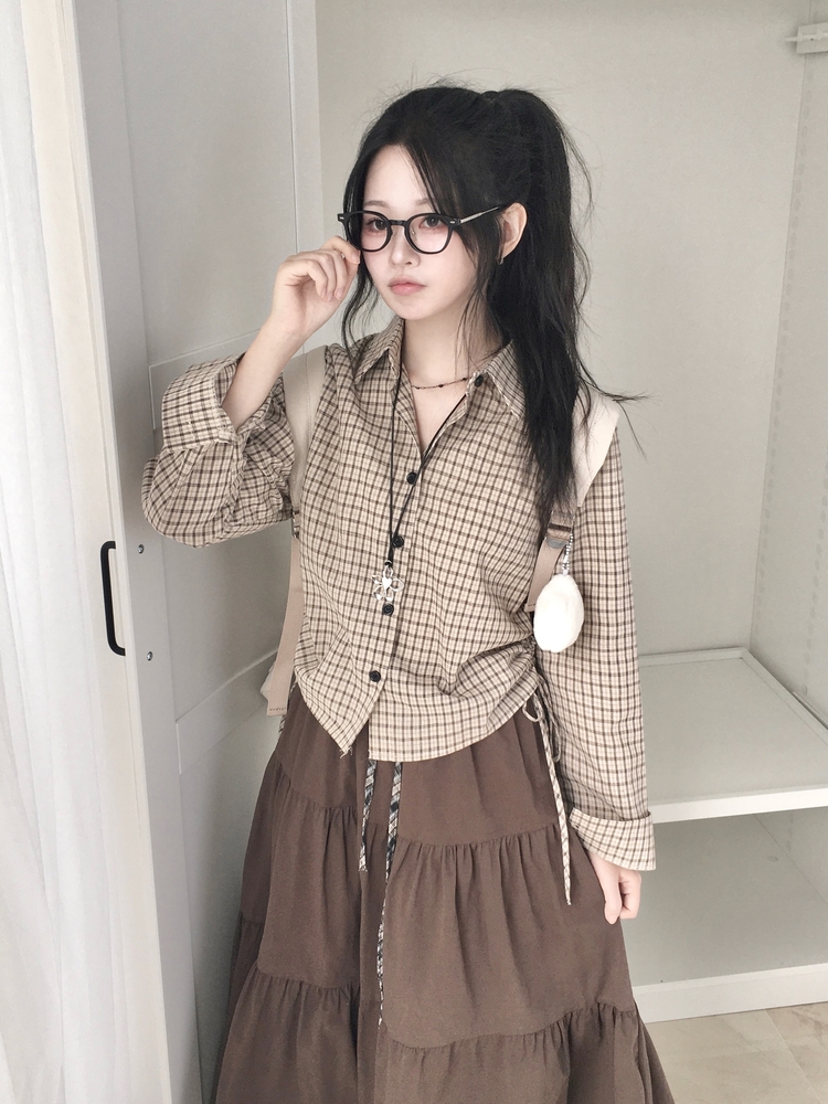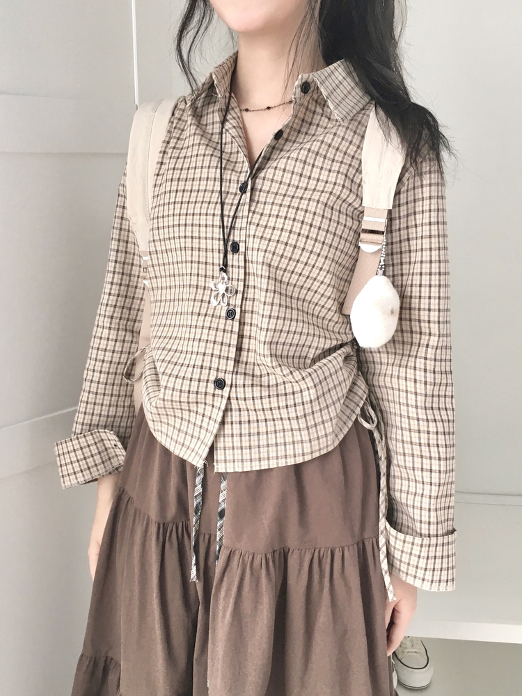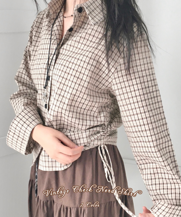 SBS29753 너드 빈티지 5kg 옆셔링 허리 사이드 리본 긴팔 체크셔츠 남방