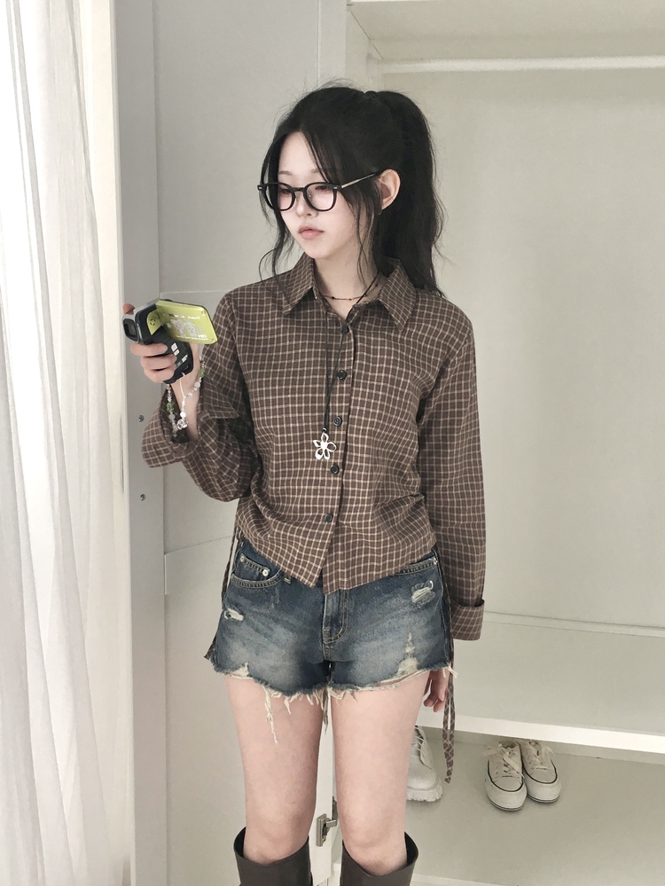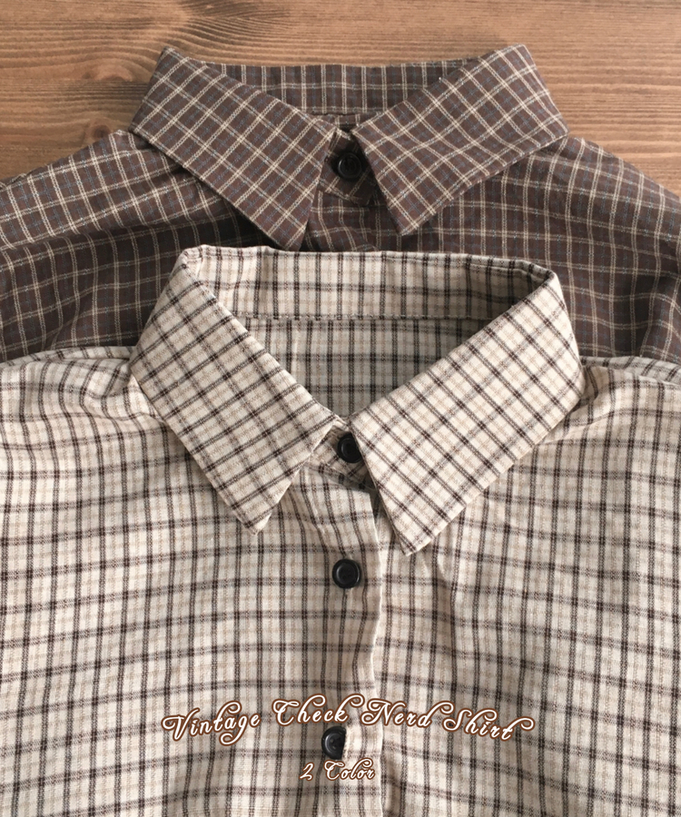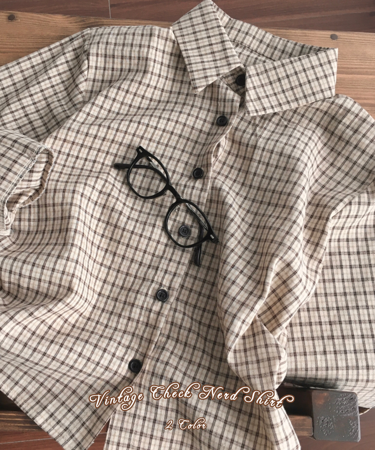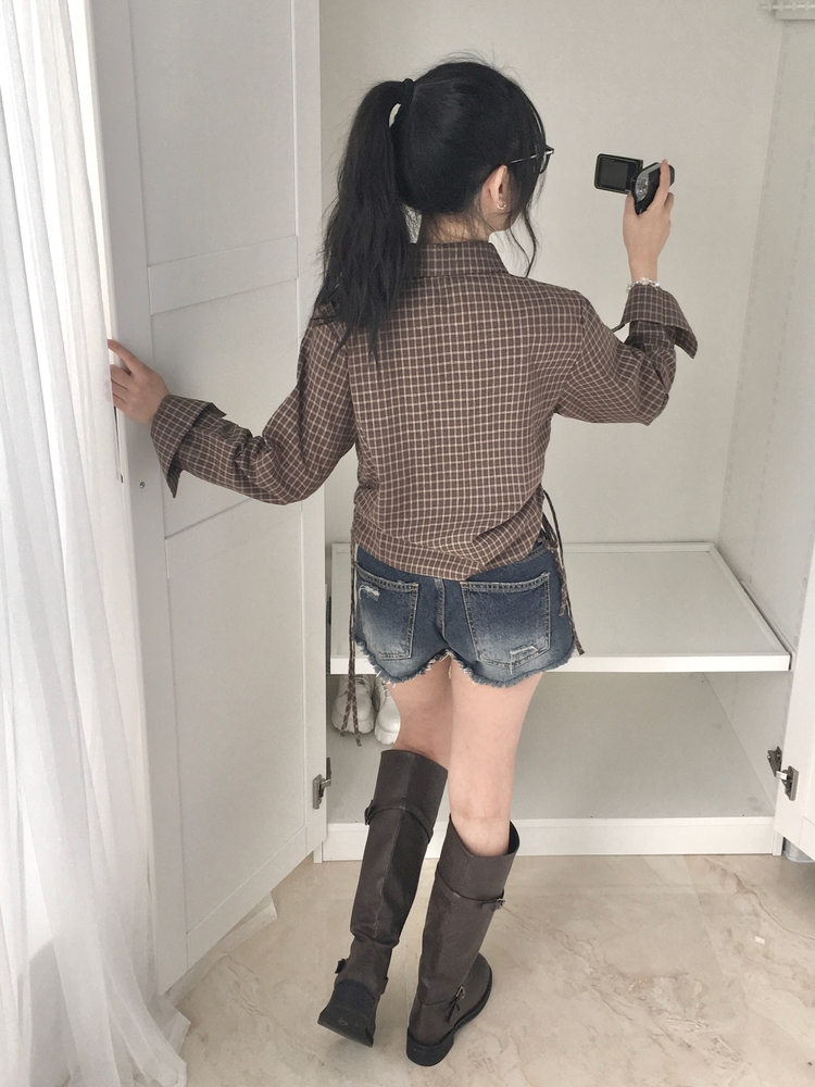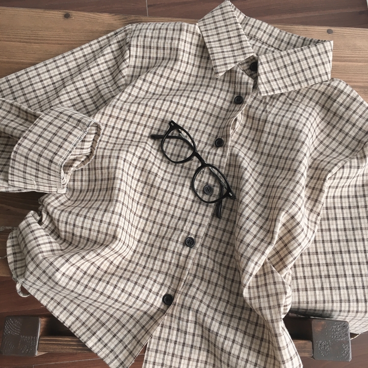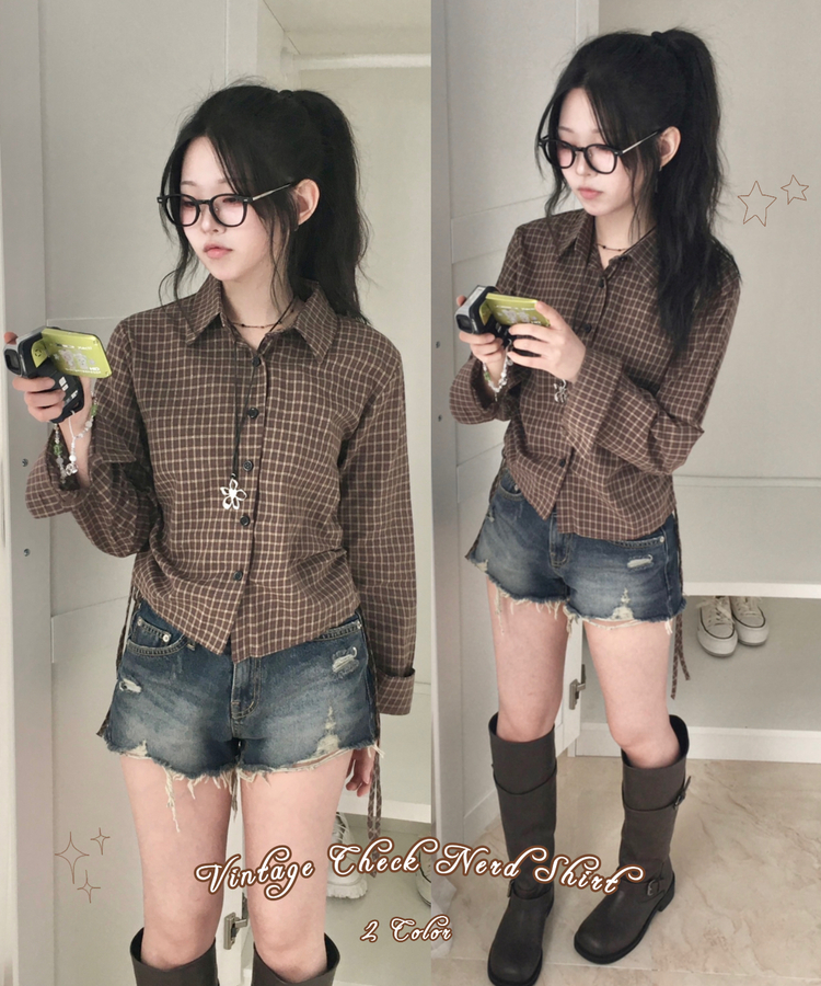SBS29753 너드 빈티지 5kg 옆셔링 허리 사이드 리본 긴팔 체크셔츠 남방