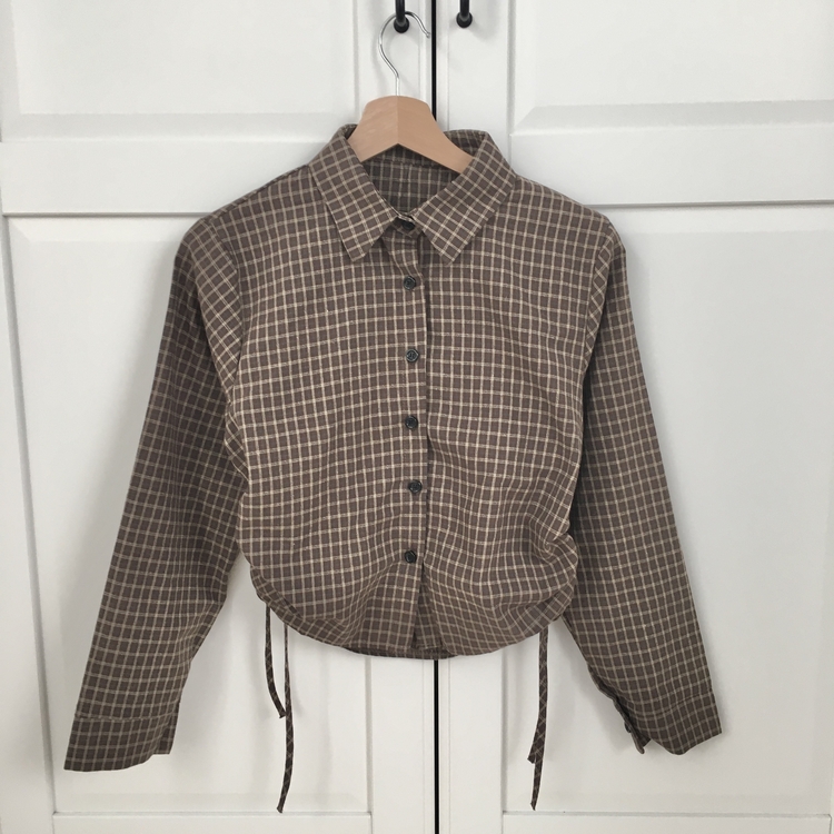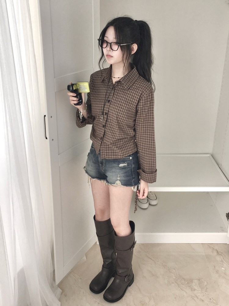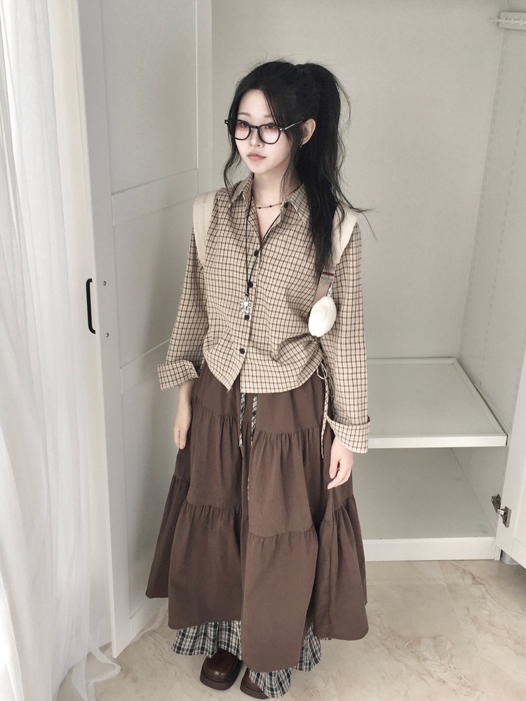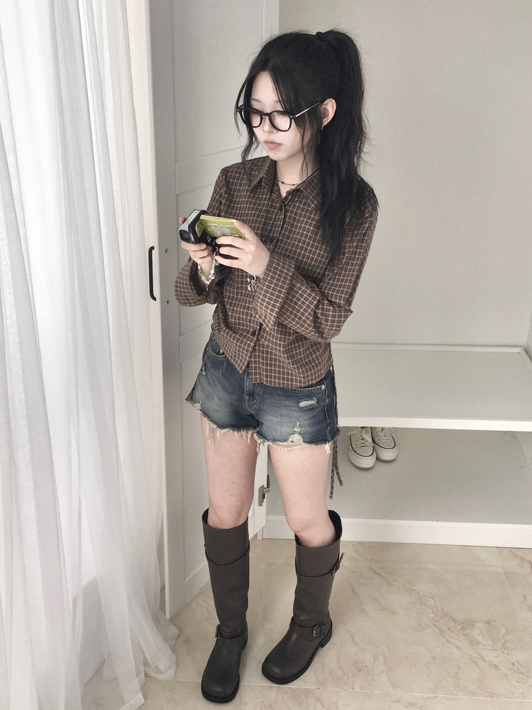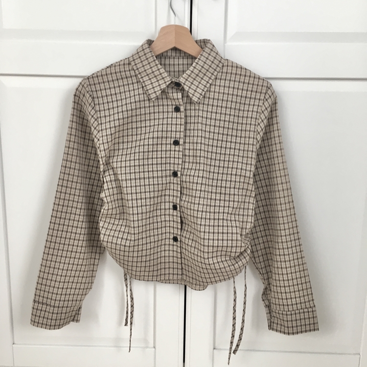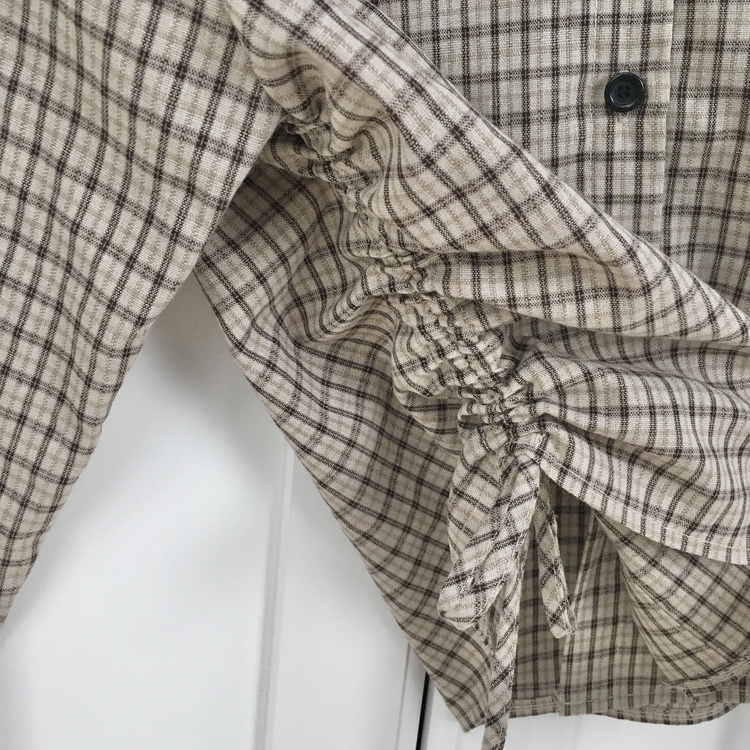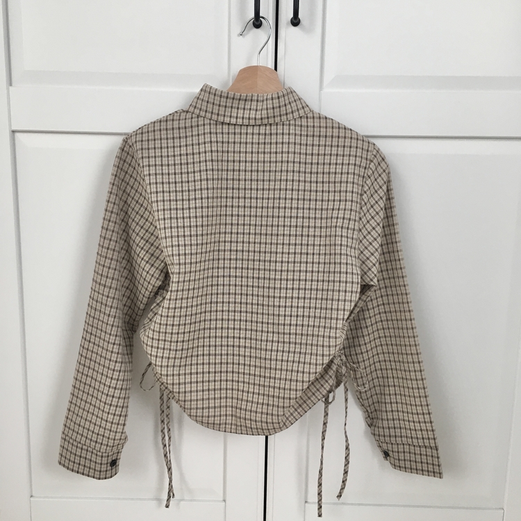 SBS29753 너드 빈티지 5kg 옆셔링 허리 사이드 리본 긴팔 체크셔츠 남방