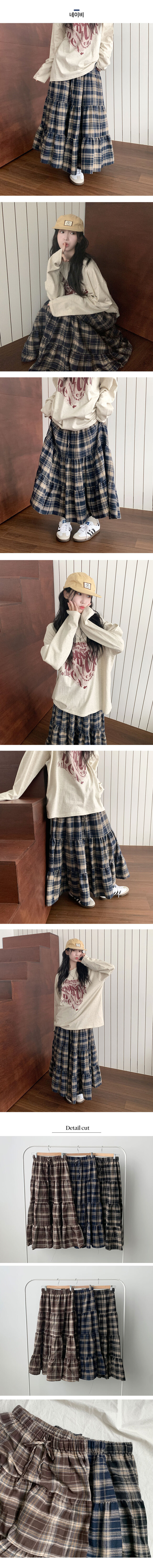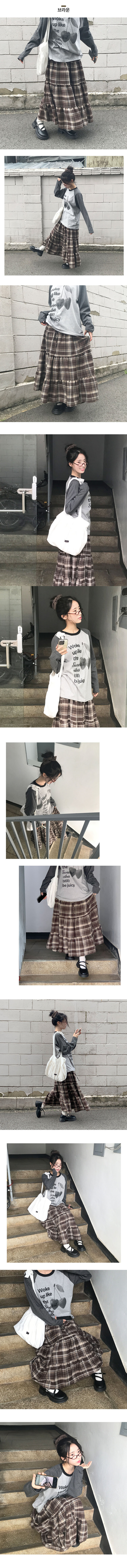 SSK24285 루카 올밴딩 체크패턴 프릴 캉캉 롱 스커트