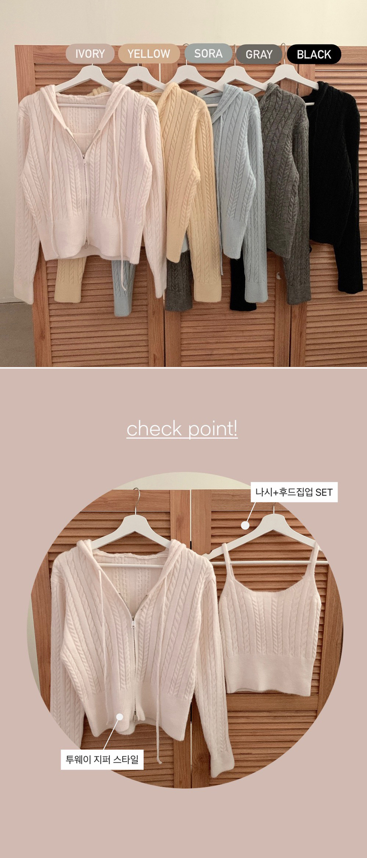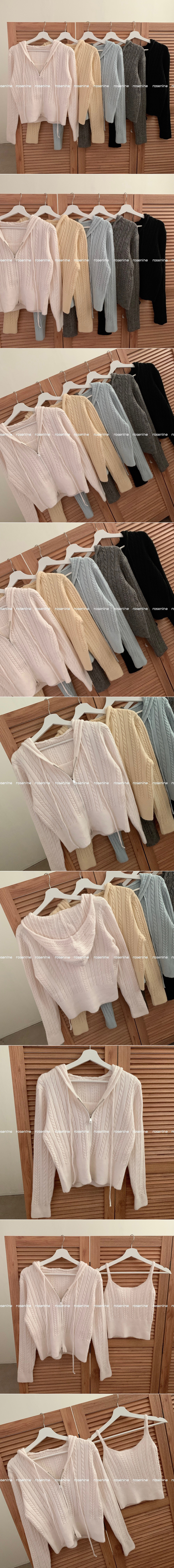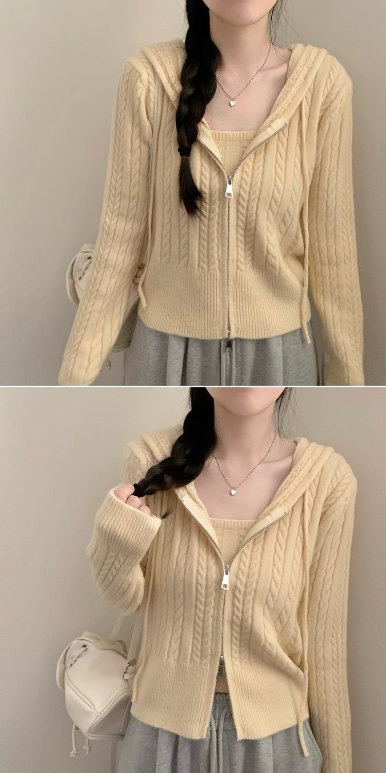 SJP17634 밀크 니트 후드 집업 투웨이 지퍼 긴팔 후드 집업 가디건 나시 세트