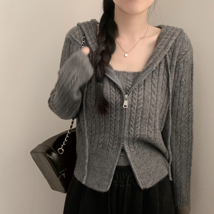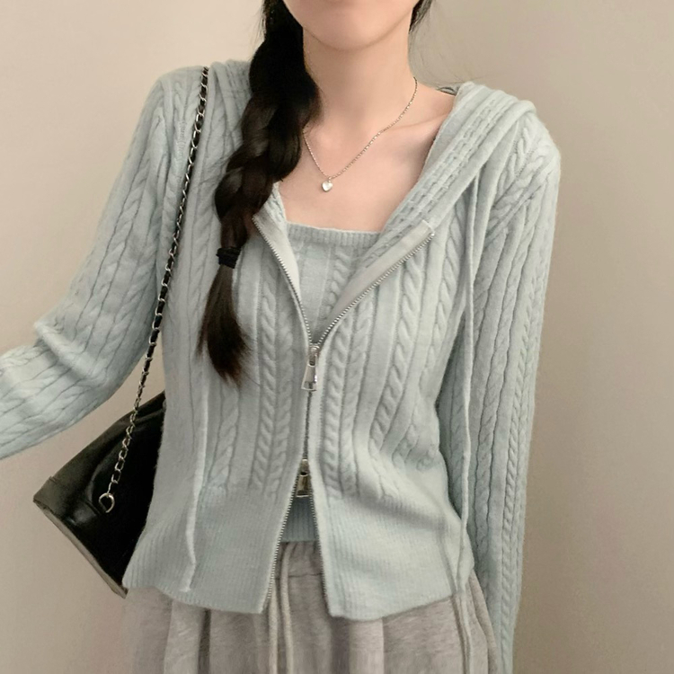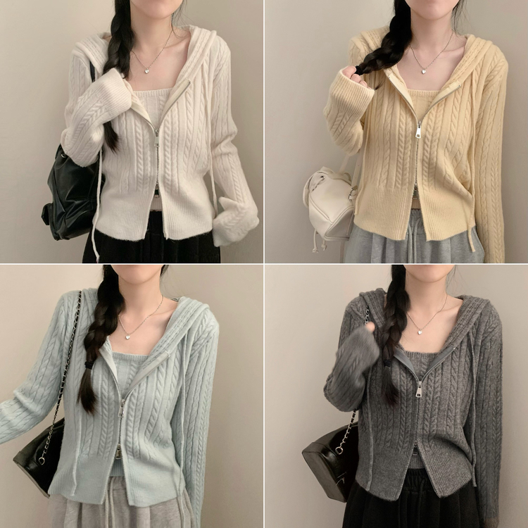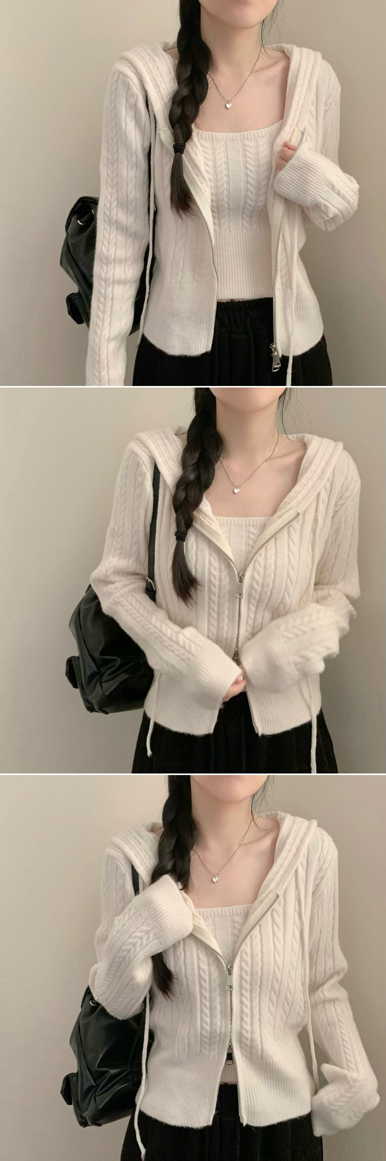 SJP17634 밀크 니트 후드 집업 투웨이 지퍼 긴팔 후드 집업 가디건 나시 세트