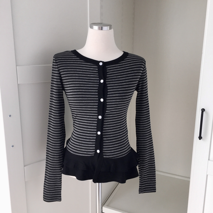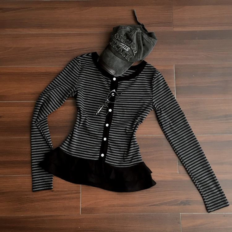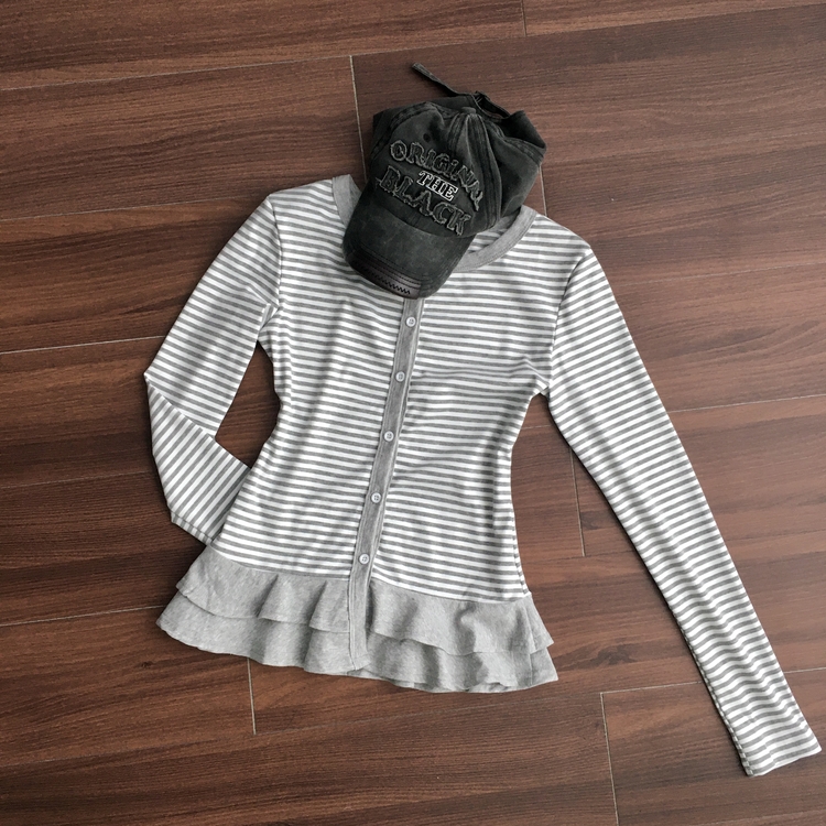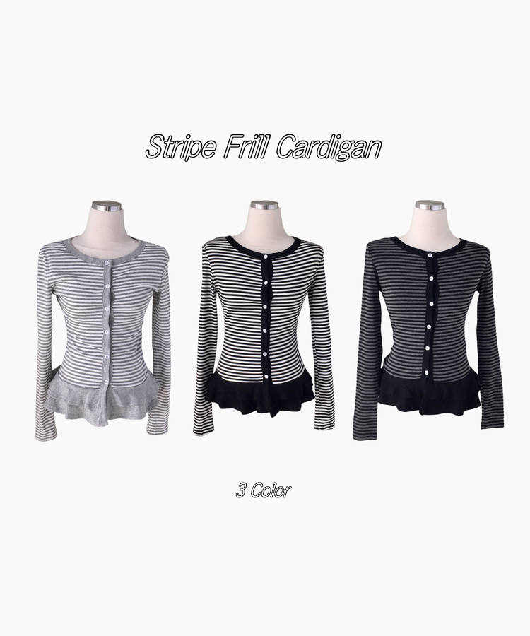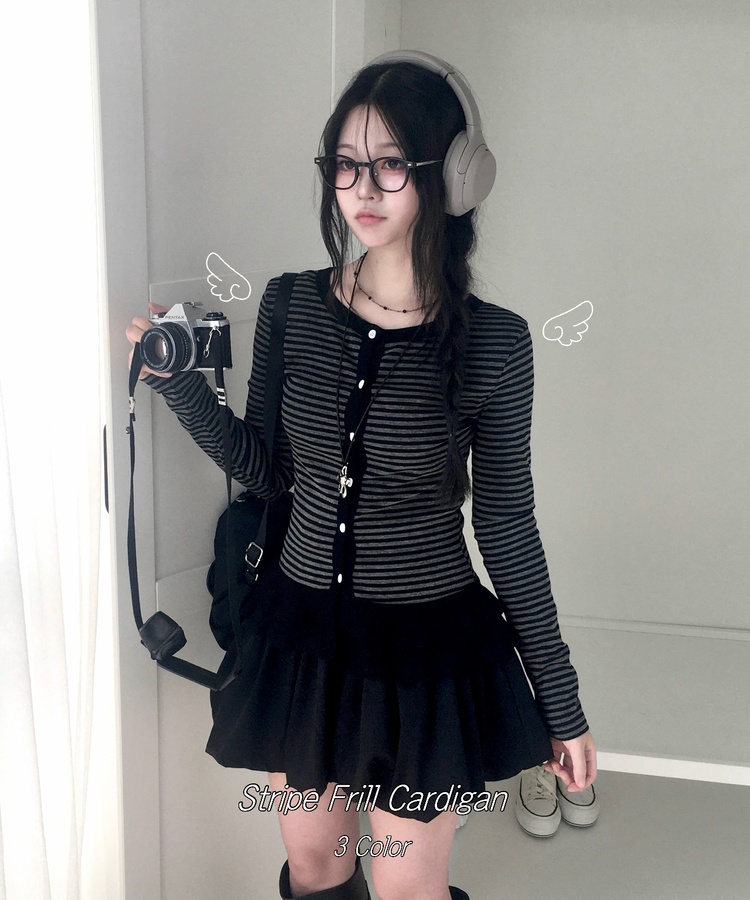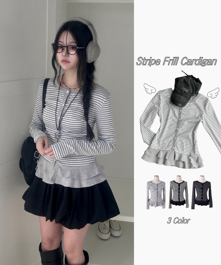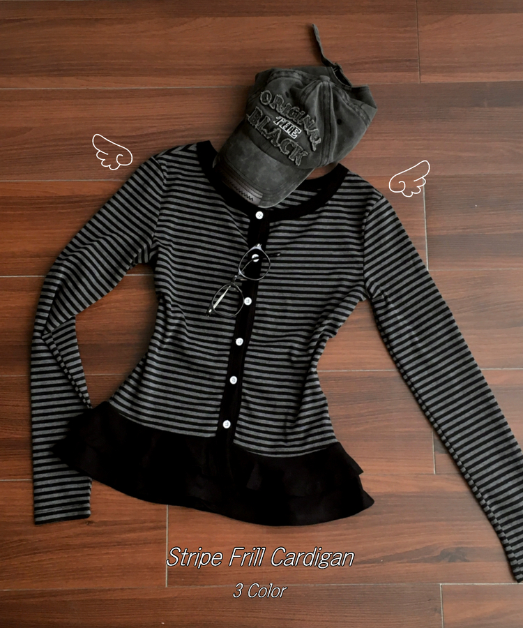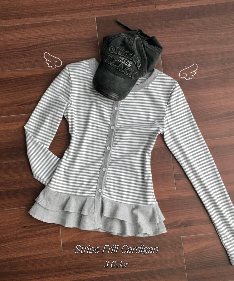 STS72255 단가라 스트라이프 프릴 레이어드 긴팔가디건