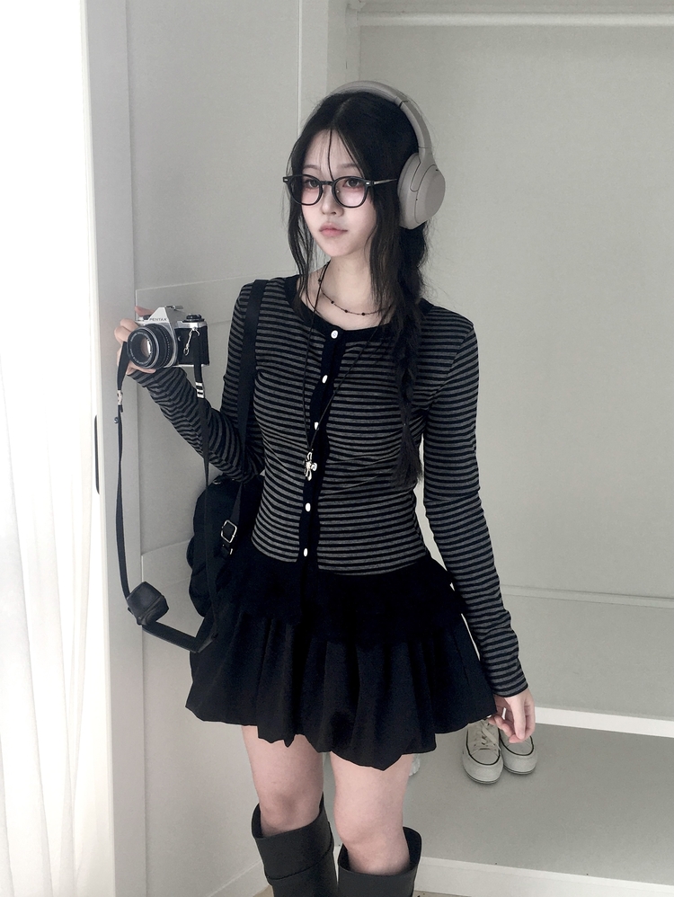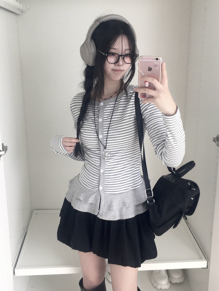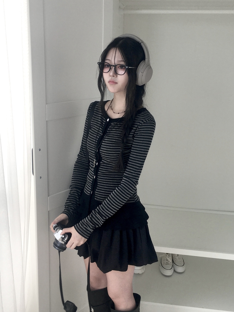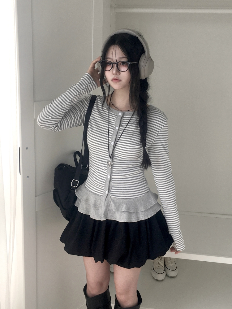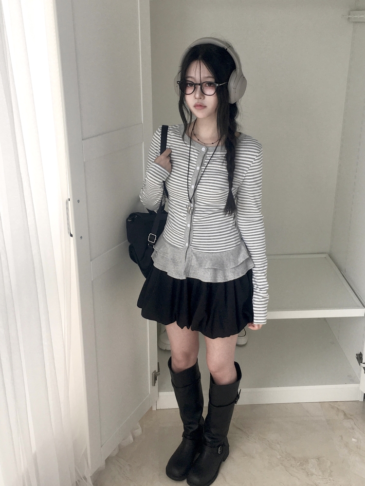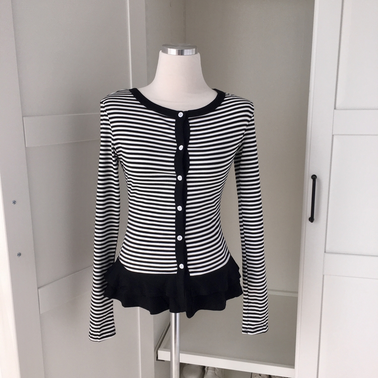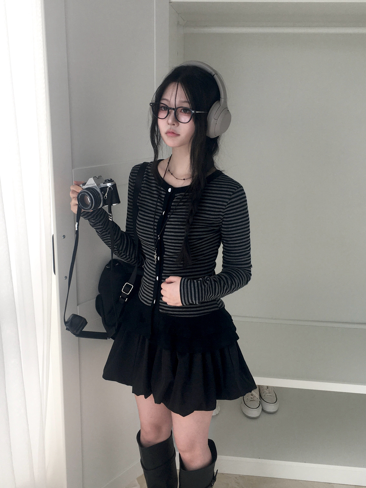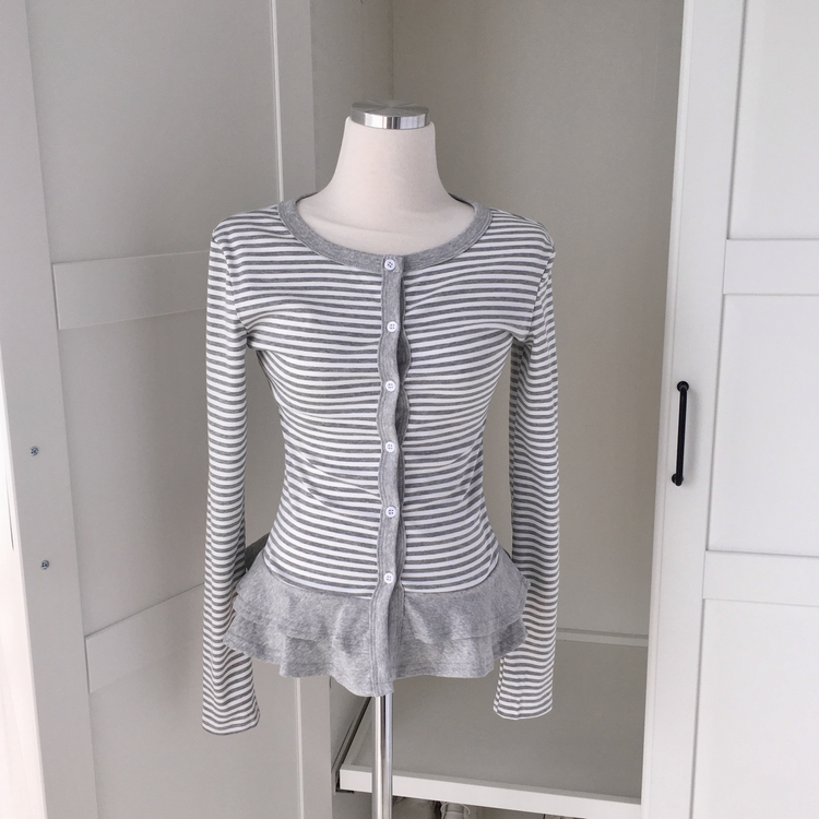 STS72255 단가라 스트라이프 프릴 레이어드 긴팔가디건