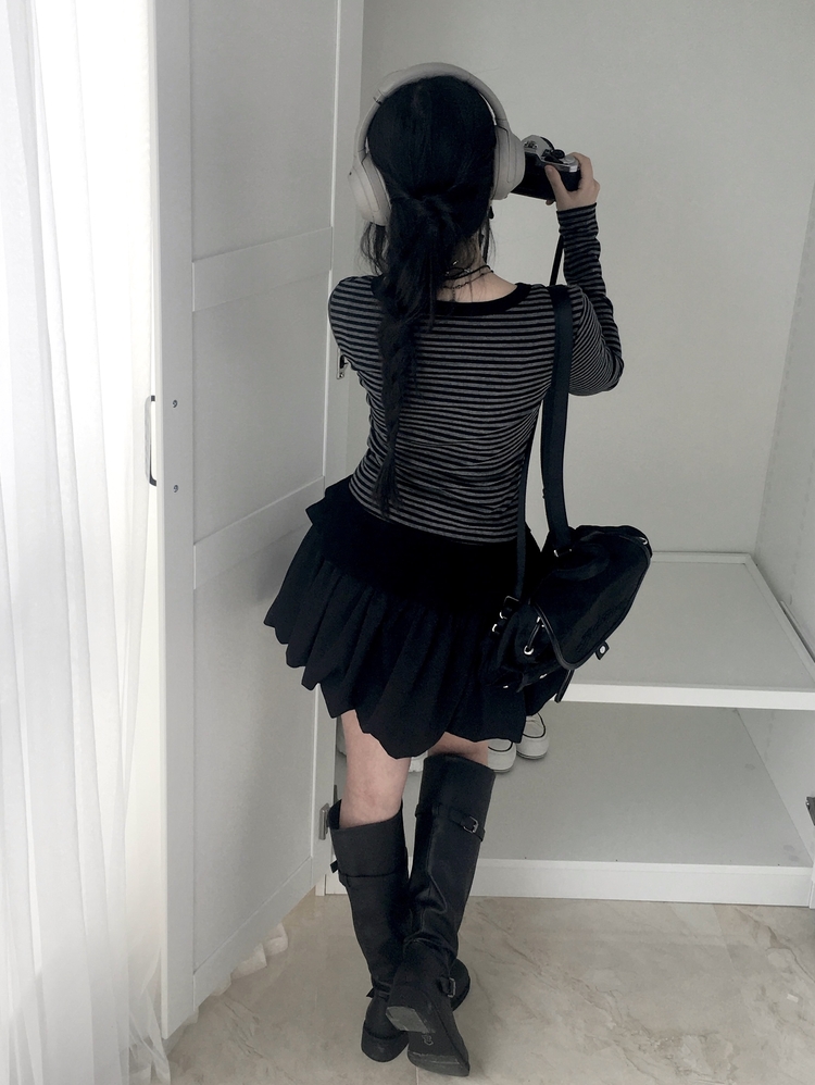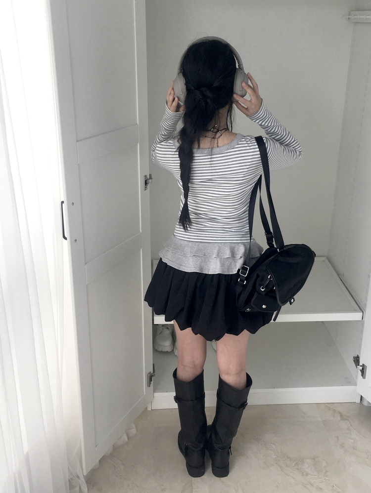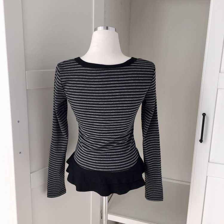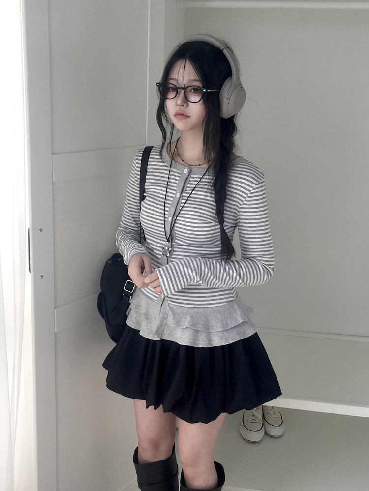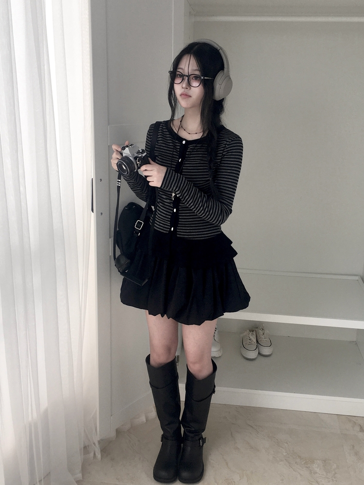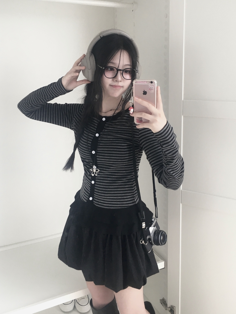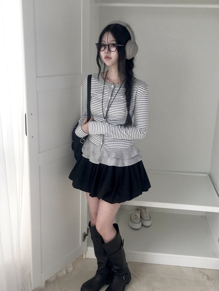 STS72255 단가라 스트라이프 프릴 레이어드 긴팔가디건