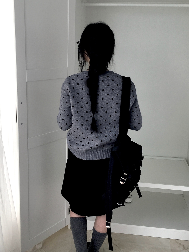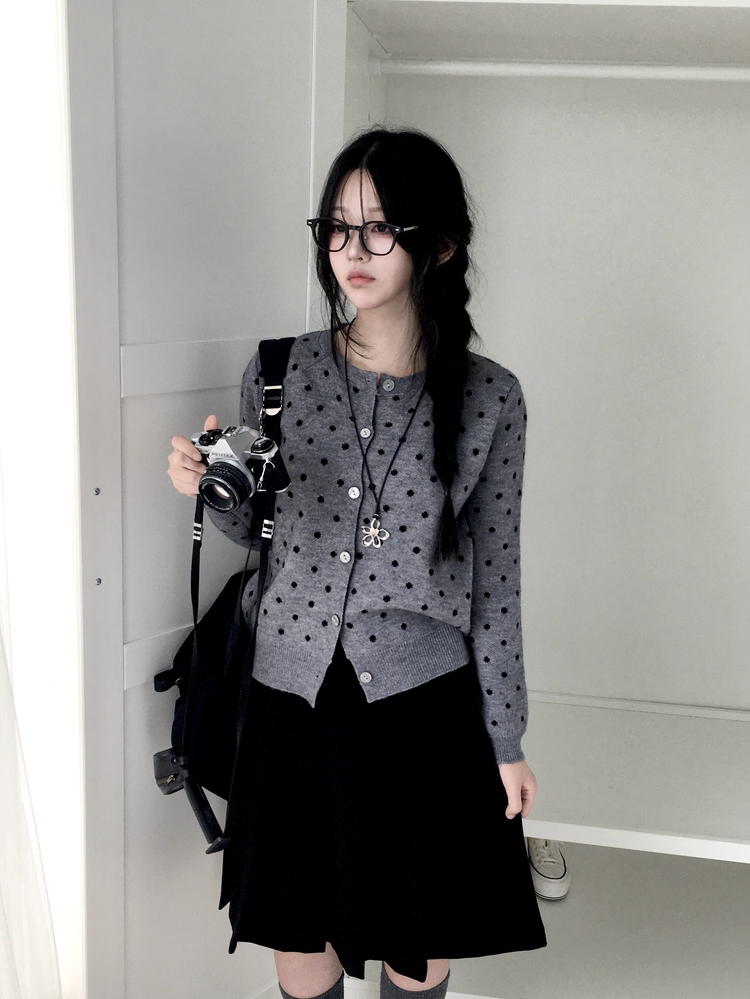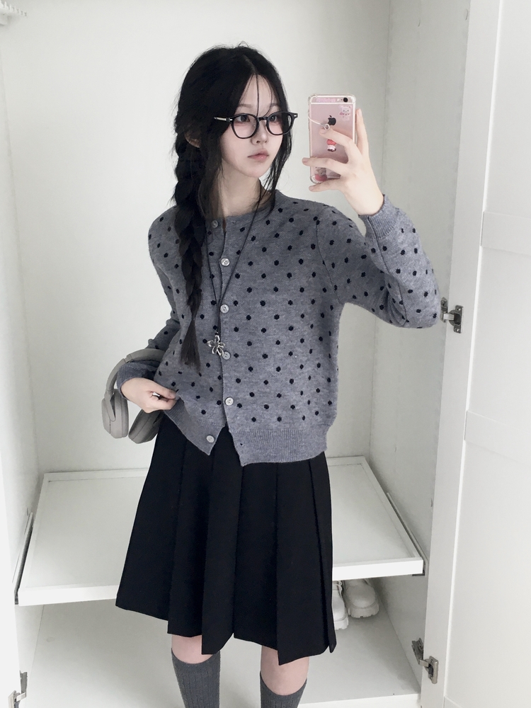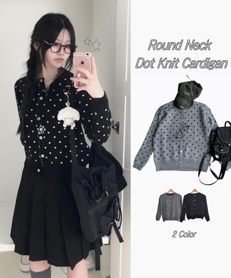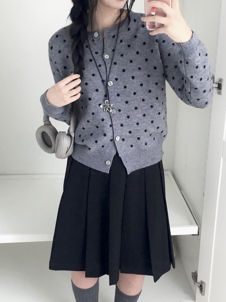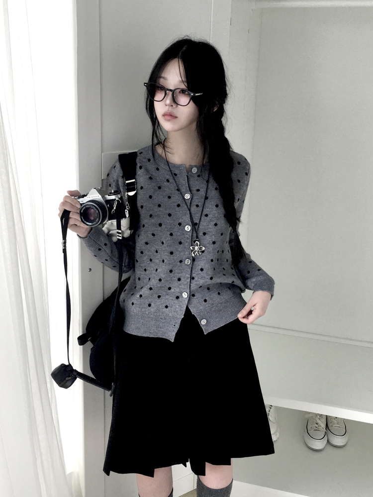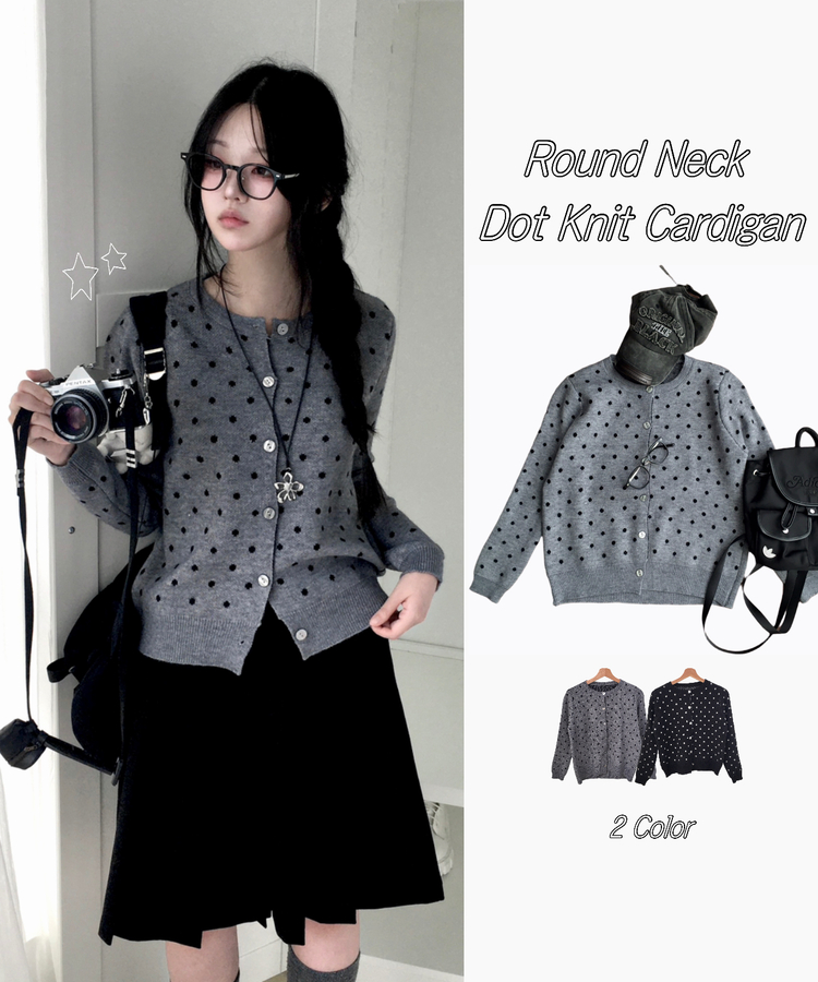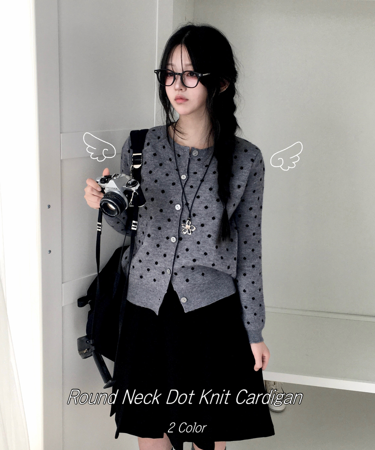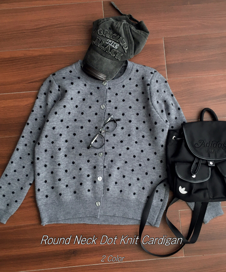 SGD28820 빈티지 도트 라운드넥 스탠다드핏 니트 가디건