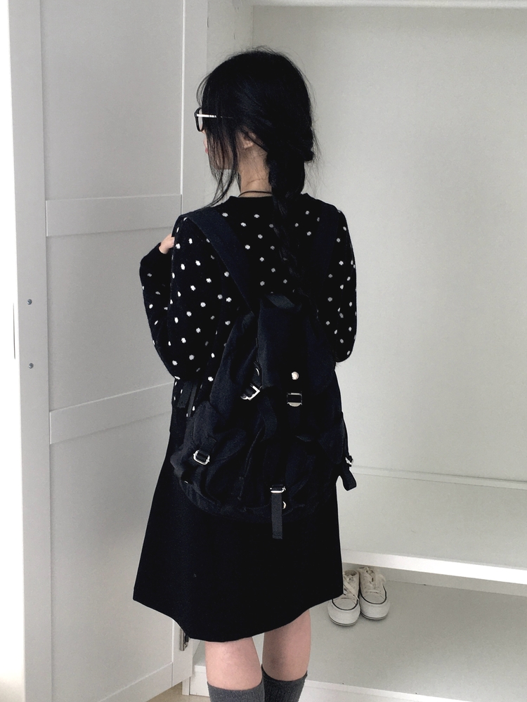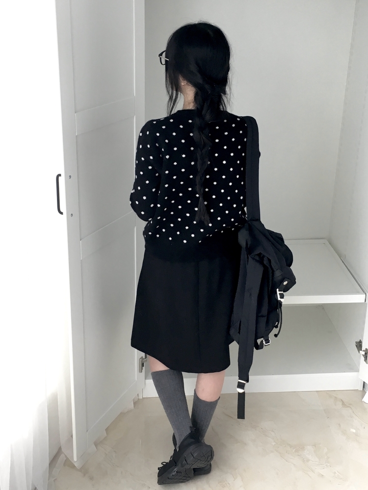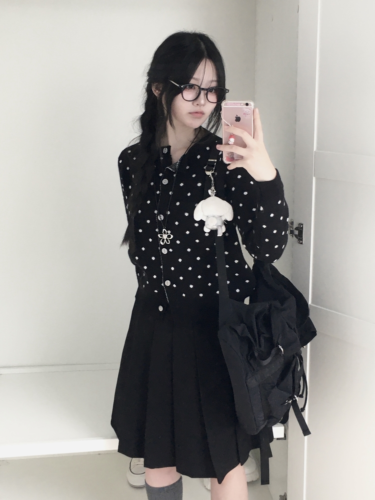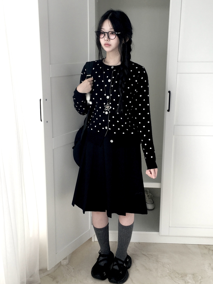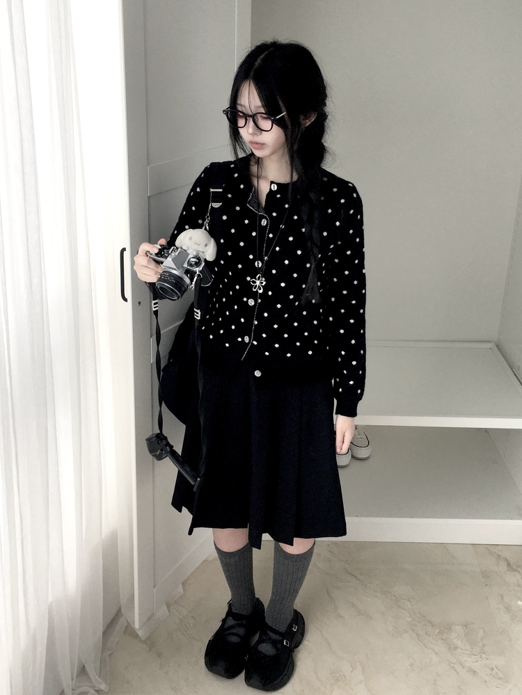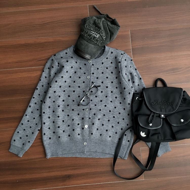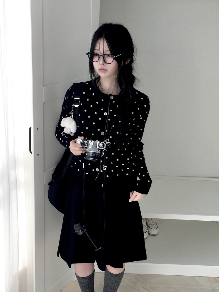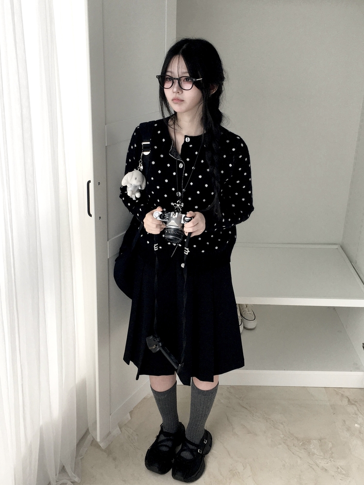 SGD28820 빈티지 도트 라운드넥 스탠다드핏 니트 가디건